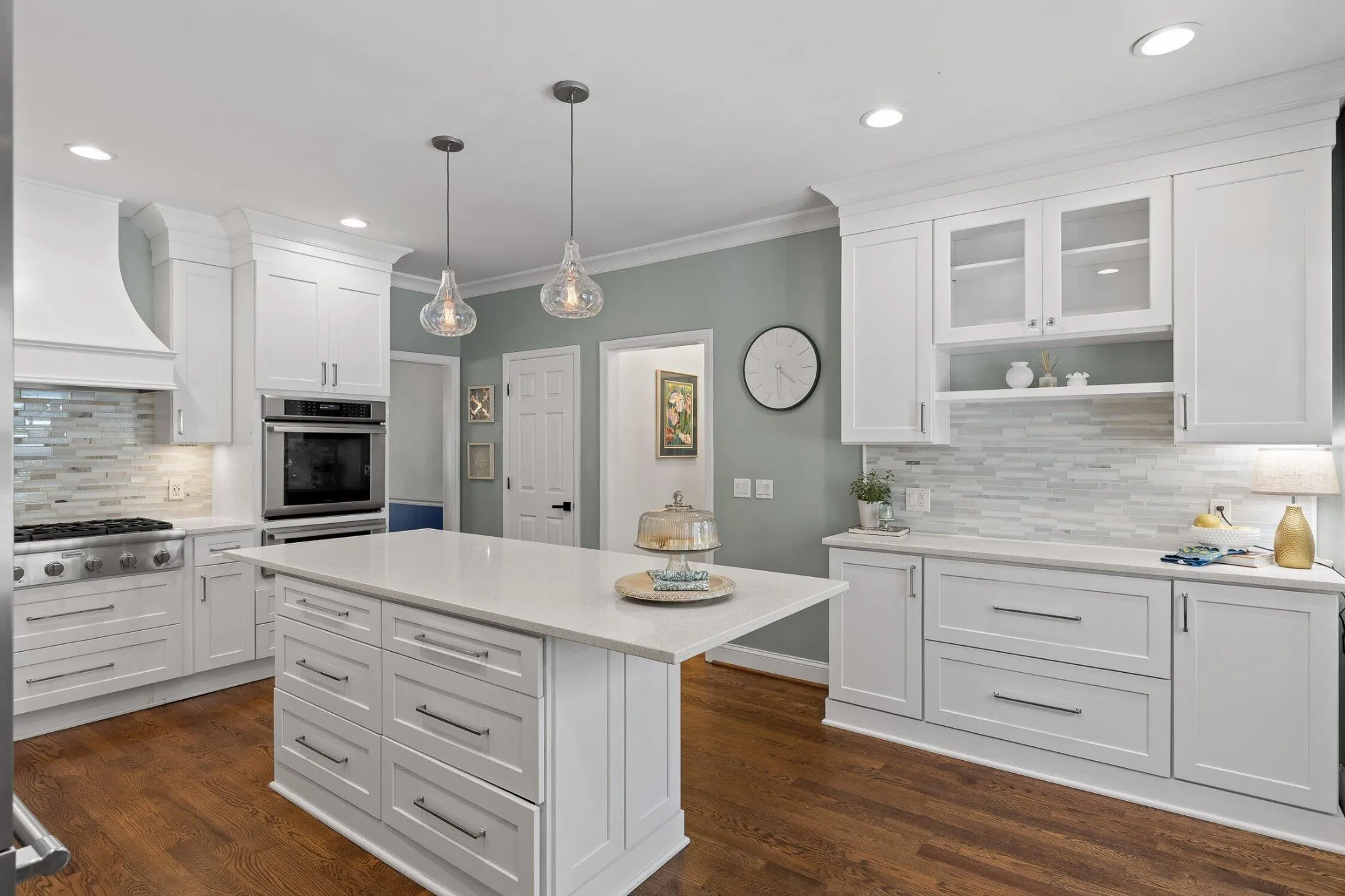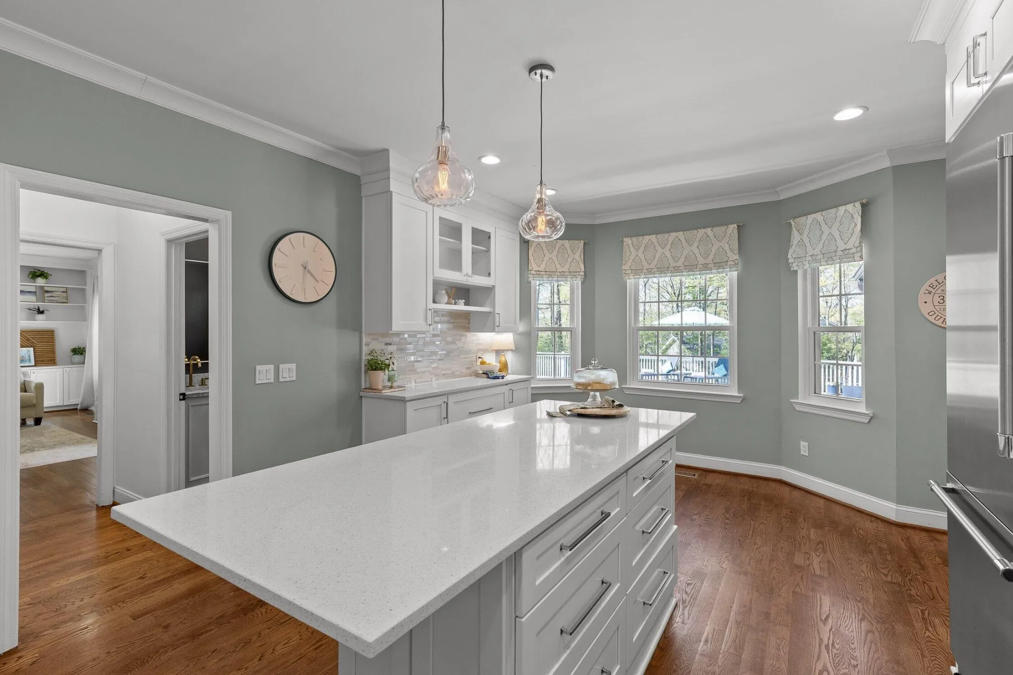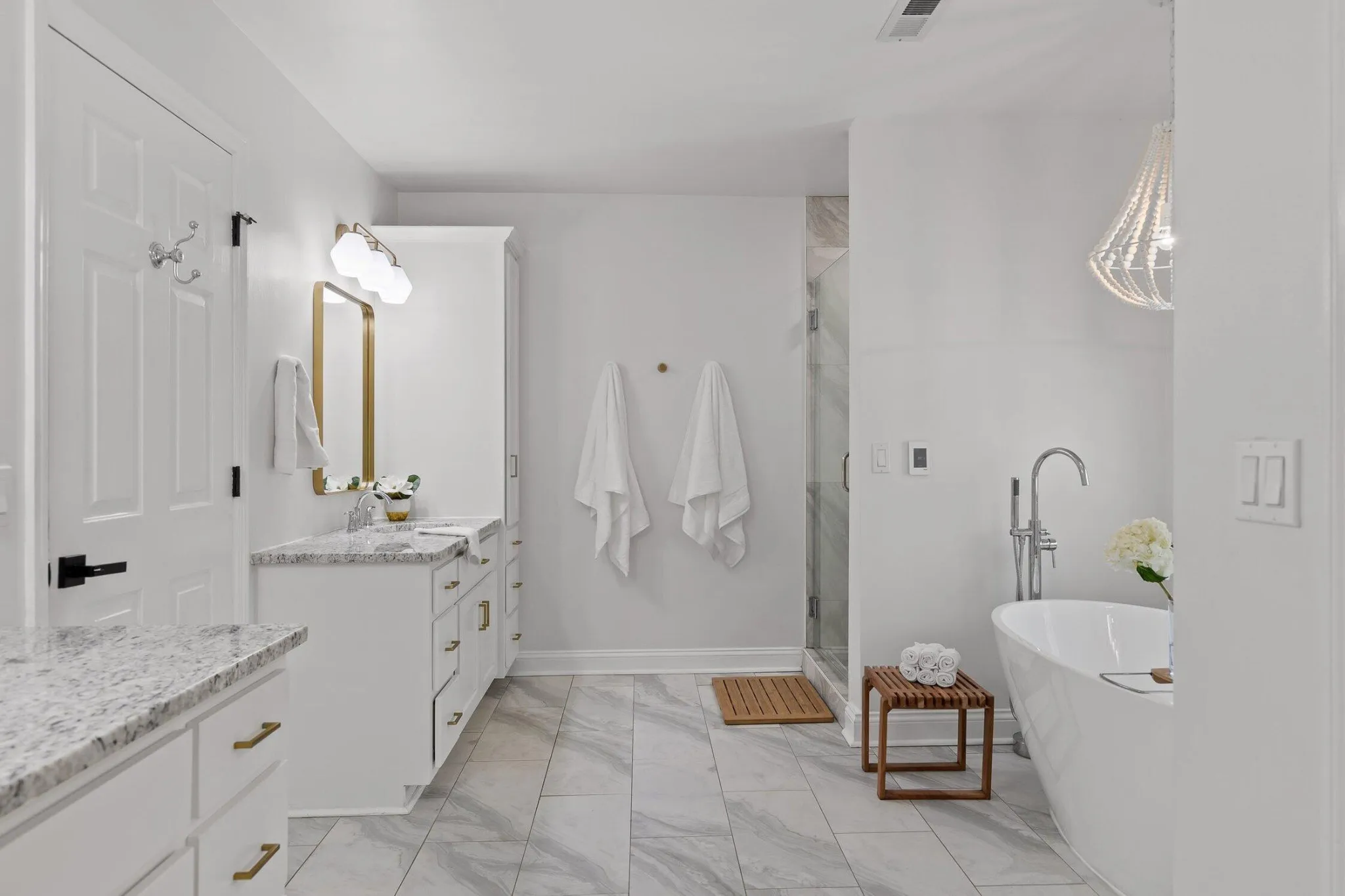 Thoughtfully updated throughout, this home showcases a beautifully remodeled kitchen with top-of-the-line Thermador appliances, quartz countertops, and a design that will delight any cooking enthusiast. The spacious primary suite features a luxurious bathroom with a standalone soaking tub, heated floors, granite countertops, and updated tile, along with a custom-designed walk-in closet.