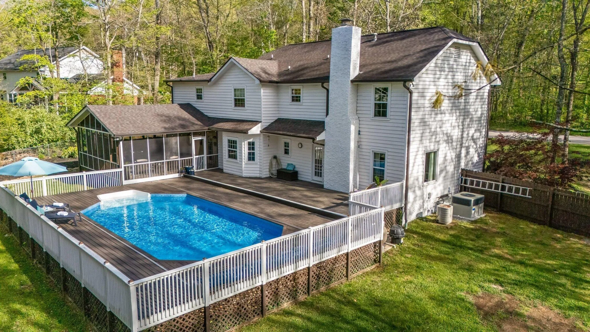 Additional highlights include all new flooring, new carpet upstairs, custom-designed closets throughout, new windows, and a remodeled laundry room with granite countertops and custom cabinetry. The expansive screened porch and new deck provide the perfect setting for relaxing or entertaining year-round.