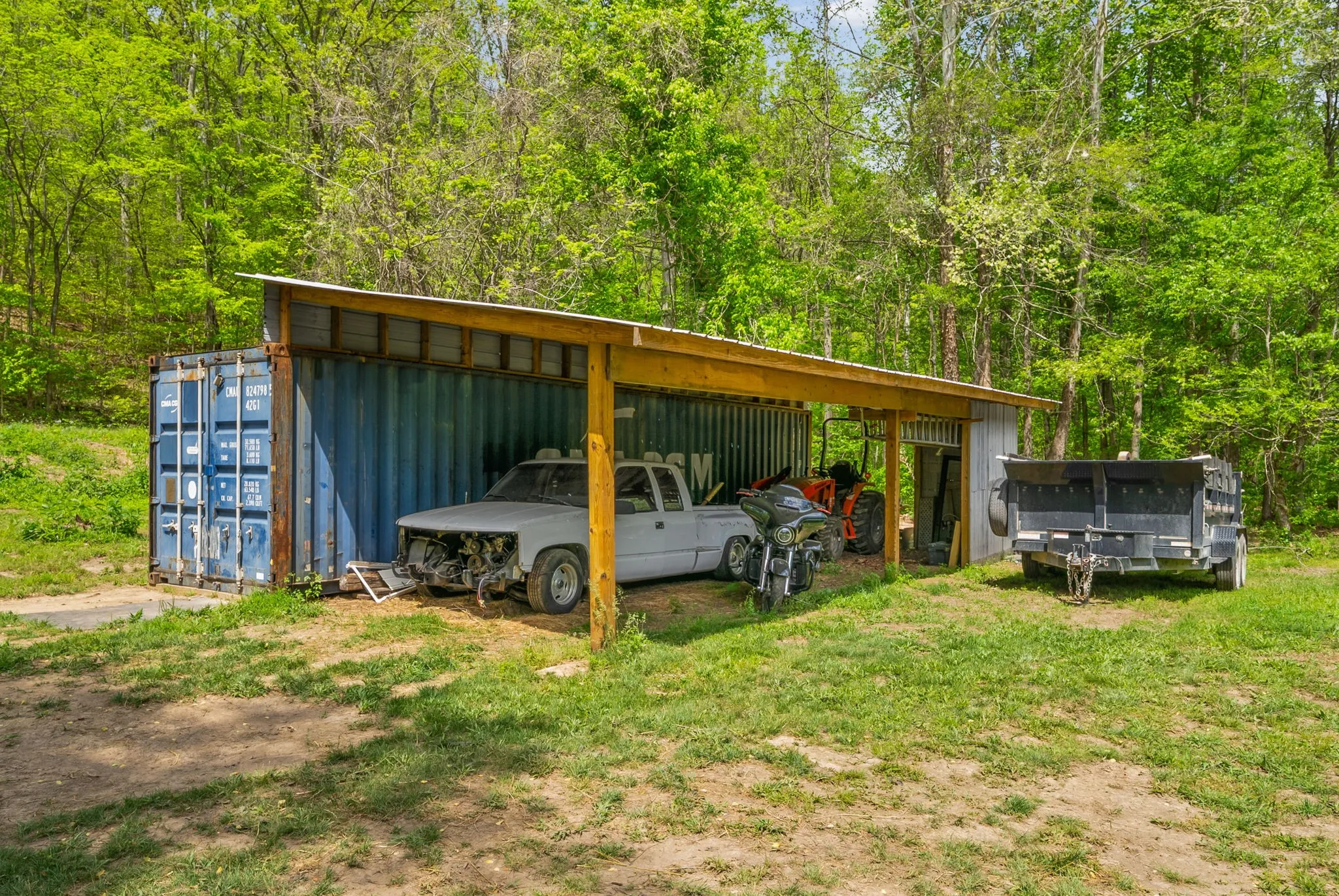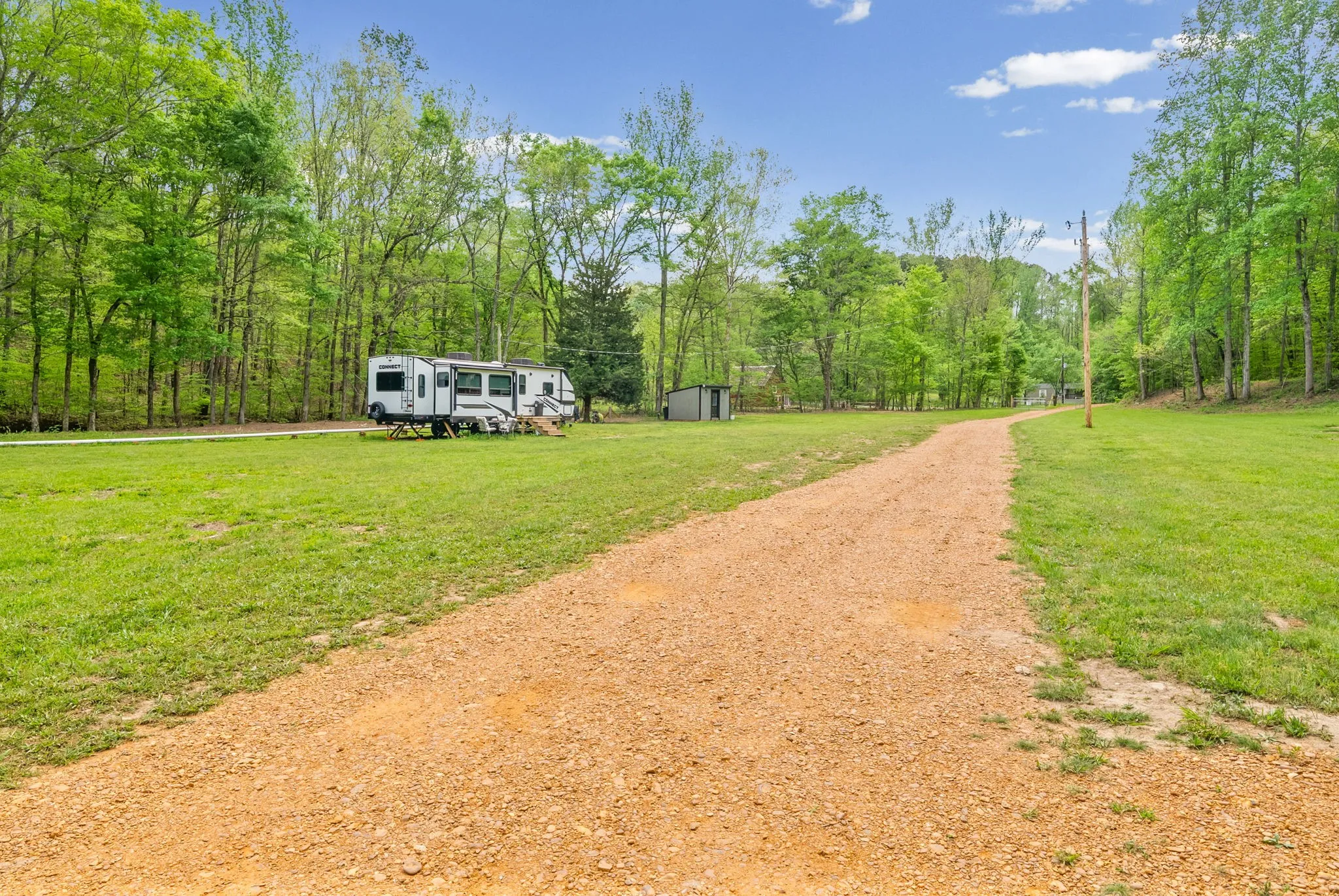 A seasonal creek (with a small walking bridge) winds through the property, adding character and a peaceful setting. The land is already well-equipped with essential improvements, including a driveway, electric service, and RV hookups—making it ideal for immediate use while you build. The property features a well with a 10×12 pump house that includes 100 amp service, washer/dryer hookups, outlets, and water filtration setup. A septic system is already installed for a 3-bedroom home, saving you time and expense. Additional improvements include a charming 100-year-old barn with substantial updates (newer wood on approximately ¾ of the structure), as well as a 40-ft storage container with an attached 16×40 lean-to—perfect for equipment, storage, or workshop space. With approximately 1,025 feet of road frontage, this property offers excellent accessibility and potential for multiple building sites or future division.