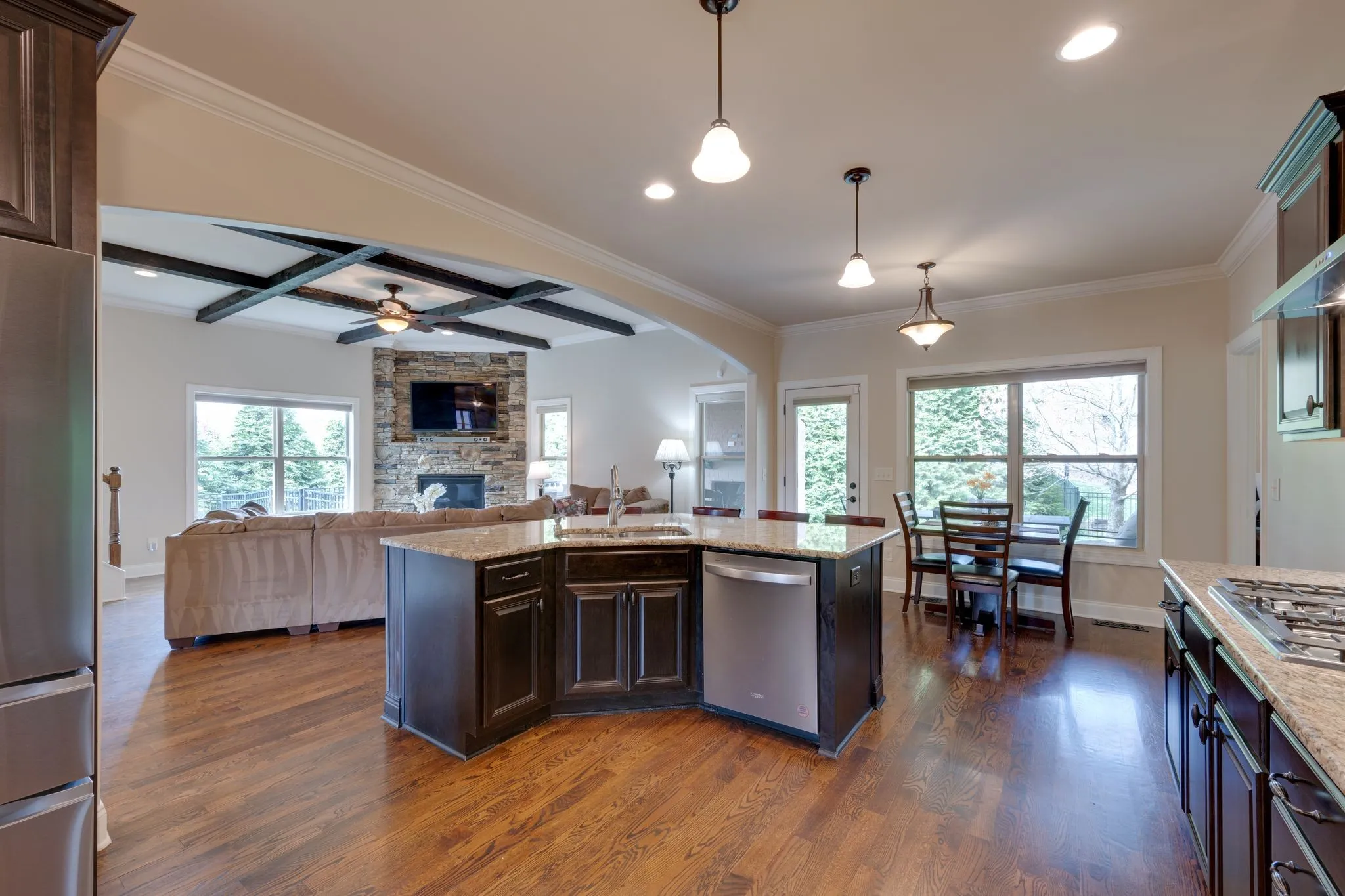 Spanning nearly 3,900 square feet, this 5-bedroom residence offers a level of space and flexibility seldom found in the neighborhood. Thoughtfully designed for both everyday living and entertaining, the home features an open-concept layout, multiple living environments, and refined architectural details throughout.