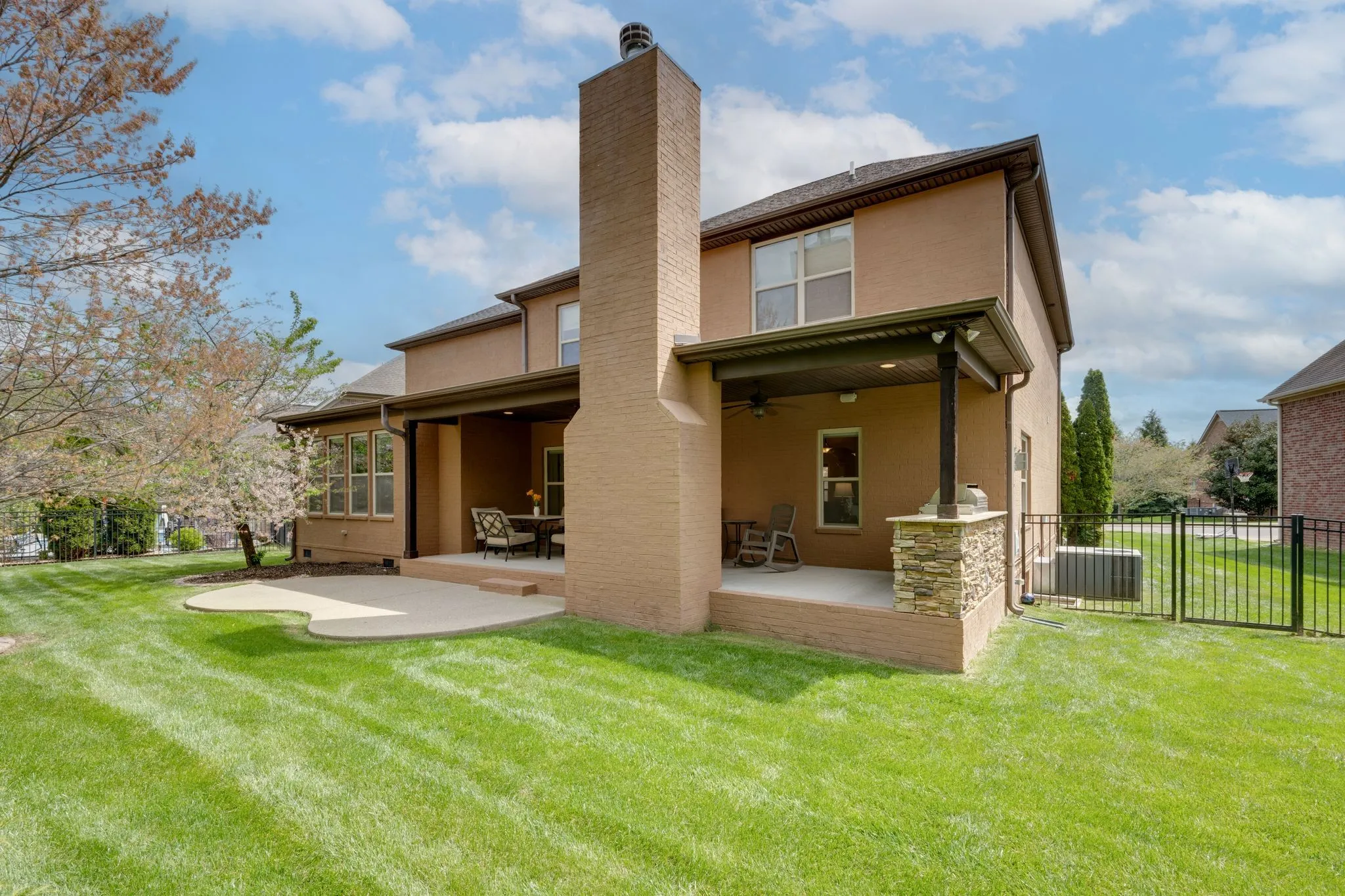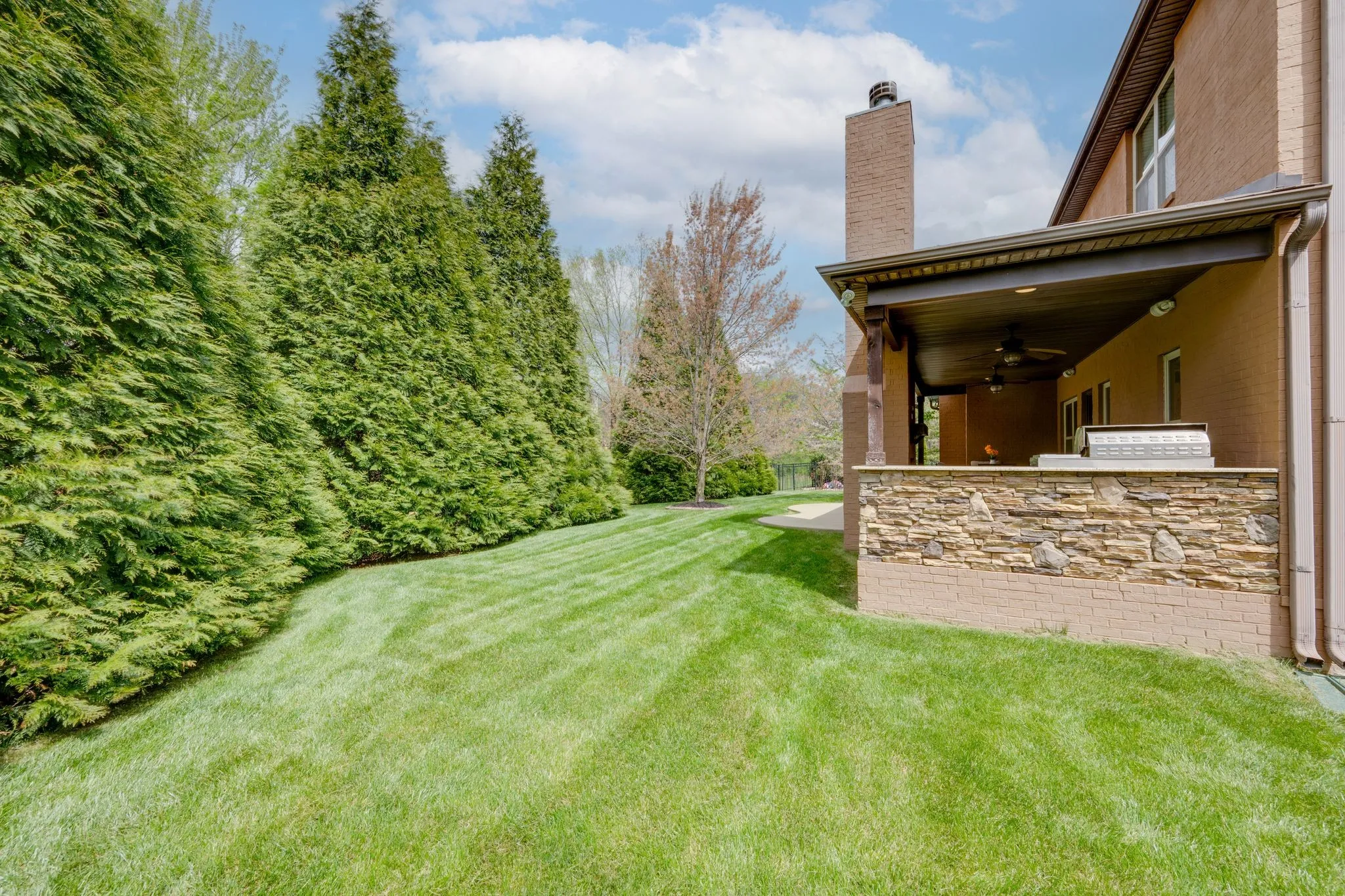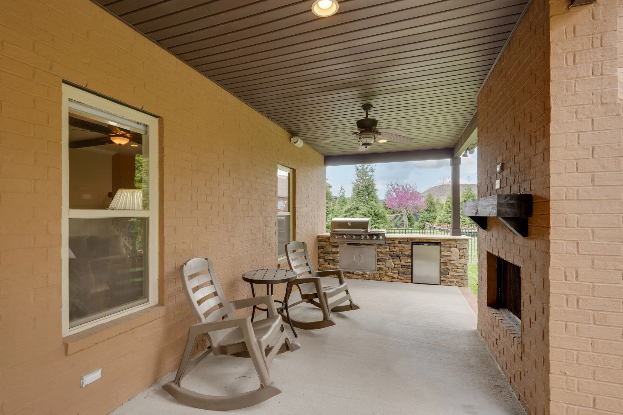 The outdoor living experience is equally compelling, featuring a covered patio with a built-in grill, refrigerator, and fireplace, all set against an expansive and beautifully positioned backyard—offering a rare combination of privacy, scale, and year-round enjoyment. From its impressive stonework to its expansive interior, the home delivers both presence and possibility.