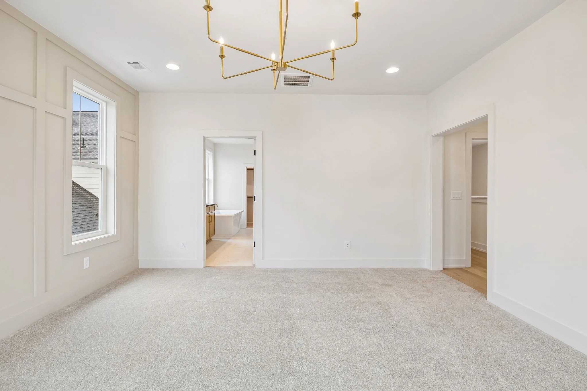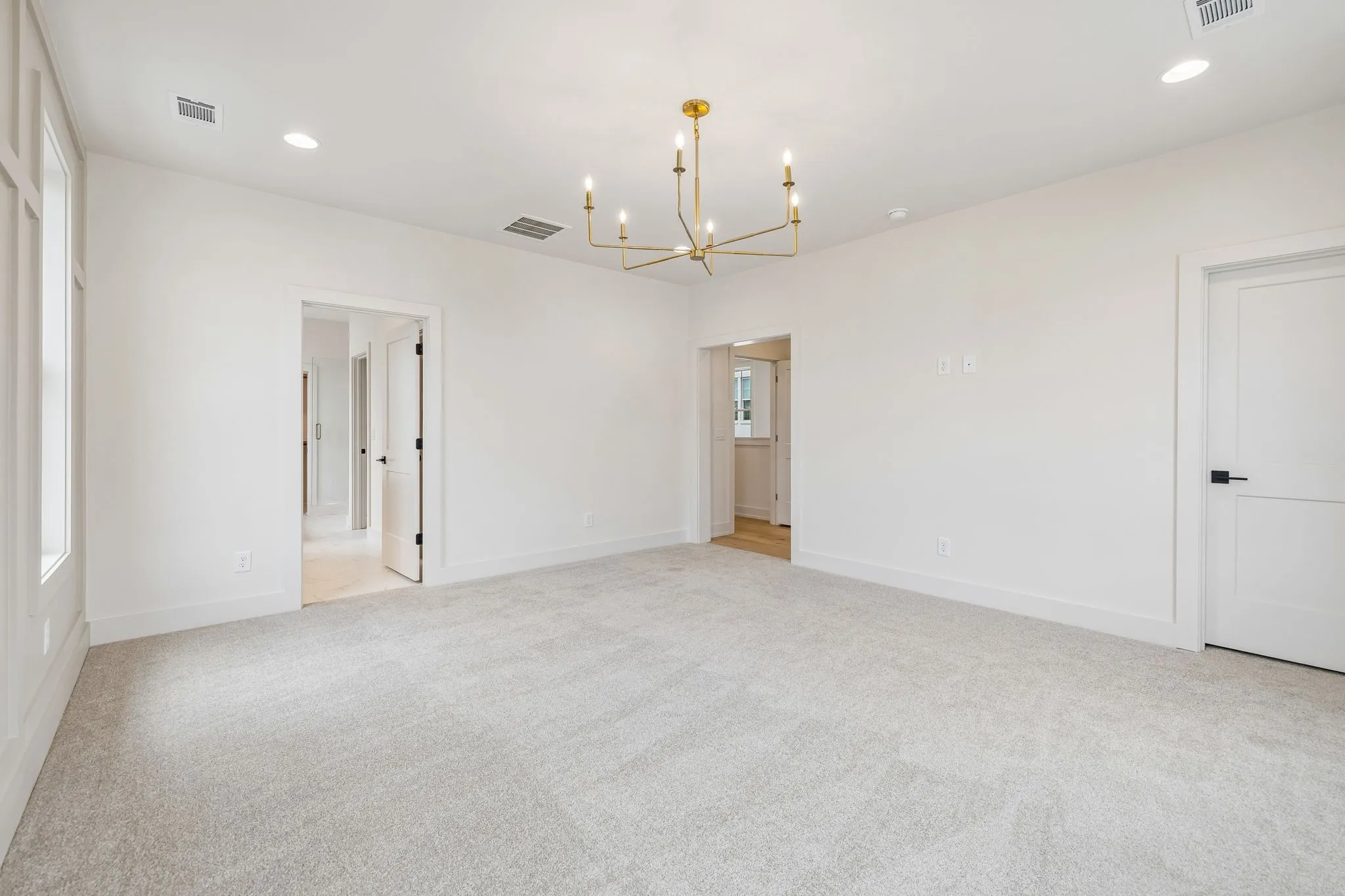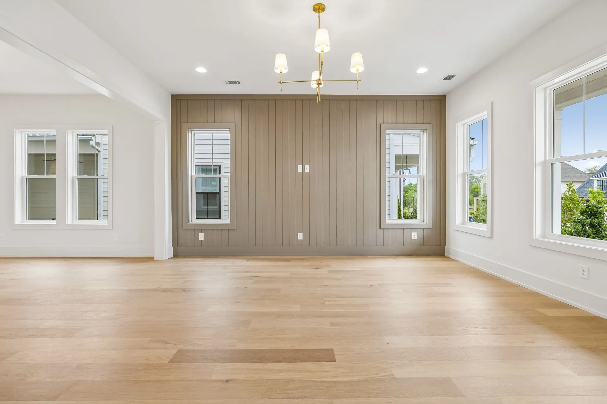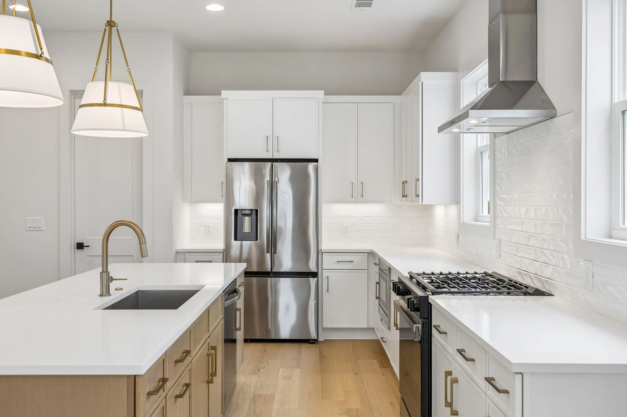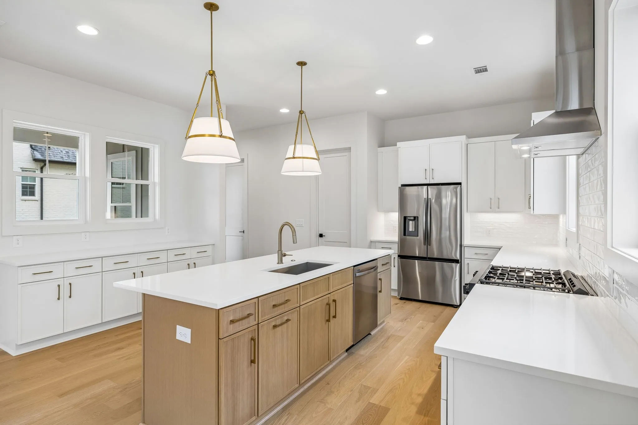 The main living areas are open yet intentional, creating a natural flow between the kitchen, dining, and living spaces while maintaining a sense of structure and design. The kitchen is both elevated and highly functional, featuring high-end appliances, elevated finishes, abundant cabinetry, and a walk-in pantry—supporting both everyday living and effortless entertaining.
