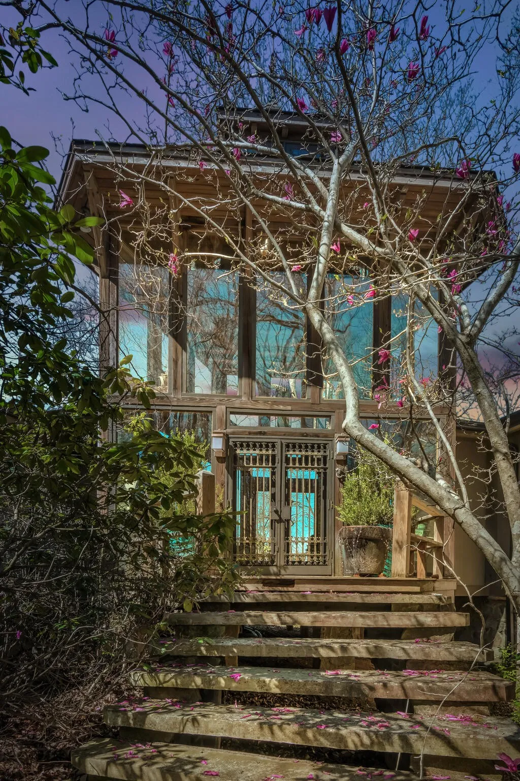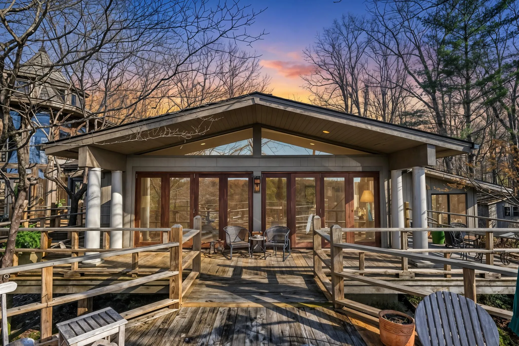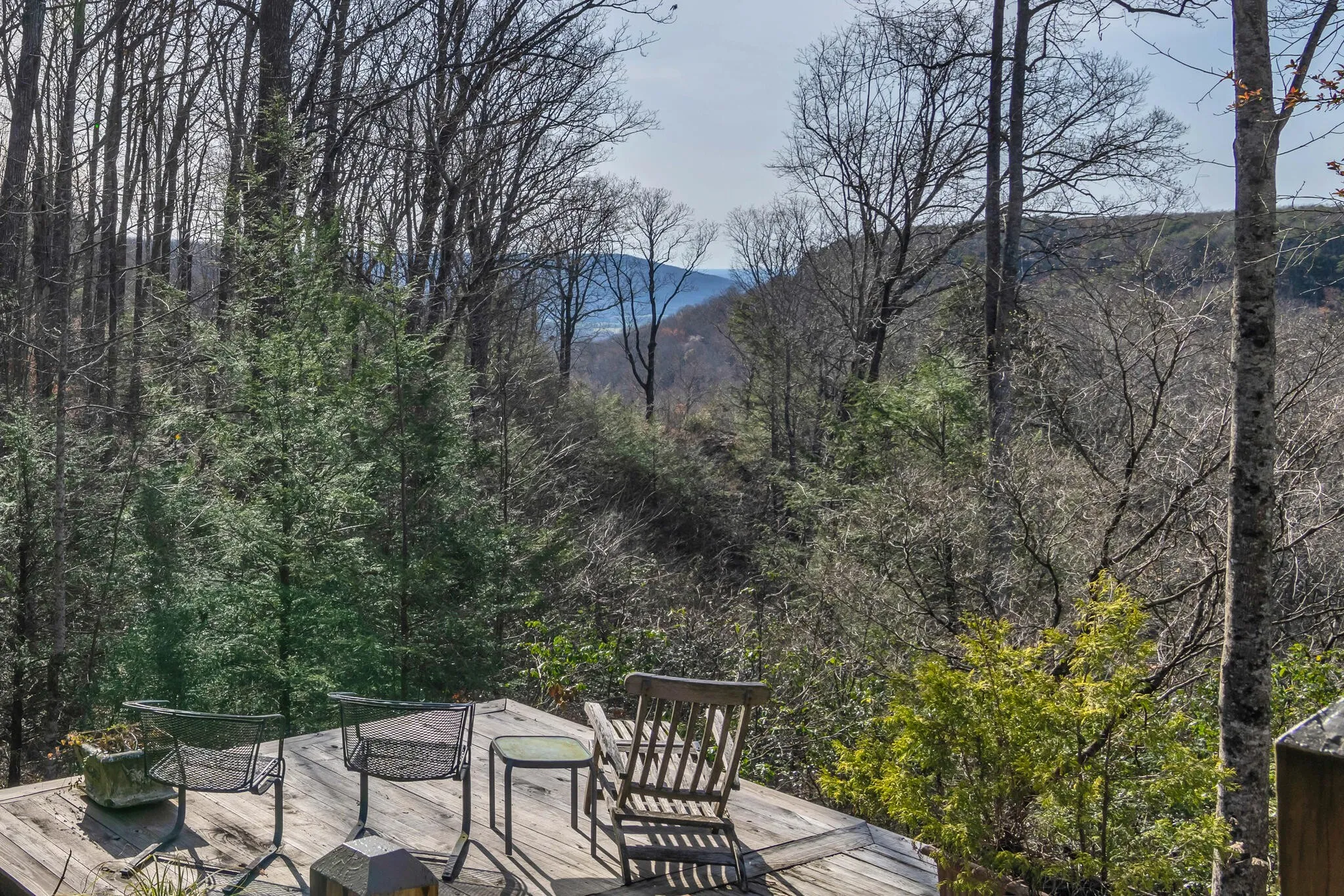 Discover this rare 7-acre secluded property on Monteagle Mountain! Purchased in 2001 by the current owner, a small home was lovingly expanded and renovated into an extraordinary family retreat. Lovely stone steps create a curved path to the unique glass tower entry where one immediately sees the breathtaking views that expand the width of the home. The Family room has Kolbe glass doors opening to your choice of decks and a central stone fireplace with a two sided opening which is shared with the Kitchen and Dining areas and an additional Sitting room. The primary bedroom suite has NanaWall glass folding doors which open to a screened porch. Three additional bedrooms and two sleeping lofts work well for large families and guests. One of the bedrooms includes a separate entrance and is plumbed for a kitchenette. Many lovely architectural antiques, such as old doors and gates are featured throughout. In addition to the decks, nature lovers will enjoy the outdoor firepit which is located at the entrance to a trail that leads down to the stream. Beautiful shrubs, plants and mountain laurel surround this home. Hikers will enjoy the South Cumberland State Park, Fiery Gizzard Trail, Mountain Goat Trail and more. Nearby is the University of the South campus at Sewanee, dining, bookstores and shops, as well as many more scenic views!