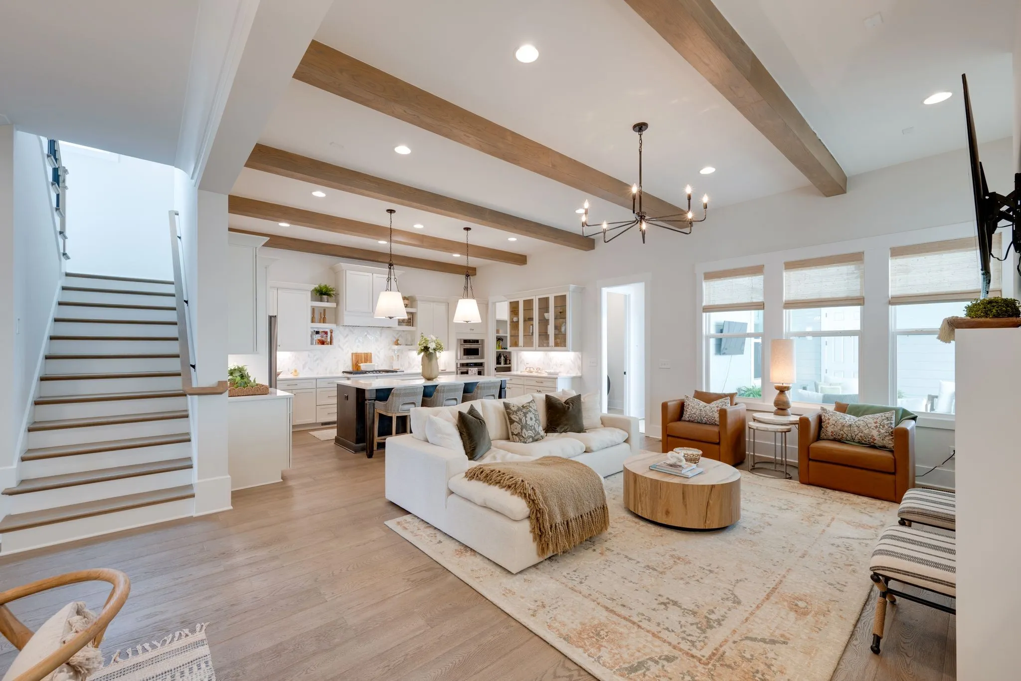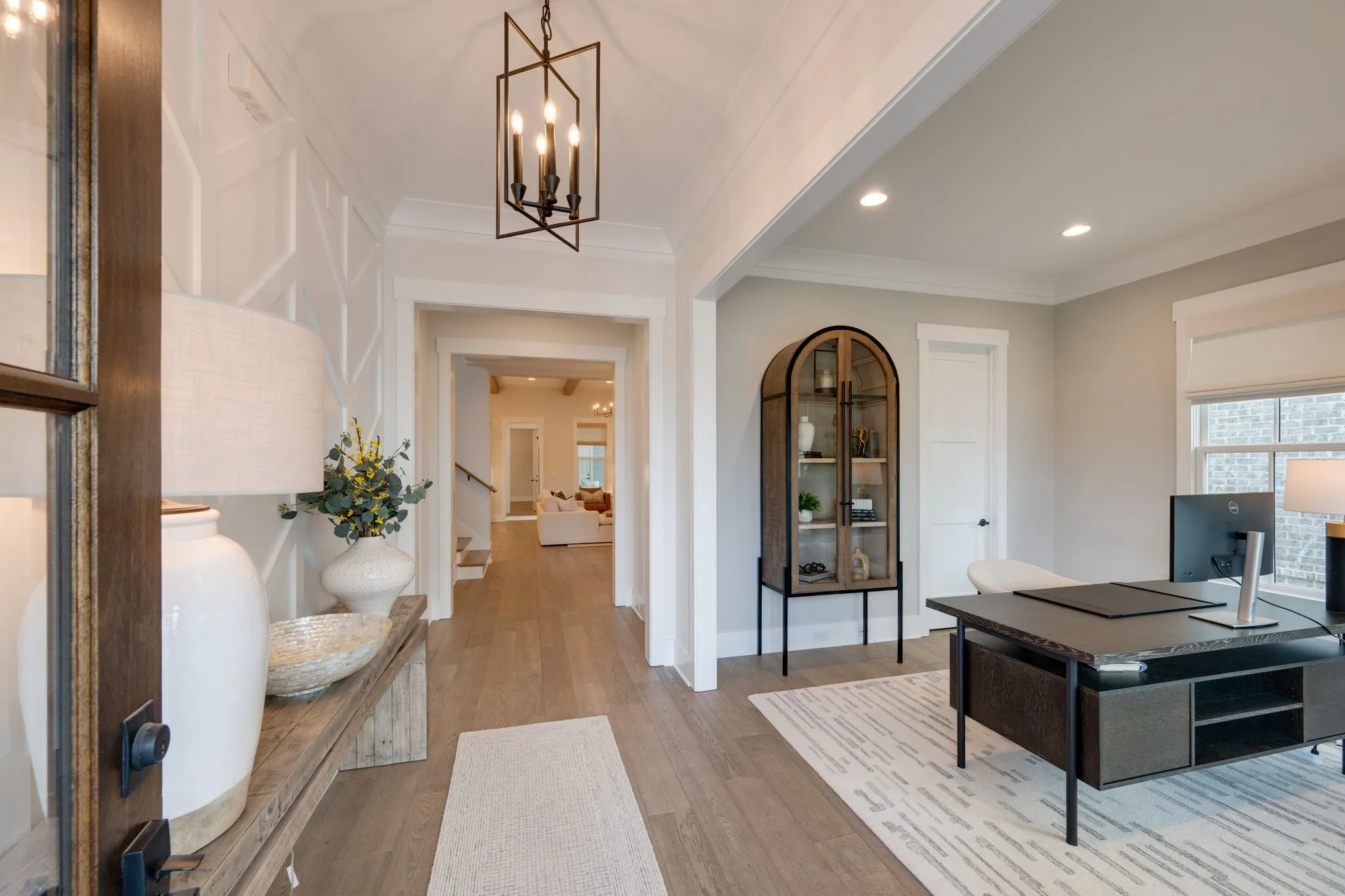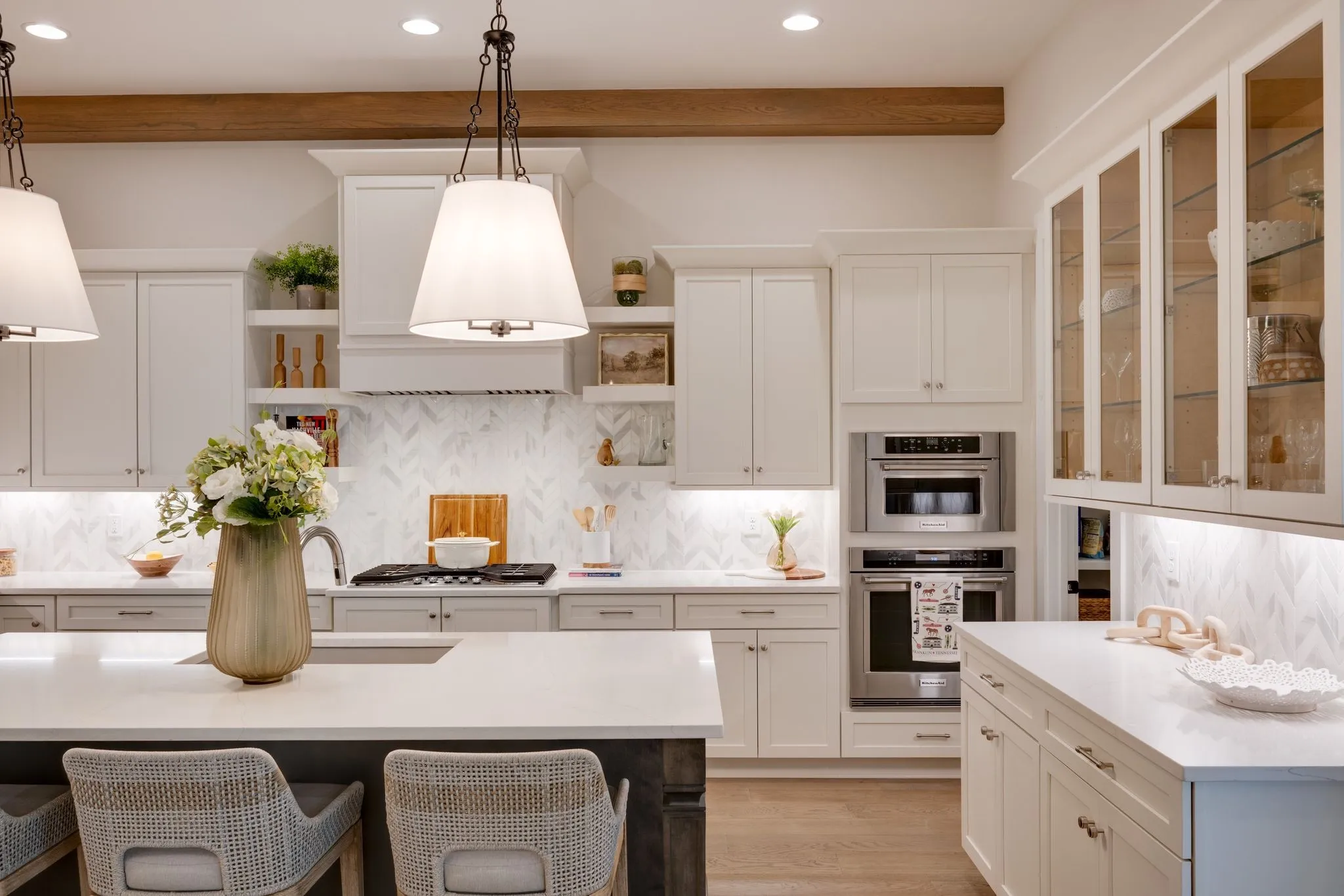 Move-in ready Ford Classic — Camille II plan — in Franklin’s new Southbrooke community. This beautifully finished 5-bedroom, 4.5 bath home features 2 main-floor bedrooms, a dedicated office/study with abundant storage and bright natural light, and a spacious primary retreat on the main level. Interior highlights include 11′ ceilings with stained beam detail, contemporary finishes, a large open kitchen with Kitchenaid stainless appliances, quartz countertops, and a generous island that flows into the living area—perfect for entertaining. Upstairs offers an expansive bonus/media room with an extra-large closet and floored storage. Community amenities: pool, tennis, 2 pickleball courts, basketball court, and walking trails. Minutes to Berry Farms shopping and dining. Schedule a showing today — no waiting, move right in.