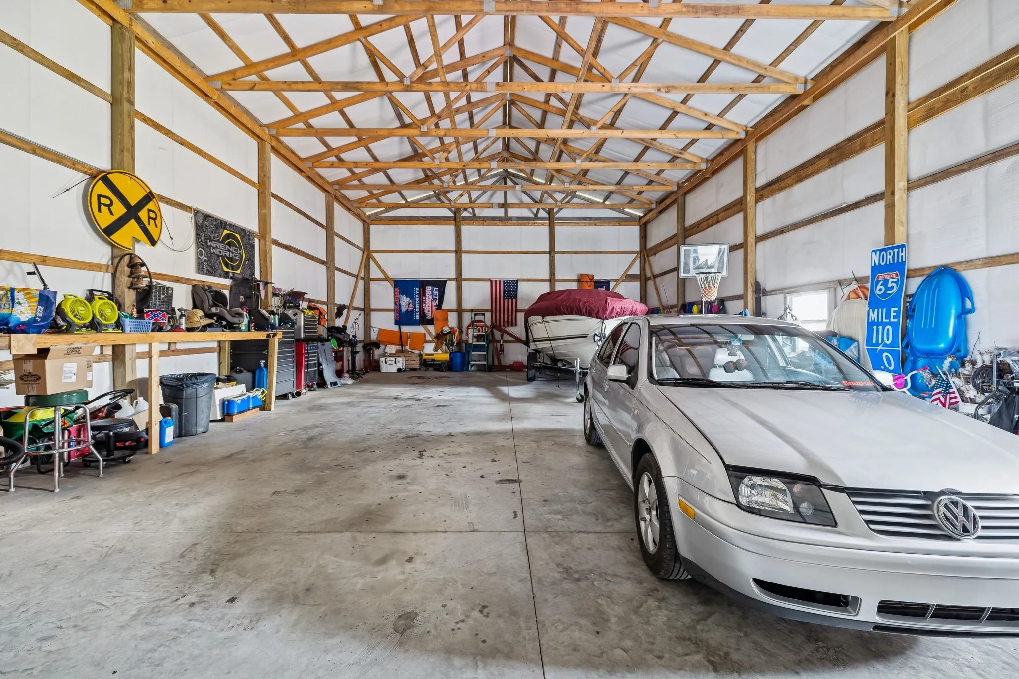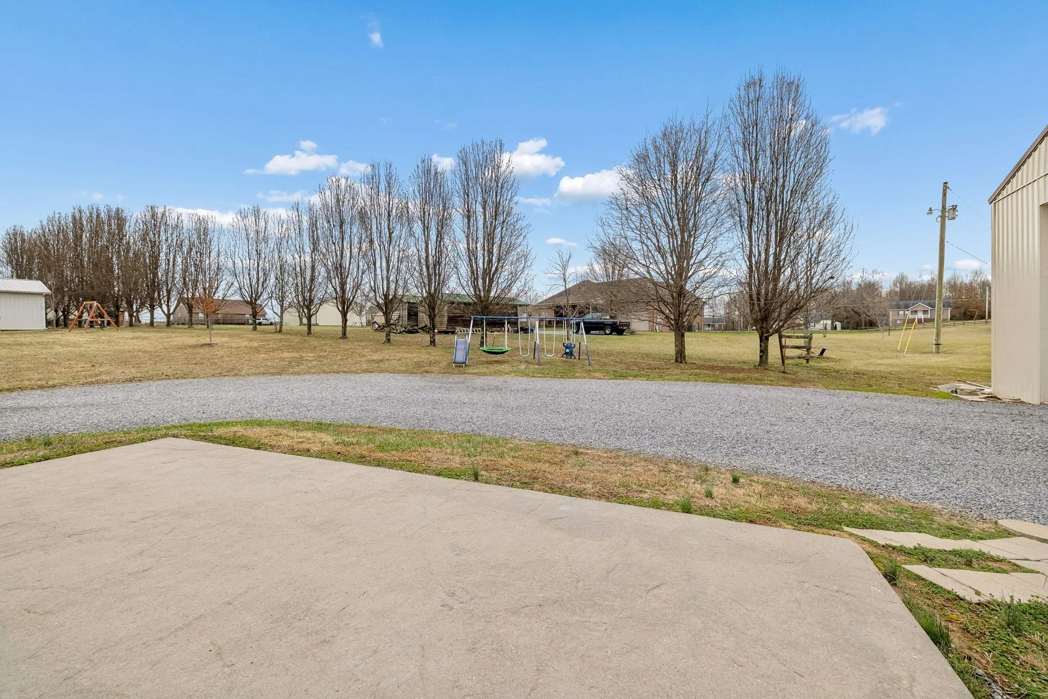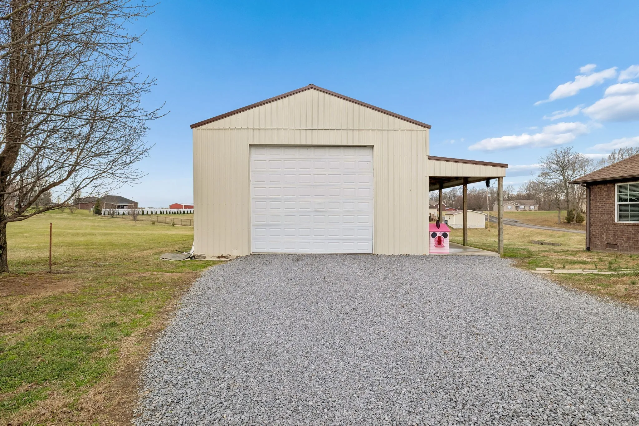 Out back, you’ll love the detached 30×50 shop — ideal for a workshop, extra storage, or hobby space — complete with a large covered porch for outdoor gatherings or entertaining. A gravel driveway leads up to the property, providing ample parking space.