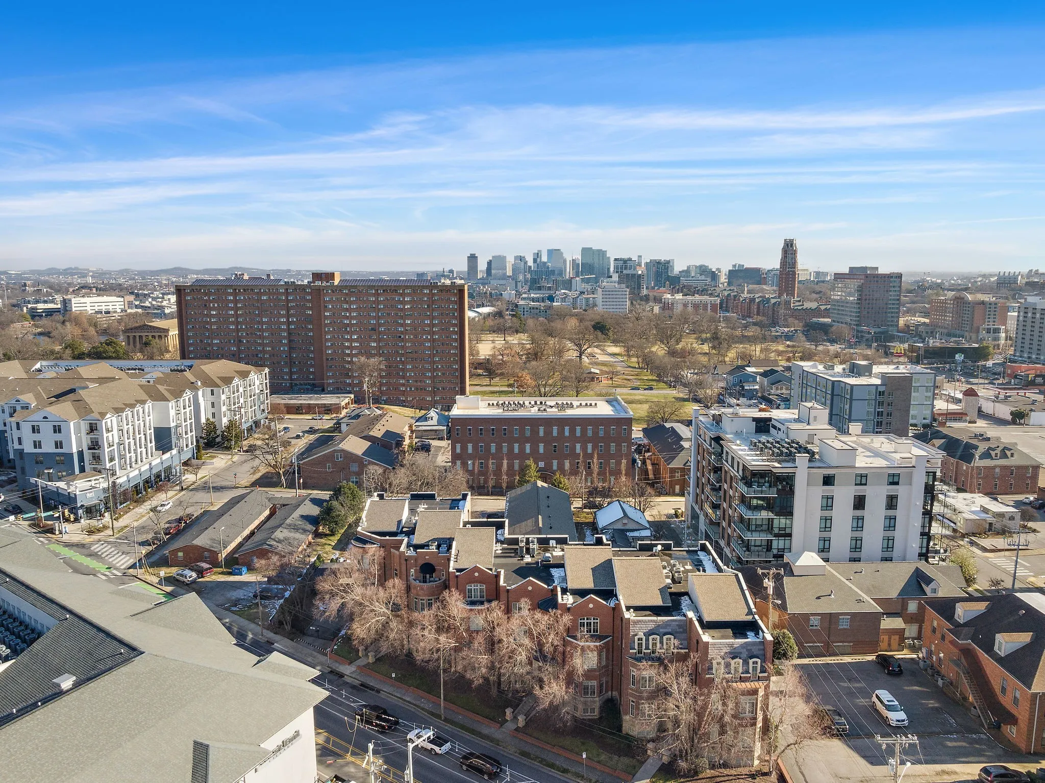 Just three blocks from Vanderbilt University this rare end unit brownstone offers the ideal blend of privacy, space, and walkable convenience, perfect for those seeking a refined Nashville home base. Filled with natural light, this residence features 10 foot ceilings, expansive windows and a spacious open concept living area anchored by a fireplace, designed for both everyday comfort and effortless entertaining. The end unit positioning provides added privacy and a quiet retreat in the heart of the city.