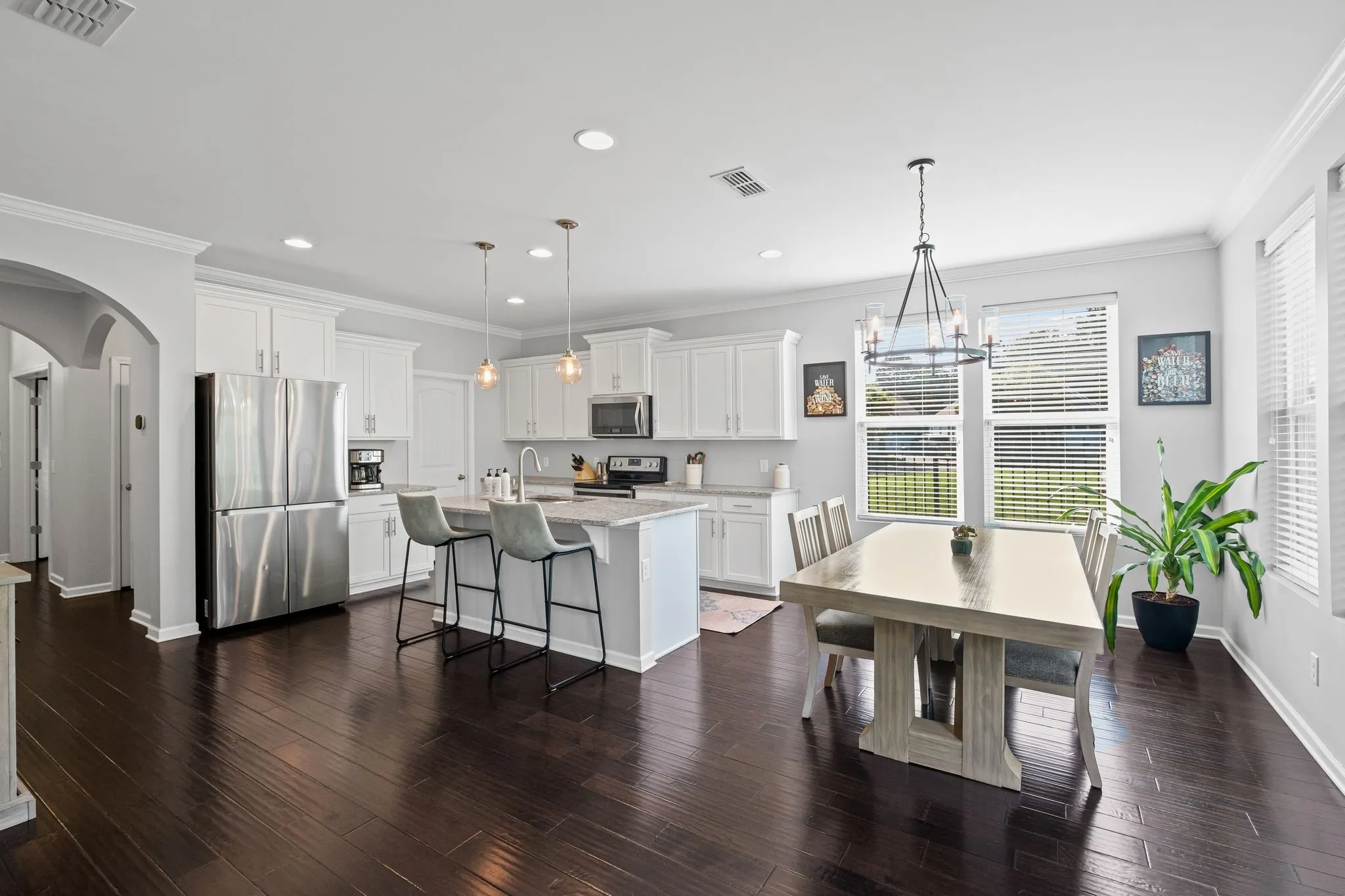 Loaded with upgrades galore! Premium end lot bordering neighborhood green space next door! Extremely traffic calm section of the highly coveted Villages of Riverwood! Featuring a fully fenced backyard, new roof 2022, expoxy coated garage floor, arched interior features, soft close cabinets, granite counter tops, oversized island, stainless appliances, private office, granite, glowing hardwood floors down, recently refinished hardwood stairs, crown molding, extra added windows for abundant natural light, recessed lighting throughout, upgraded lighting fixtures, custom pantry, large primary bedroom: tray ceiling, custom primary closet, large walk-in tile shower, and double vanities. Buyer and buyers agent to verify all pertinent info.