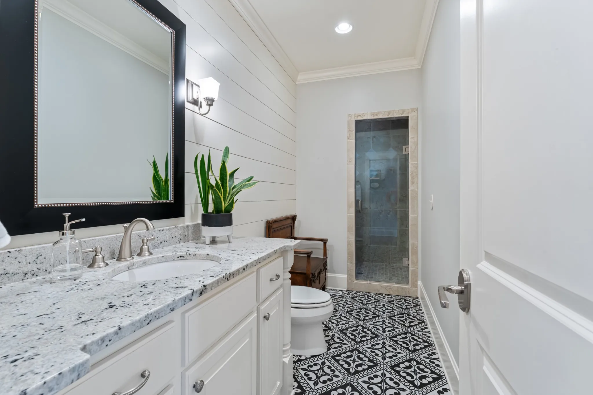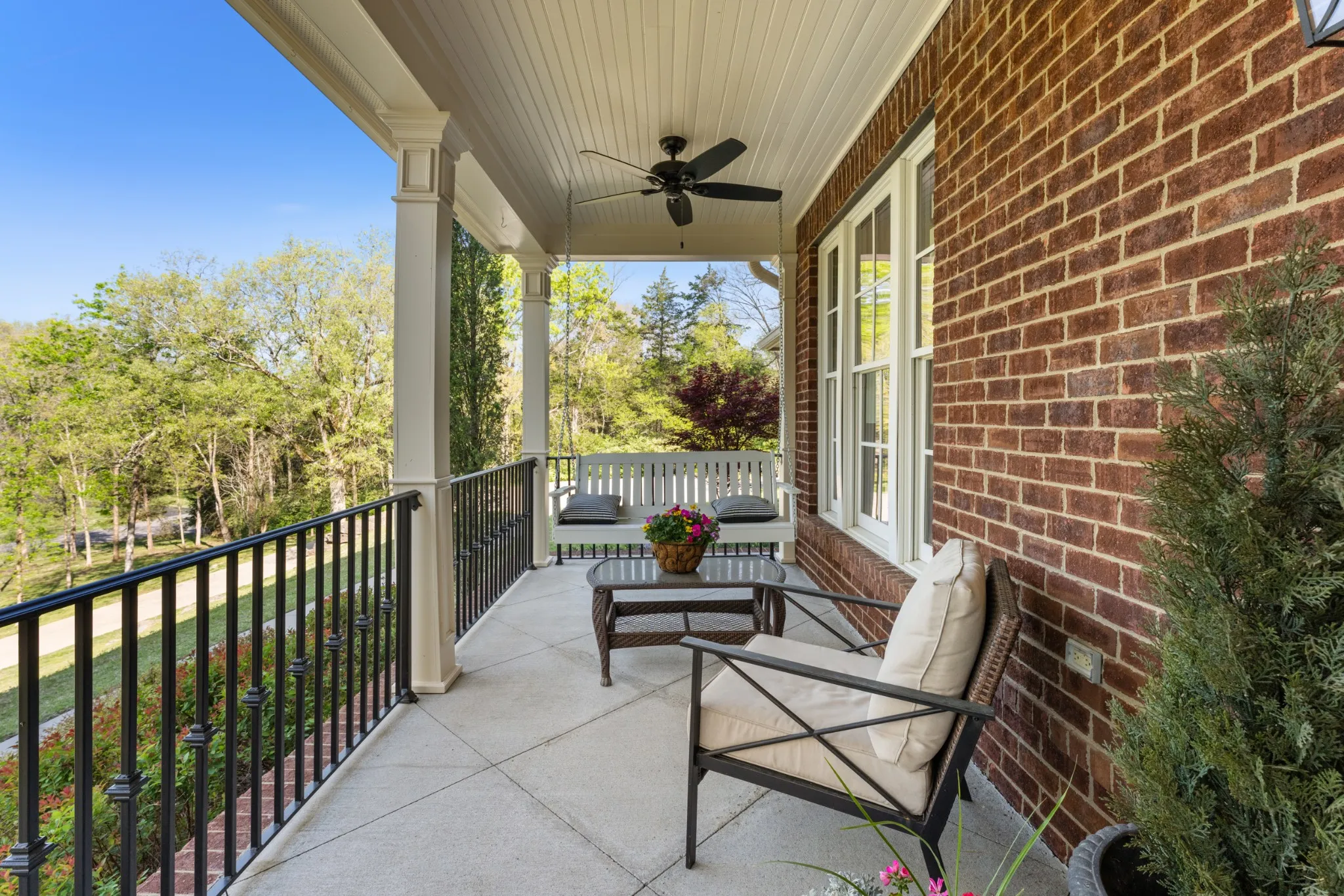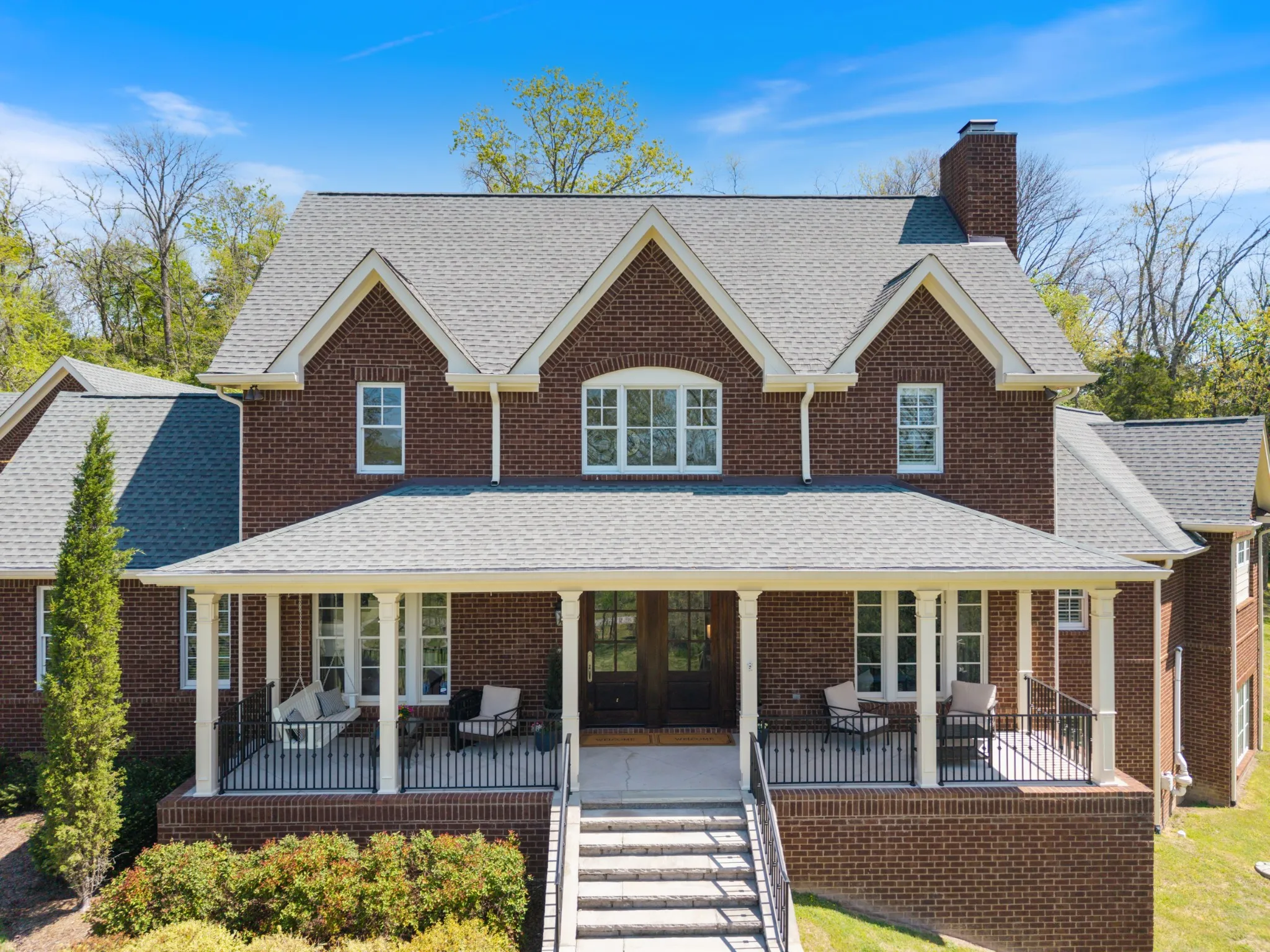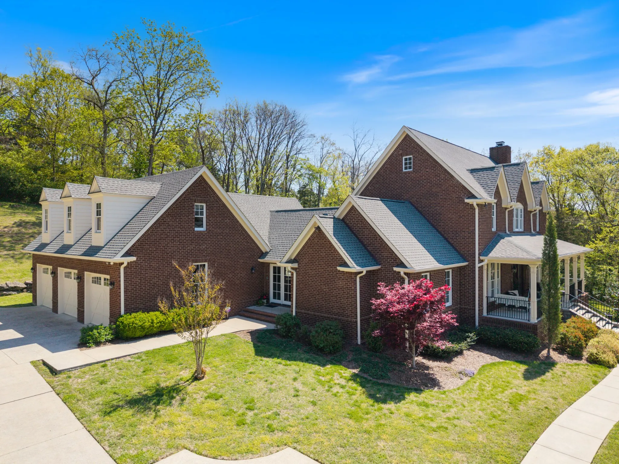 Extraordinary in every detail and unmatched in quality — this 6,027 sq ft southern private retreat sits on nearly four private acres in the coveted corridor between Grassland, Franklin, and Cool Springs. From the sweeping front porch overlooking a beautifully treed yard to the warm, intentional interiors — hardwood floors, brick accents, a fireplace, Florida room, and a showstopping kitchen with wood beams, shiplap, granite counters, and a farmhouse sink — every finish has been considered. Five bedrooms, five full baths, a zoned primary suite, second main floor bedroom/study, ensuite bedrooms upstairs, a bonus/rec room with its own separate staircase over the garage, and a finished basement with a dark media room, wet bar, and guest suite make this layout as flexible as it is impressive. Add 674 square feet of dedicated storage and grounds built for privacy and entertaining, and you have something this market rarely sees. A home this special does not wait. Schedule your private showing today.