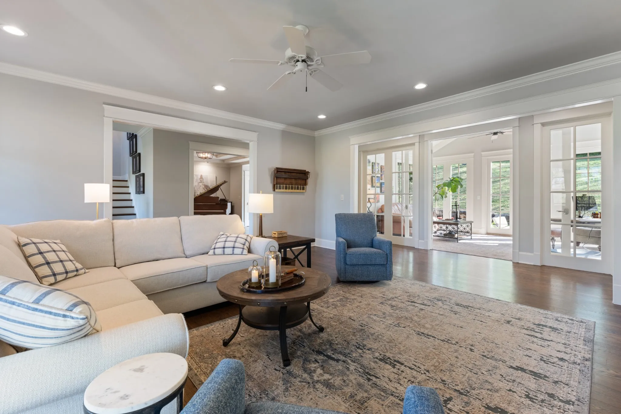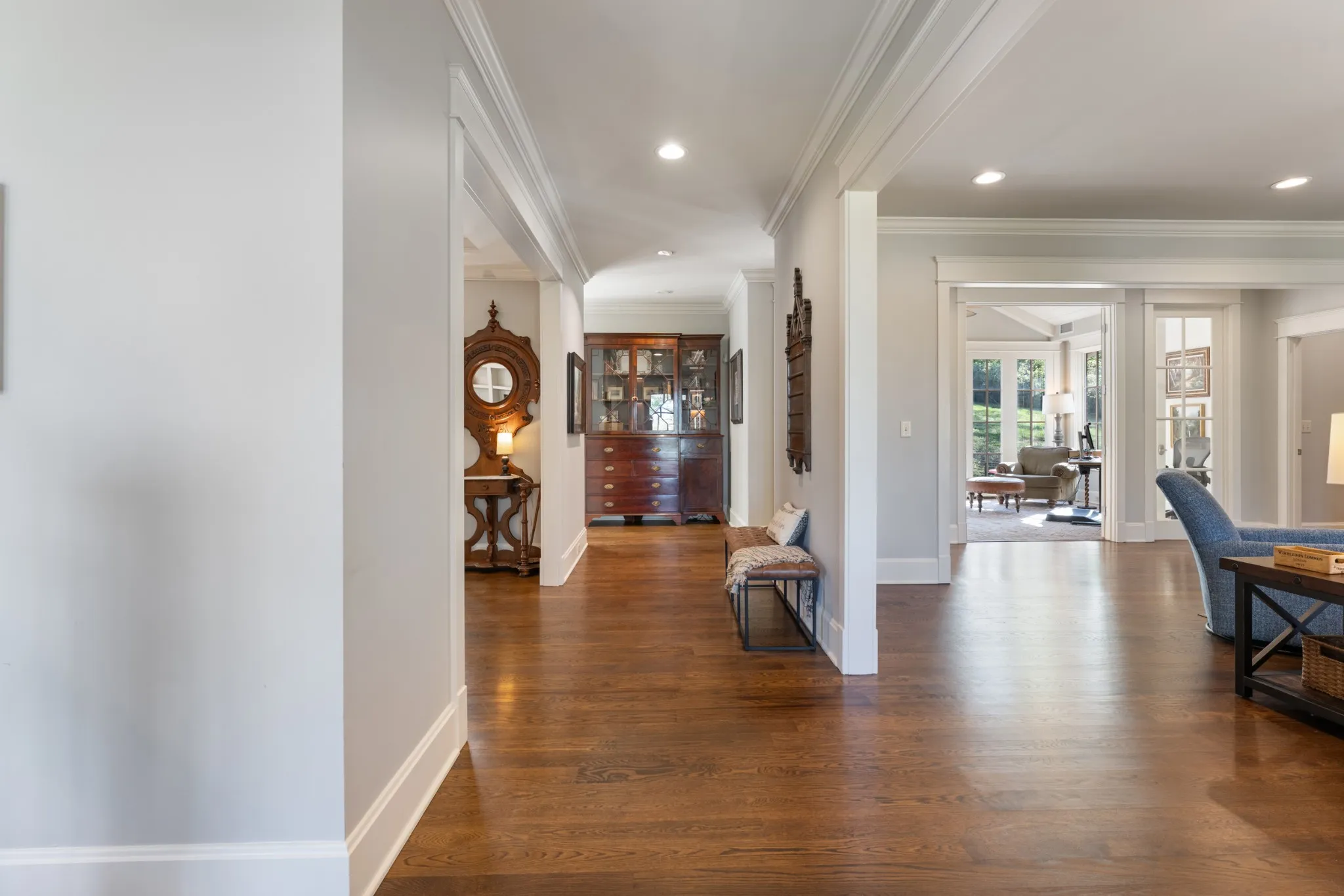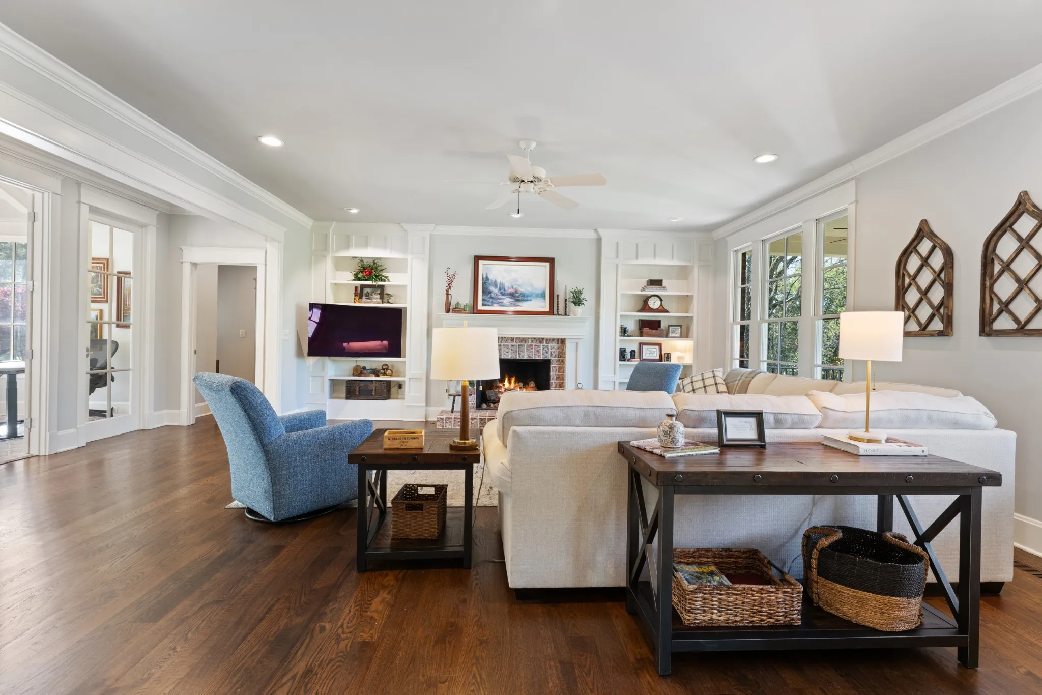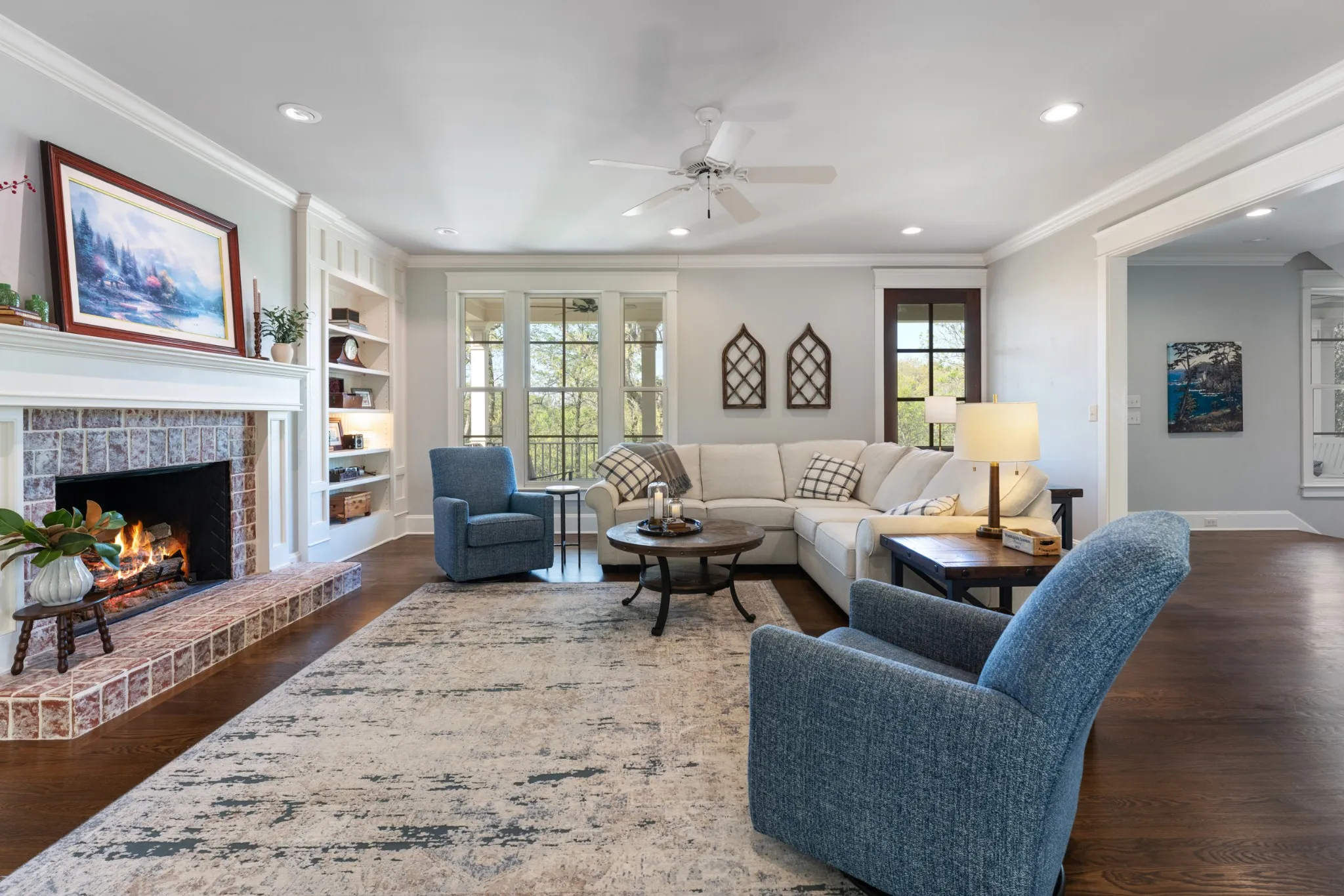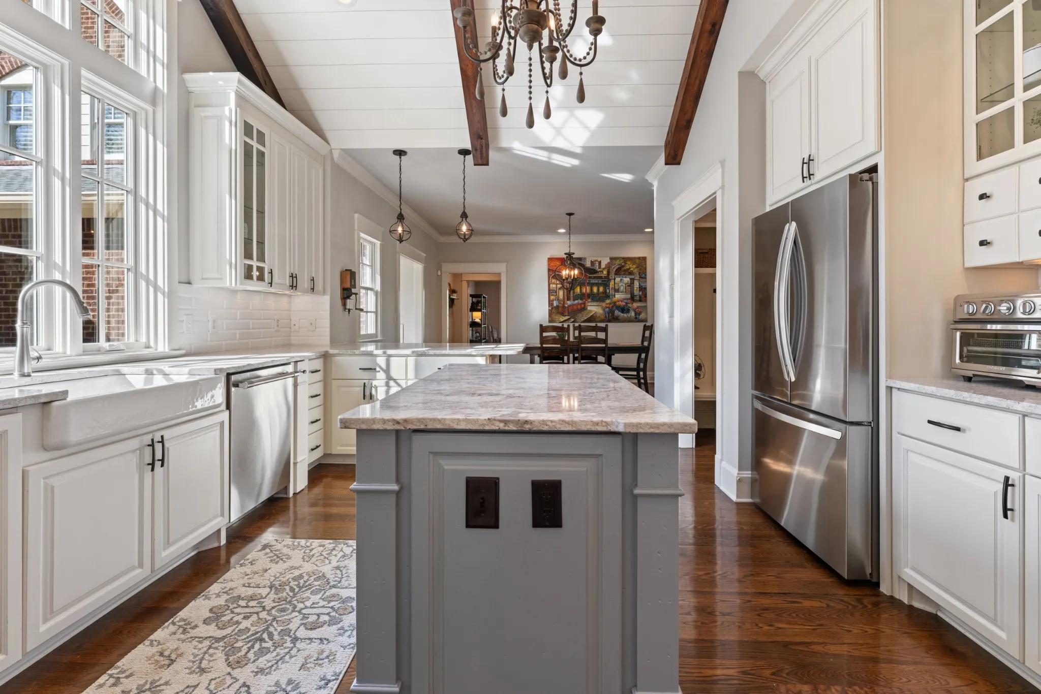 Extraordinary in every detail and unmatched in quality — this 6,027 sq ft southern private retreat sits on nearly four private acres in the coveted corridor between Grassland, Franklin, and Cool Springs. From the sweeping front porch overlooking a beautifully treed yard to the warm, intentional interiors — hardwood floors, brick accents, a fireplace, Florida room, and a showstopping kitchen with wood beams, shiplap, granite counters, and a farmhouse sink — every finish has been considered. Five bedrooms, five full baths, a zoned primary suite, second main floor bedroom/study, ensuite bedrooms upstairs, a bonus/rec room with its own separate staircase over the garage, and a finished basement with a dark media room, wet bar, and guest suite make this layout as flexible as it is impressive. Add 674 square feet of dedicated storage and grounds built for privacy and entertaining, and you have something this market rarely sees. A home this special does not wait. Schedule your private showing today.