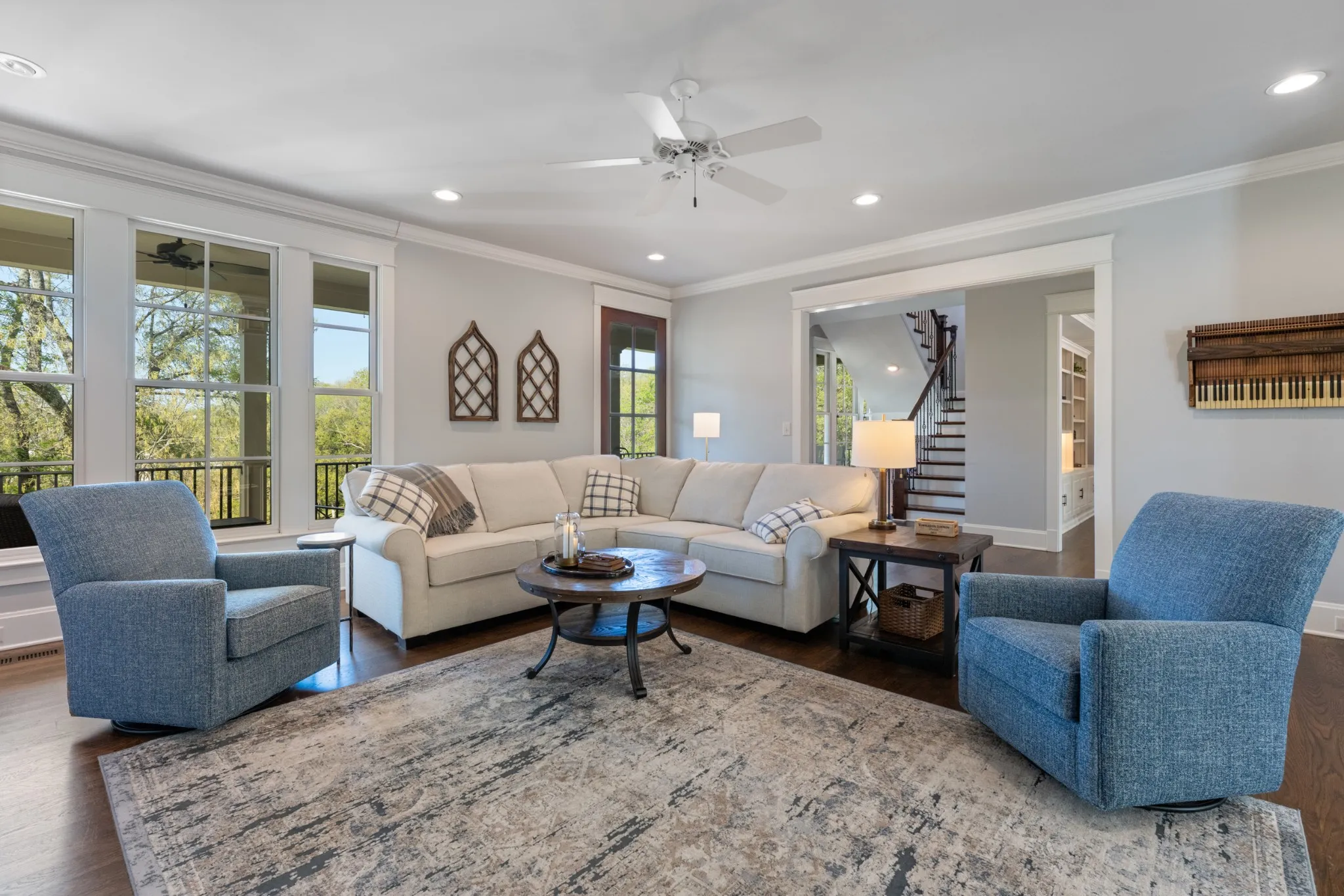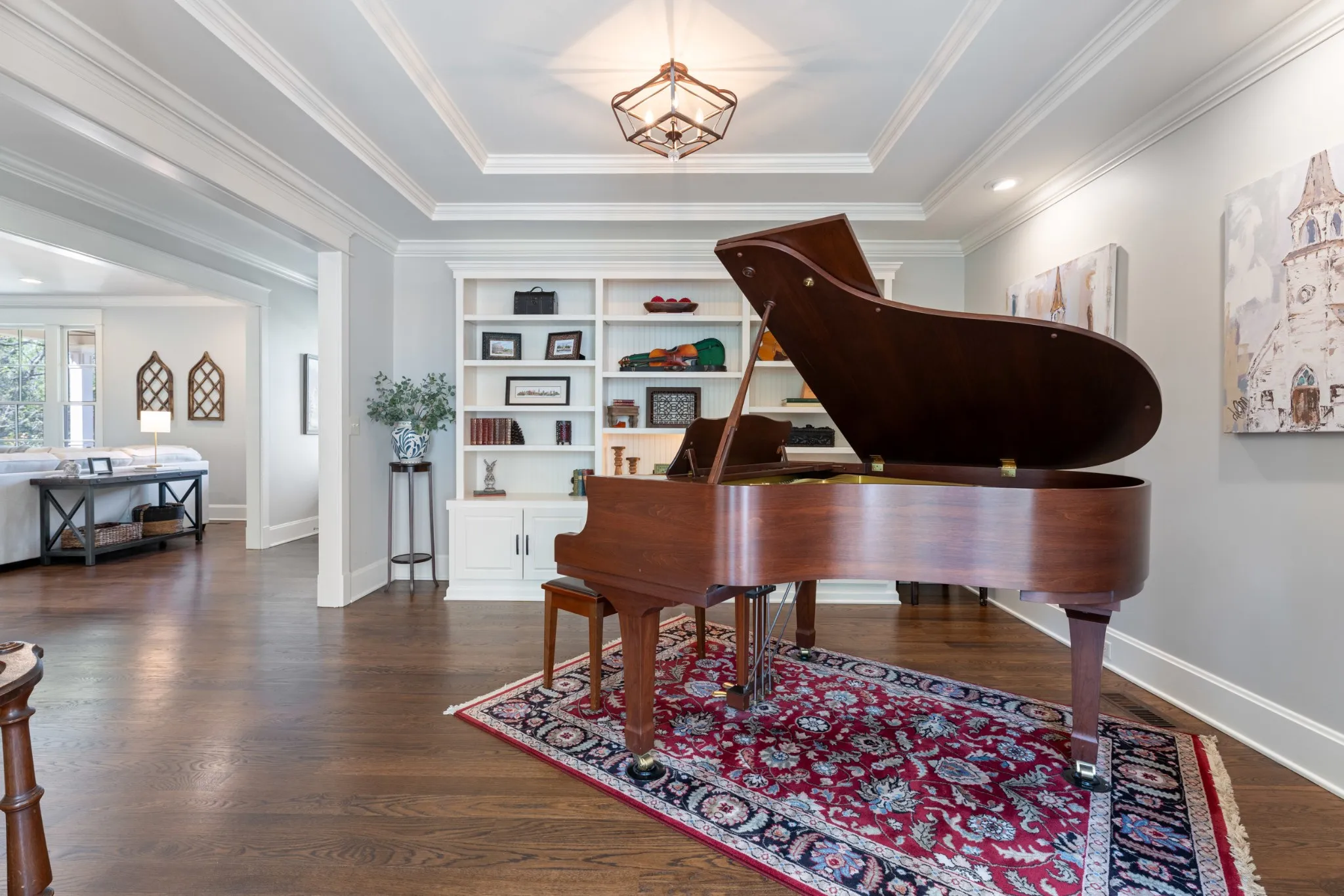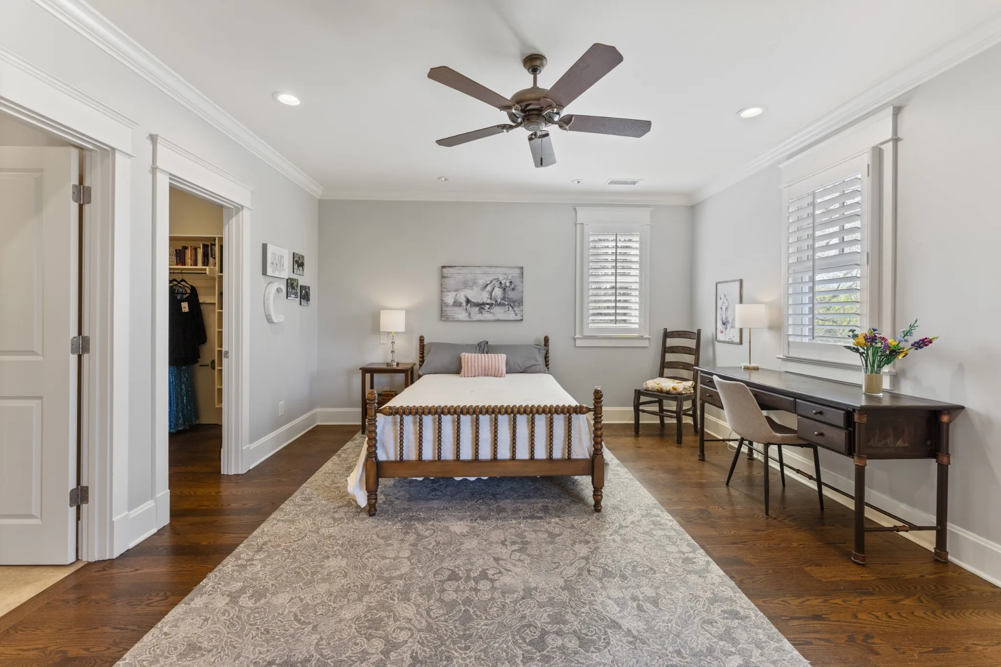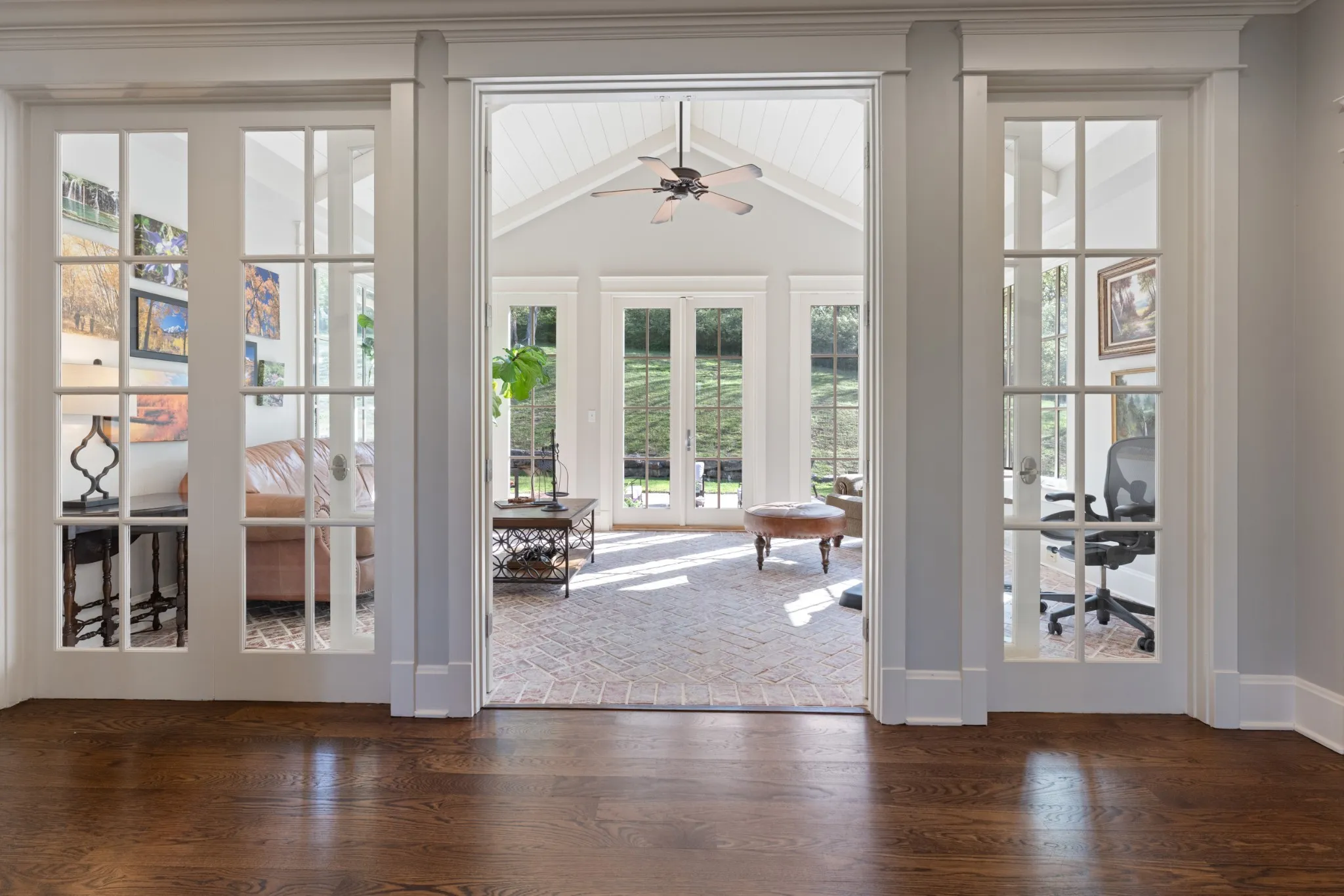 Extraordinary in every detail and unmatched in quality — this 6,027 sq ft southern private retreat sits on nearly four private acres in the coveted corridor between Grassland, Franklin, and Cool Springs. From the sweeping front porch overlooking a beautifully treed yard to the warm, intentional interiors — hardwood floors, brick accents, a fireplace, Florida room, and a showstopping kitchen with wood beams, shiplap, granite counters, and a farmhouse sink — every finish has been considered. Five bedrooms, five full baths, a zoned primary suite, second main floor bedroom/study, ensuite bedrooms upstairs, a bonus/rec room with its own separate staircase over the garage, and a finished basement with a dark media room, wet bar, and guest suite make this layout as flexible as it is impressive. Add 674 square feet of dedicated storage and grounds built for privacy and entertaining, and you have something this market rarely sees. A home this special does not wait. Schedule your private showing today.