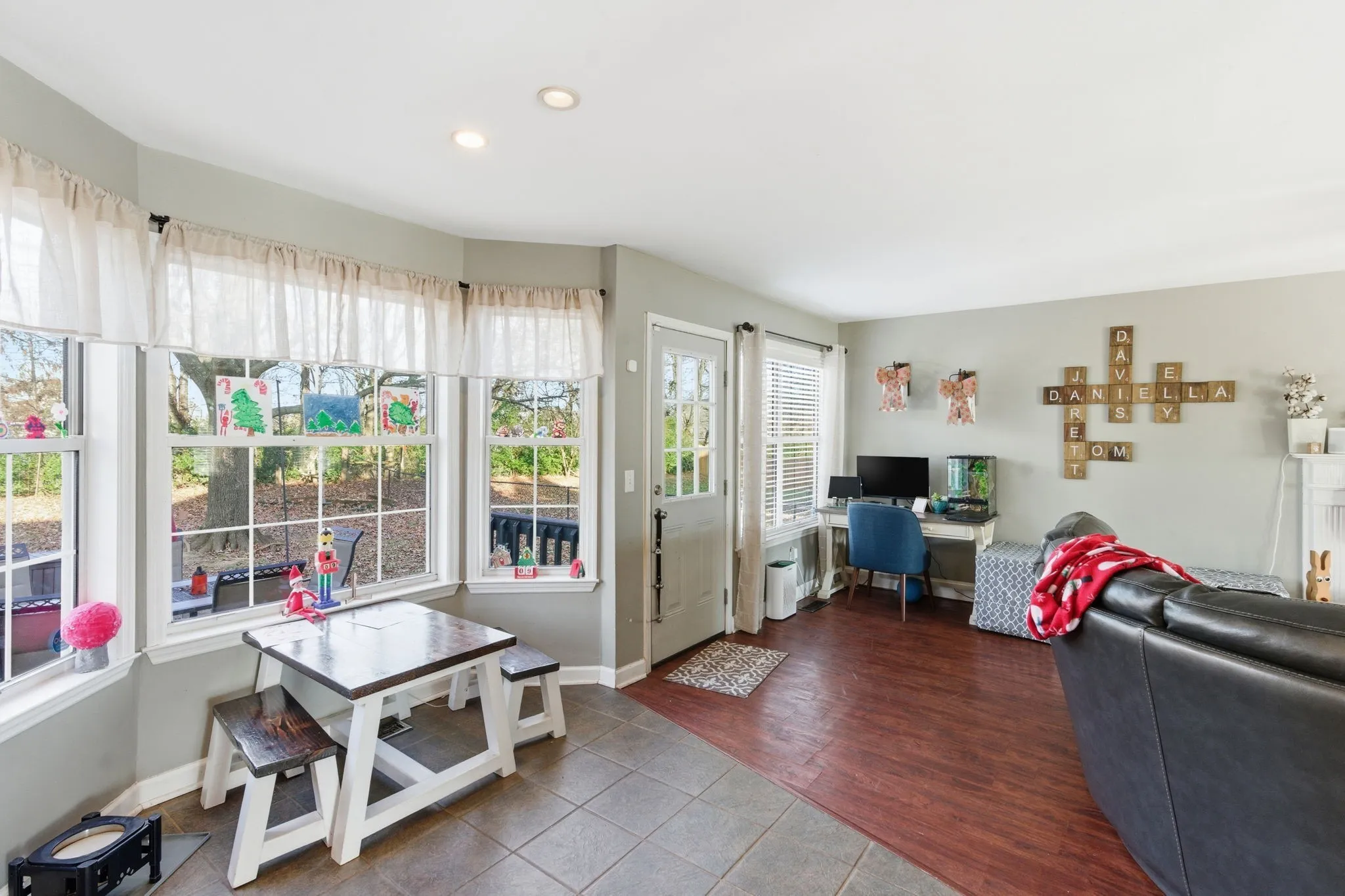 Charming Williamson County home featuring wood flooring throughout the main level, a cozy living room with fireplace, and a dining room with custom built-in shelving. Brand new roof. The primary suite offers a vaulted ceiling, while a large mid-level bonus room provides flexible space for an office, playroom, or media room. Enjoy outdoor living with a full covered front porch and a huge fenced backyard, all in a desirable area close to shopping, dining, and highly rated Williamson County schools.