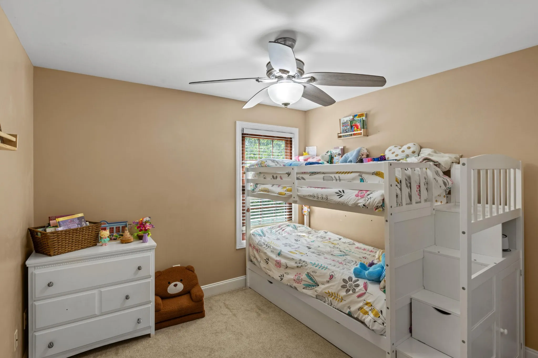 The primary suite serves as a private retreat, featuring a luxurious en suite complete with a soaking tub, separate shower, and a spacious walk-in closet. Each additional bedroom is generously sized, now enhanced with remote-control ceiling fans in the three secondary bedrooms for added comfort and convenience, ideal for family, guests, or a home office.