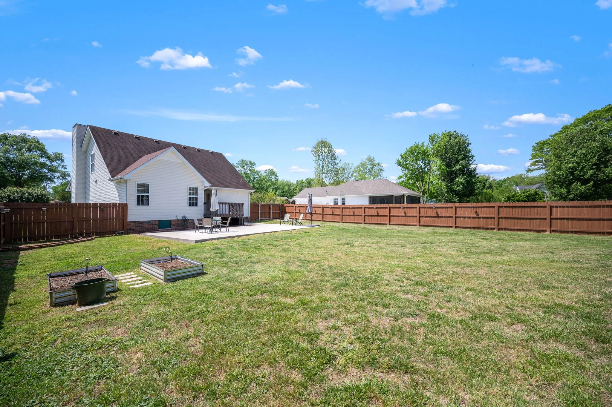 LOCATION, LOCATION, LOCATION! Looking for quick access to shopping, restaurants and the interstate? This home is for you! Three bedrooms with the primary on the first floor. Fresh paint and new carpet throughout! The living room features a gas fireplace, perfect for those cooler months. Enjoy your sleek, spacious, eat-in kitchen with stainless steel appliances and new quartz countertops. Two bedrooms and a bonus room on the second level. Your backyard offers a deck and oversized patio in an enclosed, fenced backyard. This property sits on over half an acre corner lot with county taxes only.