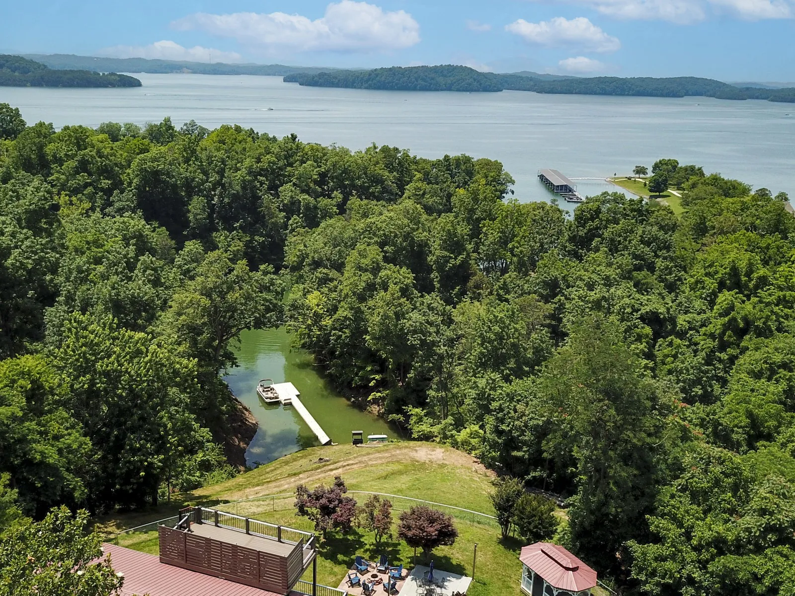 Situated just off the main channel in a quiet, private cove, this property provides a peaceful and tranquil lakefront setting with direct water access.
