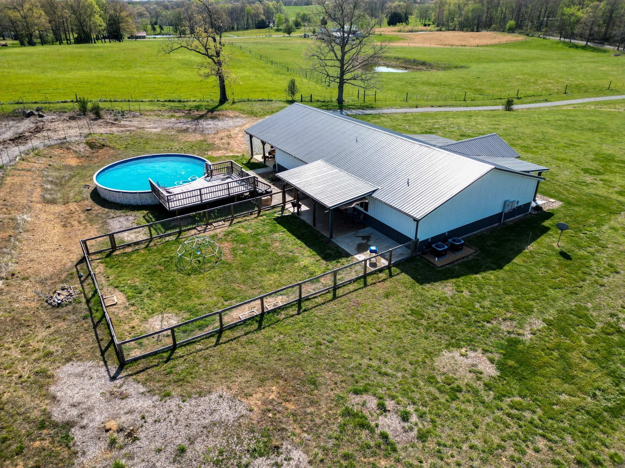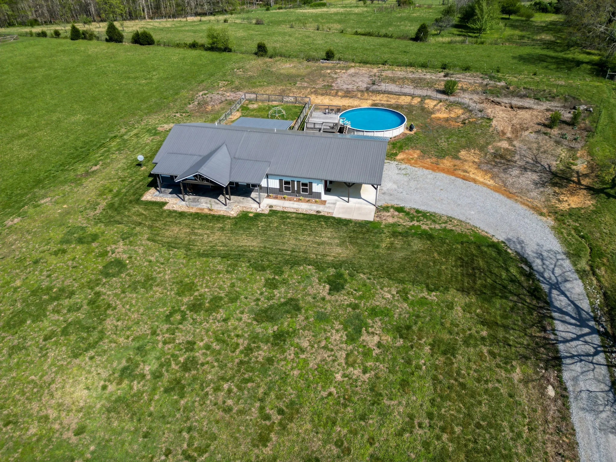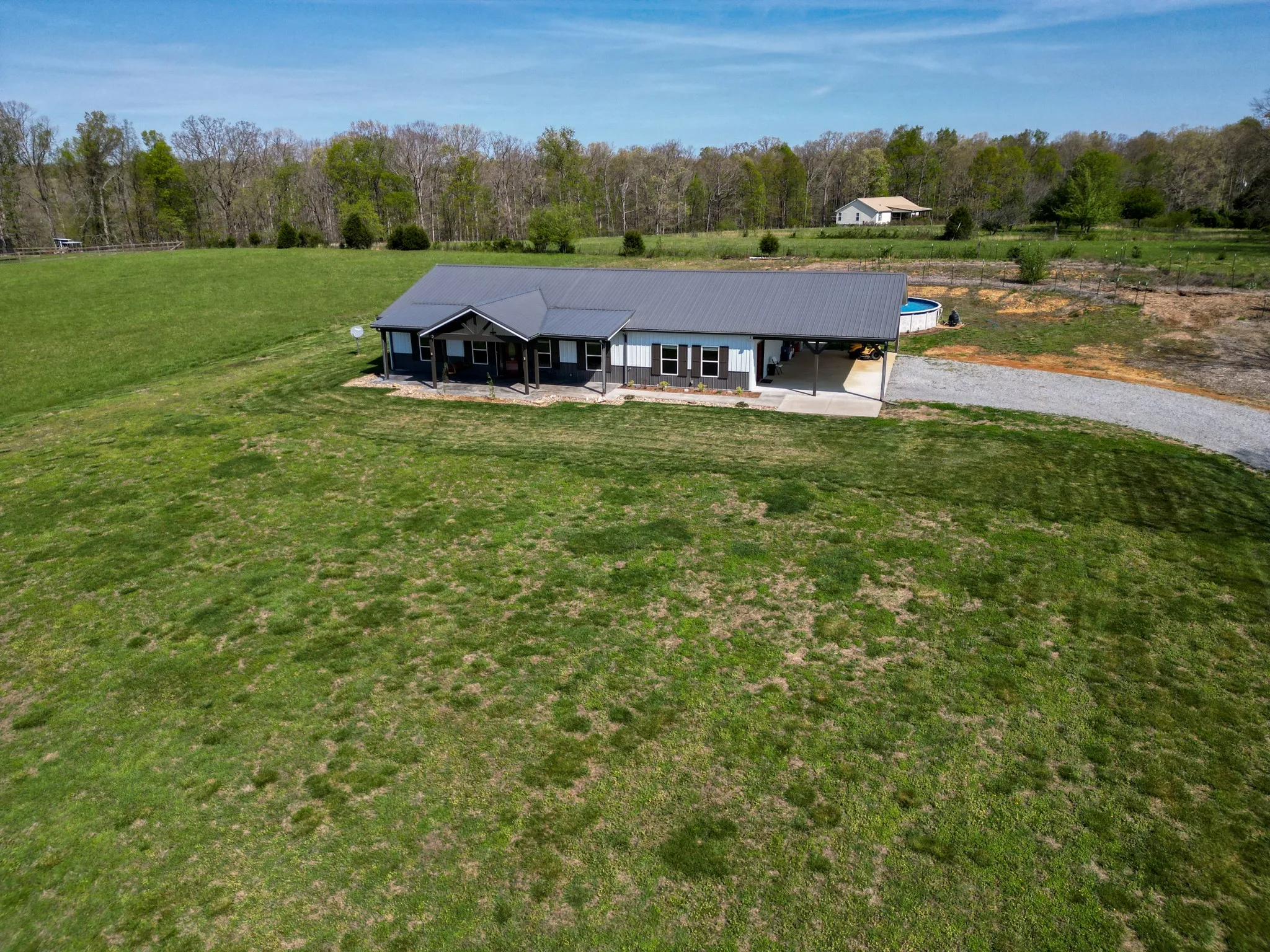 Step outside and the property truly shines. The front porch overlooks wide, scenic views that change beautifully with the seasons. A 30-foot above-ground pool with surrounding deck provides the perfect place to relax and unwind on warm Tennessee days. The property also includes fruit trees, garden areas, and mature wine grapes—ideal for a homestead lifestyle or simply enjoying the land.