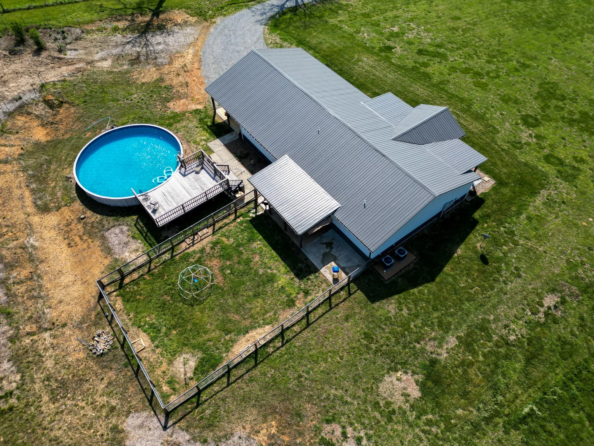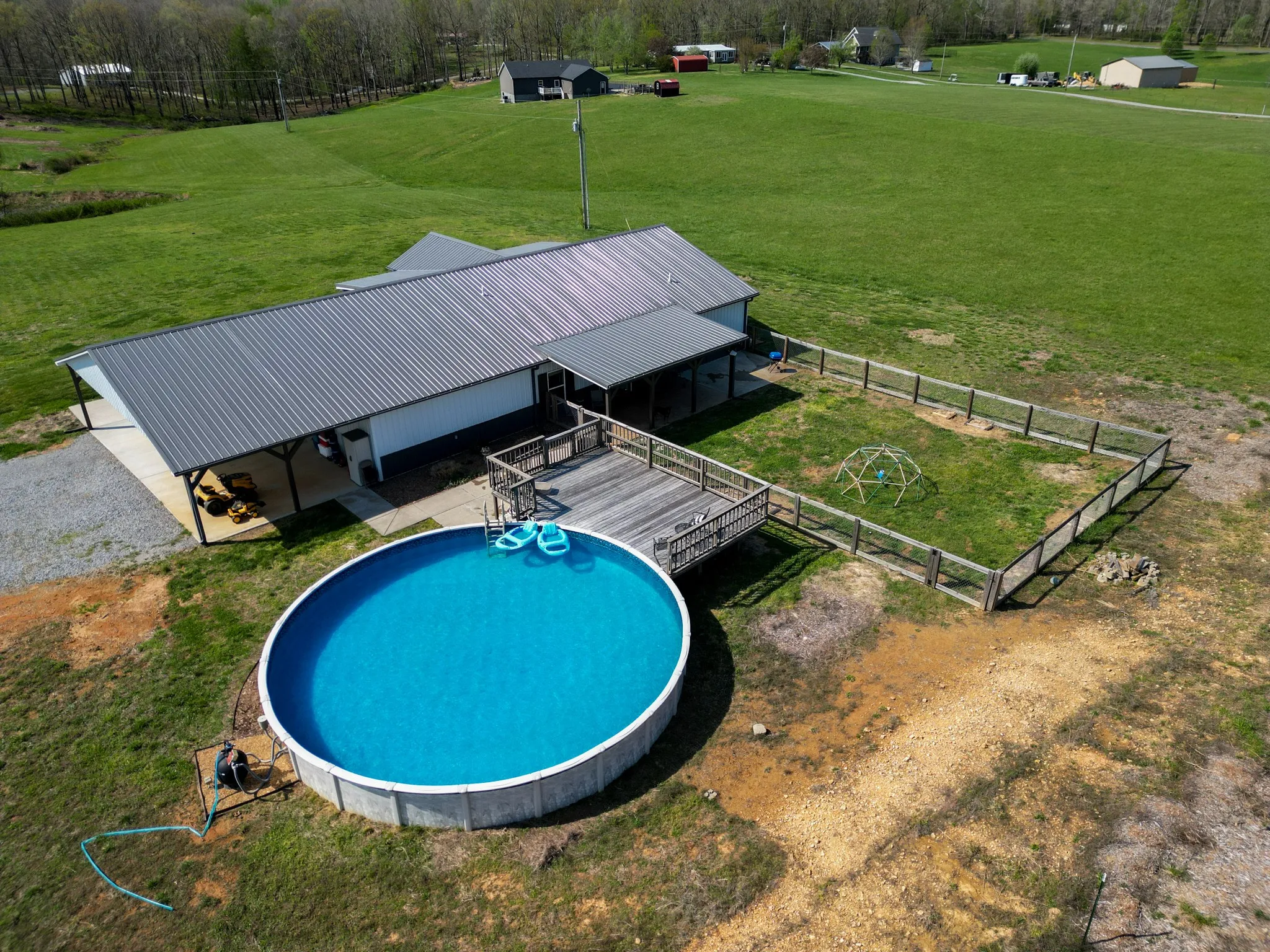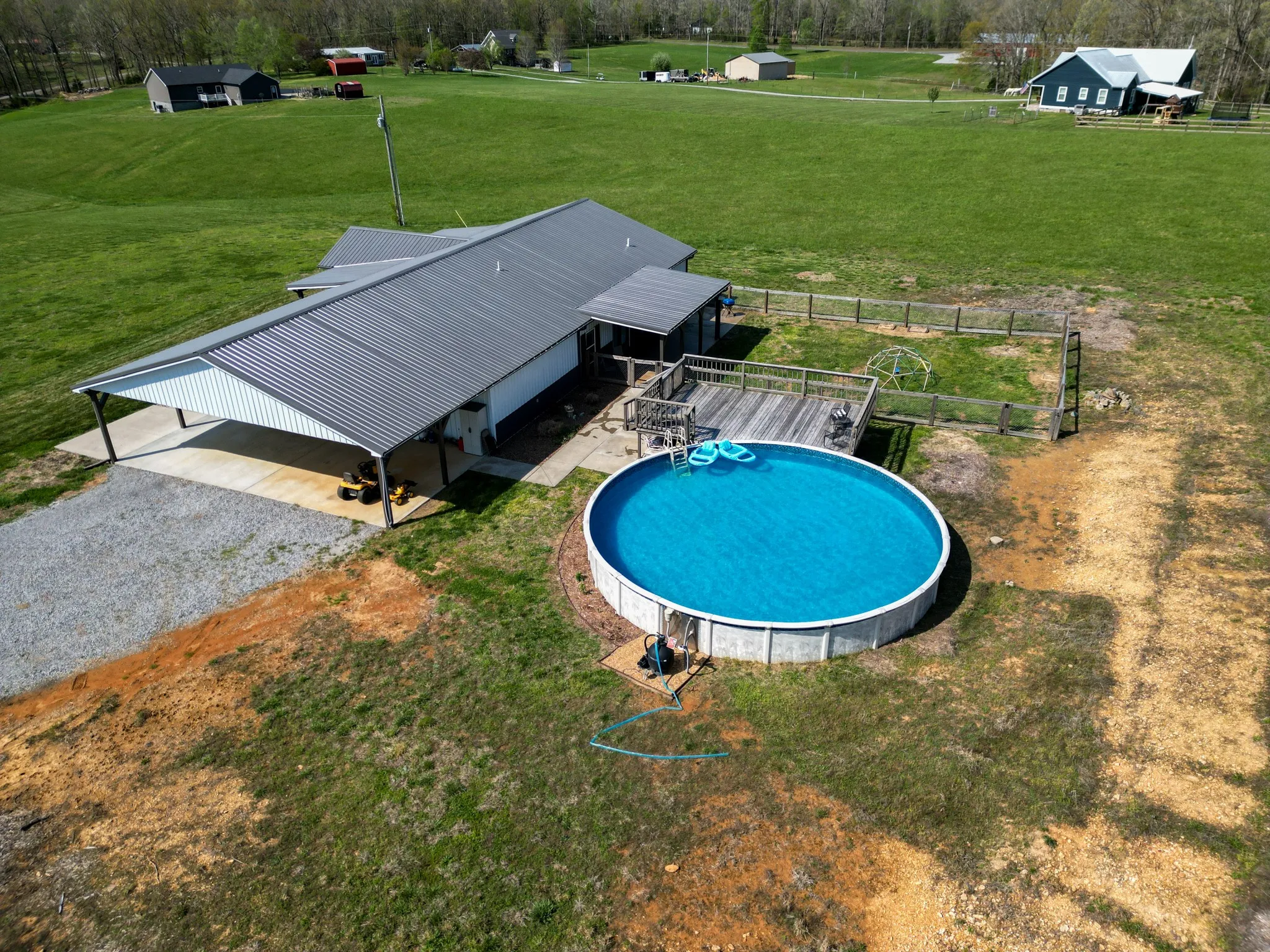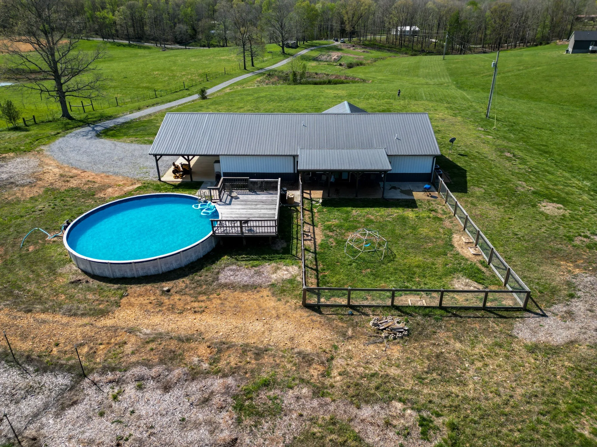 Step outside and the property truly shines. The front porch overlooks wide, scenic views that change beautifully with the seasons. A 30-foot above-ground pool with surrounding deck provides the perfect place to relax and unwind on warm Tennessee days. The property also includes fruit trees, garden areas, and mature wine grapes—ideal for a homestead lifestyle or simply enjoying the land.