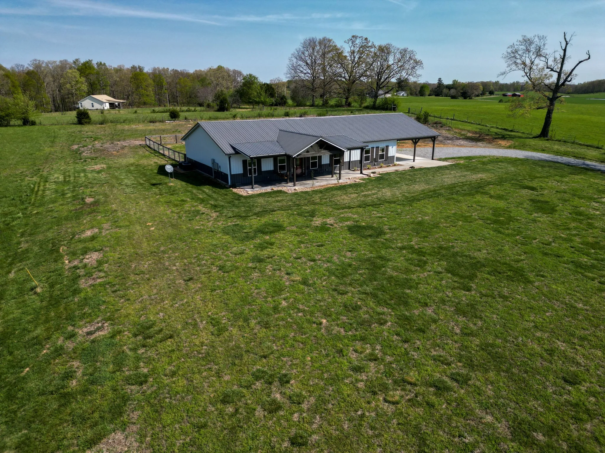 Tucked away on 5.84 acres of gently rolling countryside, this custom-built 2,600 sq ft barndominium offers a seamless blend of peaceful surroundings and modern comfort. From the moment you arrive, you’re welcomed by open skies, gentle breezes, and a true sense of calm that defines everyday living here.