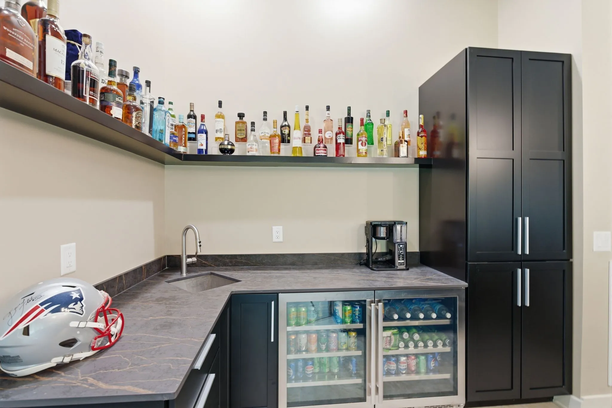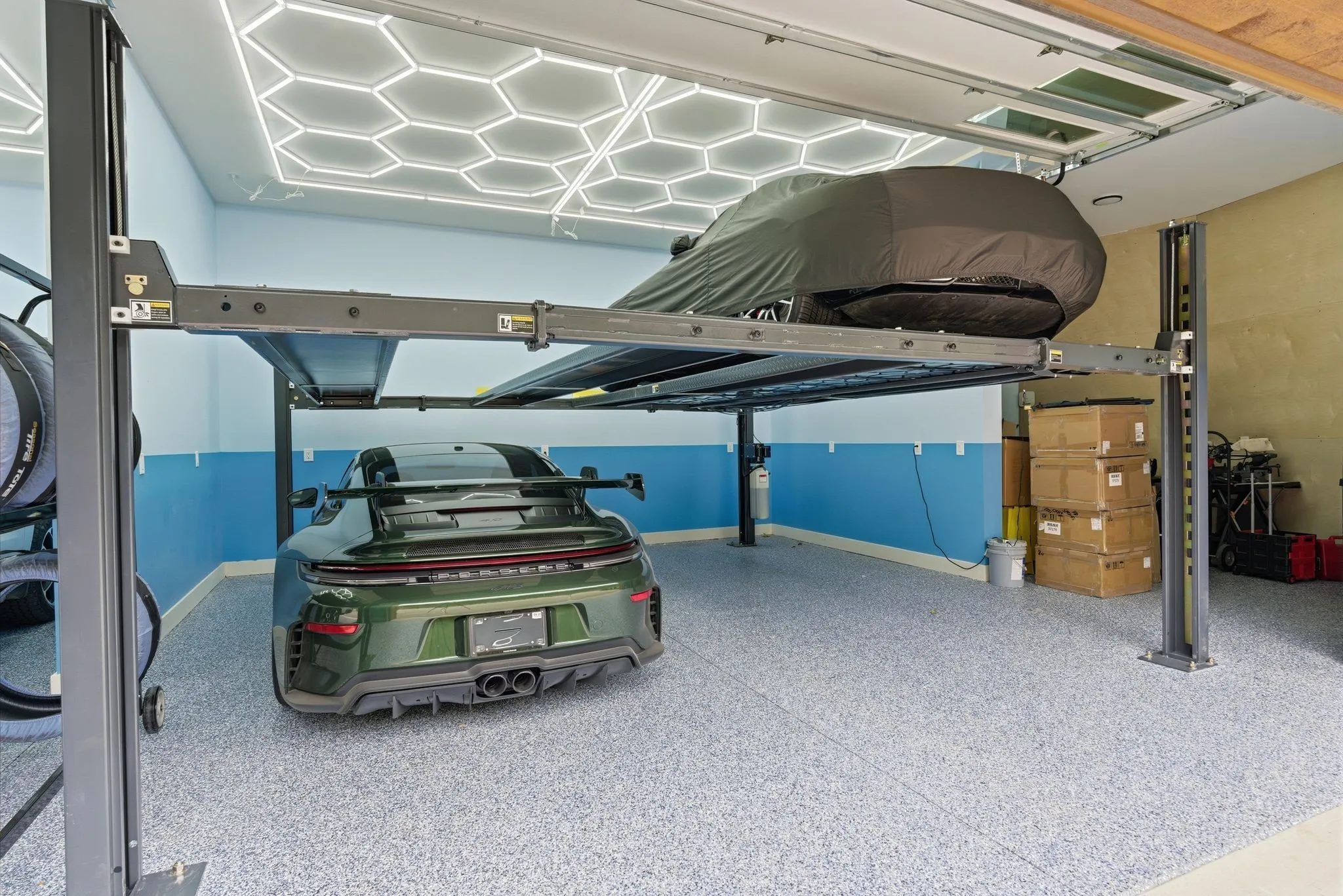 Inside, thoughtful details elevate everyday living, from a dedicated dog wash in the laundry room to a garage built with enthusiasts in mind, complete with a lift allowing for up to six vehicles.