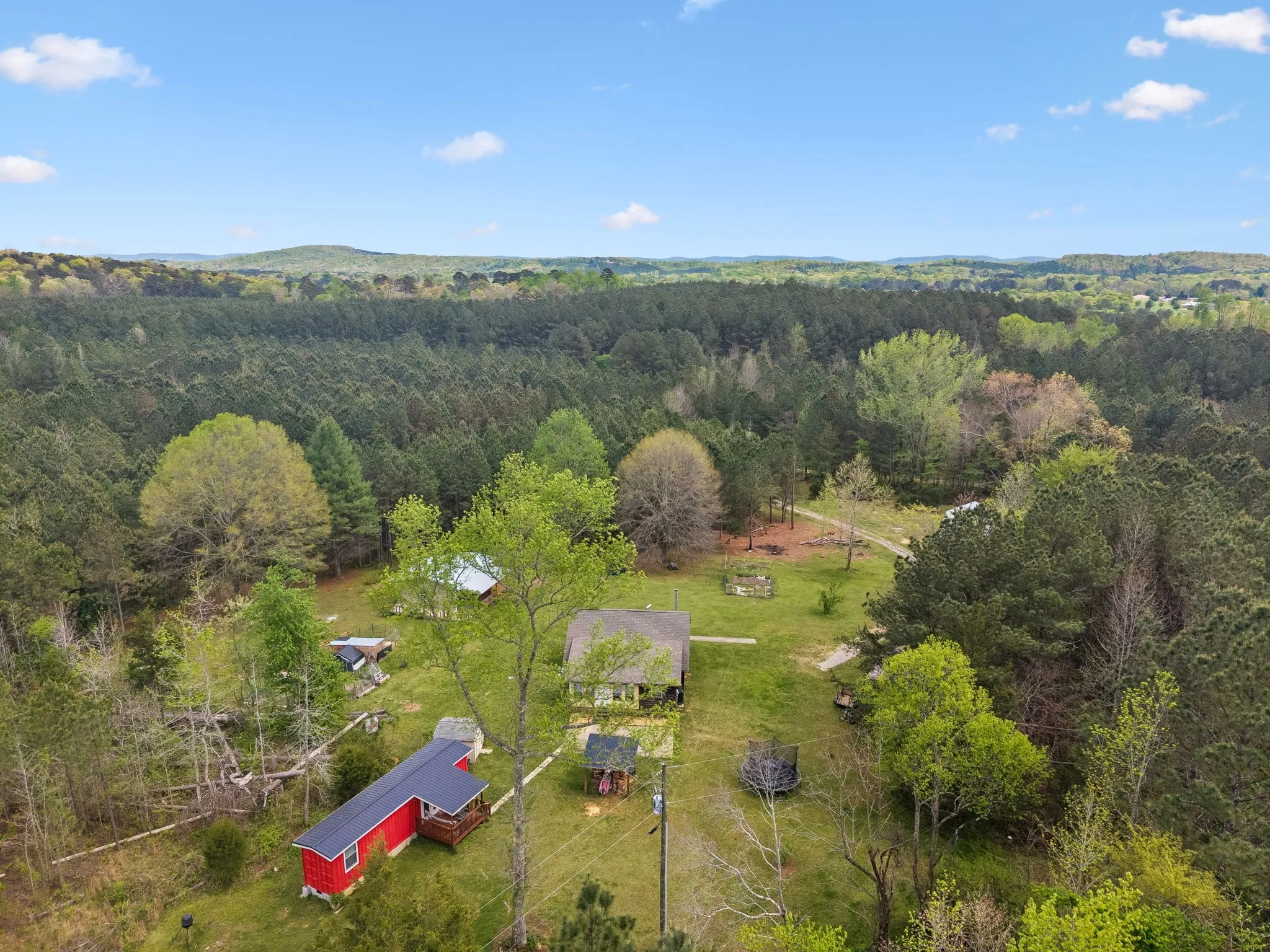 Secure your future on 47+ acres of rare, usable terrain. This property offers the ultimate high-ground advantage with panoramic views for miles. The multiple dwellings provide built-in redundancy for a community, while the flat acreage is ideal for livestock, large-scale gardening, and total self-sufficiency.