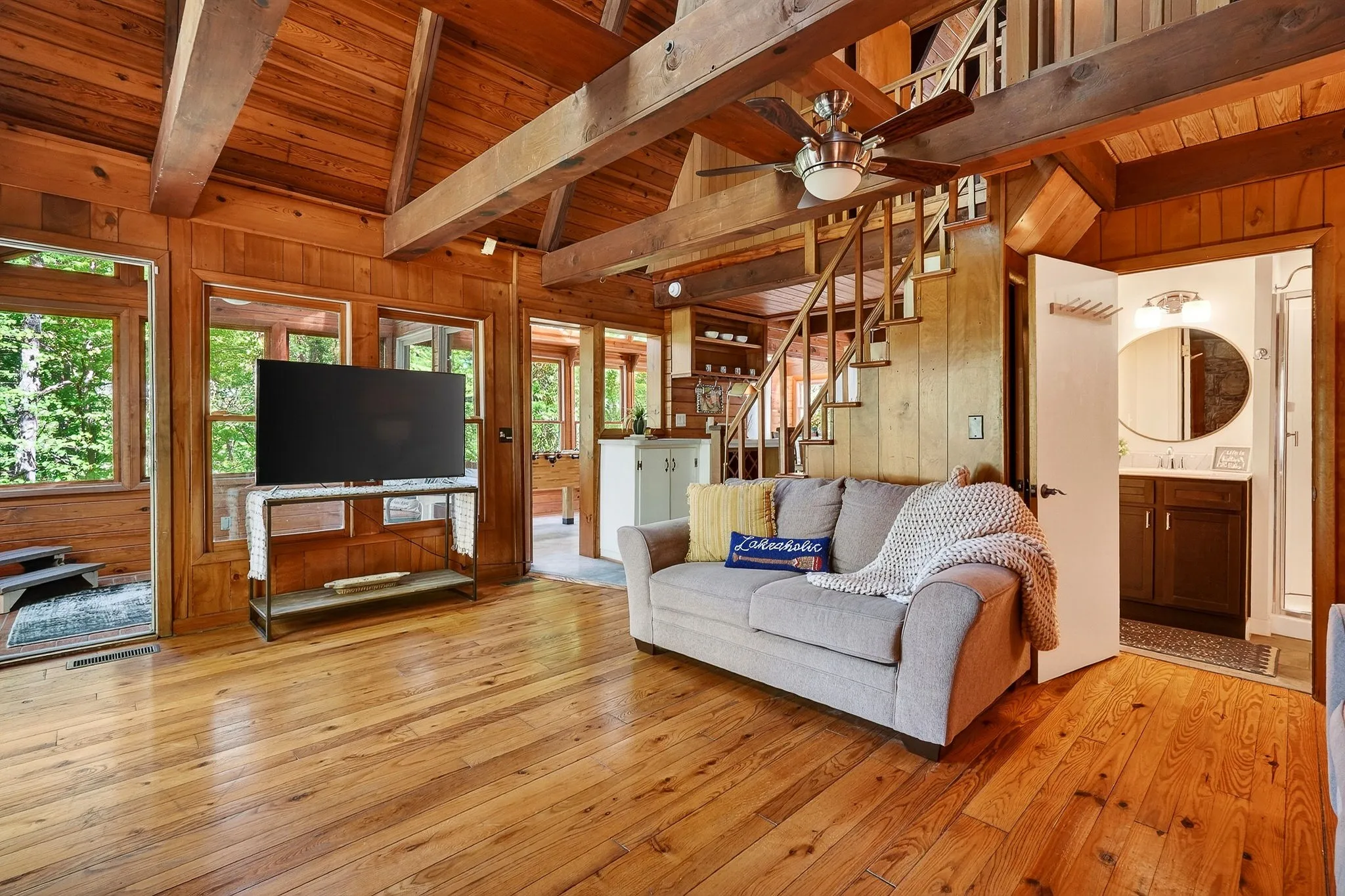 Charming and nostalgic A-frame retreat at the coveted shores of CENTER HILL LAKE, just a stone’s throw from Hurricane Marina and Floating Mill. This storybook lake home is offered fully furnished and turnkey—ready for immediate enjoyment or investment! Nestled in its private, wooded setting, the home blends warmth and character with modern comfort. Featuring 4 bedrooms and 3.5 baths, this thoughtfully designed space is for both relaxation and entertaining. An expansive gathering room invites family and friends to come together, while the home’s seamless connection to the outdoors creates the ultimate lake lifestyle experience. Enjoy peaceful mornings surrounded by nature, afternoons on the water, and evenings under the stars. Multiple outdoor areas provide the perfect backdrop for entertaining or unwinding in total privacy. Whether you’re seeking a personal getaway or an income-producing property, this home offers flexibility with short-term rental eligibility. The ideal Center Hill Lake retreat —timeless, inviting, and ready to enjoy from day one!