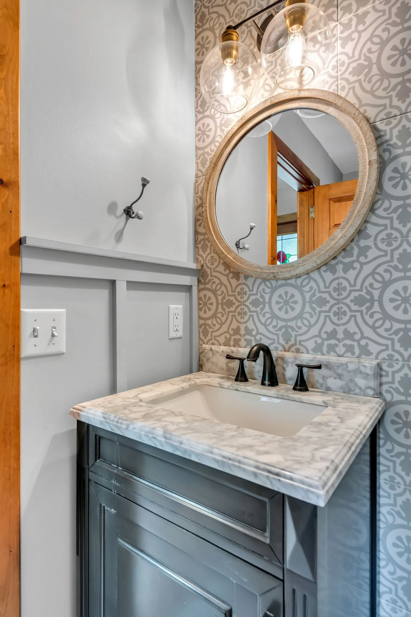 The primary suite is a true retreat, complete with a custom tile shower and a delightful nook perfect for morning coffee or quiet reading. The second bathroom impresses with designer finishes and a luxurious soaking tub—ideal for relaxing after a long day.