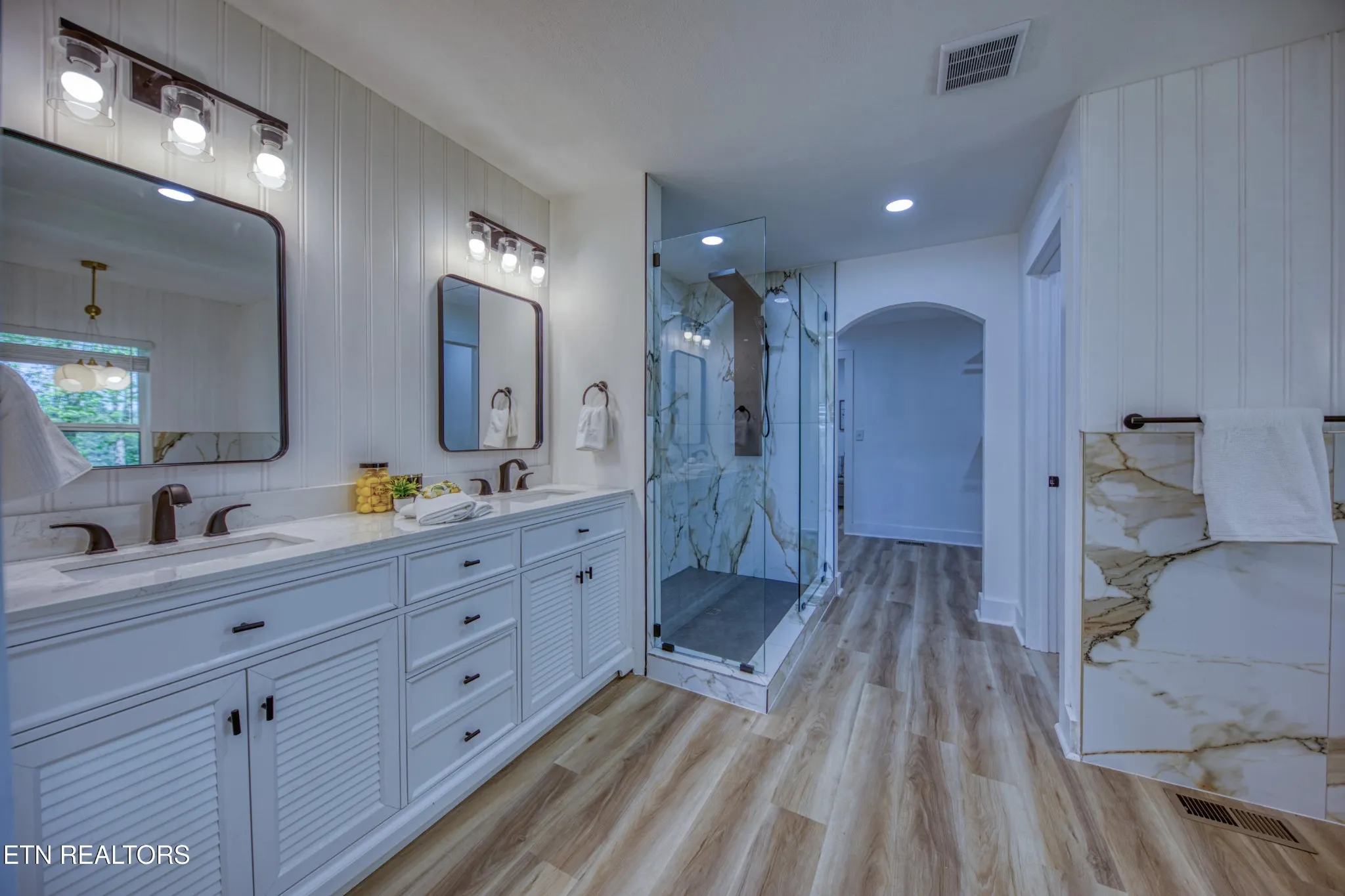 All bathrooms have been fully updated with new vanities, tile work, showers, tubs, glass, and accessories. Additional upgrades include new HVAC registers and updated interior systems throughout the home.