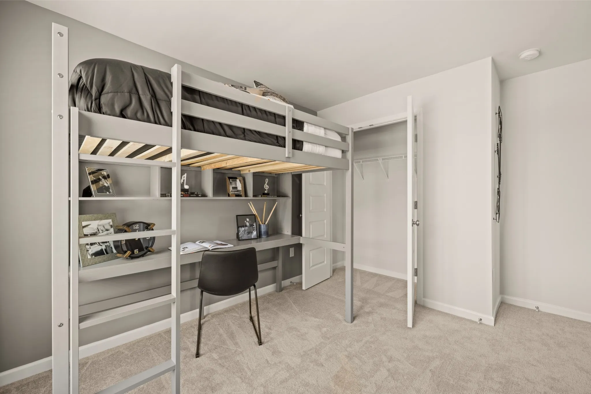 LOT #101 – Broadmoor floorplan. This new two-story home design combines comfort and style. The first floor showcases a modern open-plan layout that seamlessly connects the Great Room, dining room and multi-functional kitchen. On the second floor, a loft adds shared-living space, and three bedrooms and a luxe owner’s suite provide tranquil havens for family members or overnight guests.