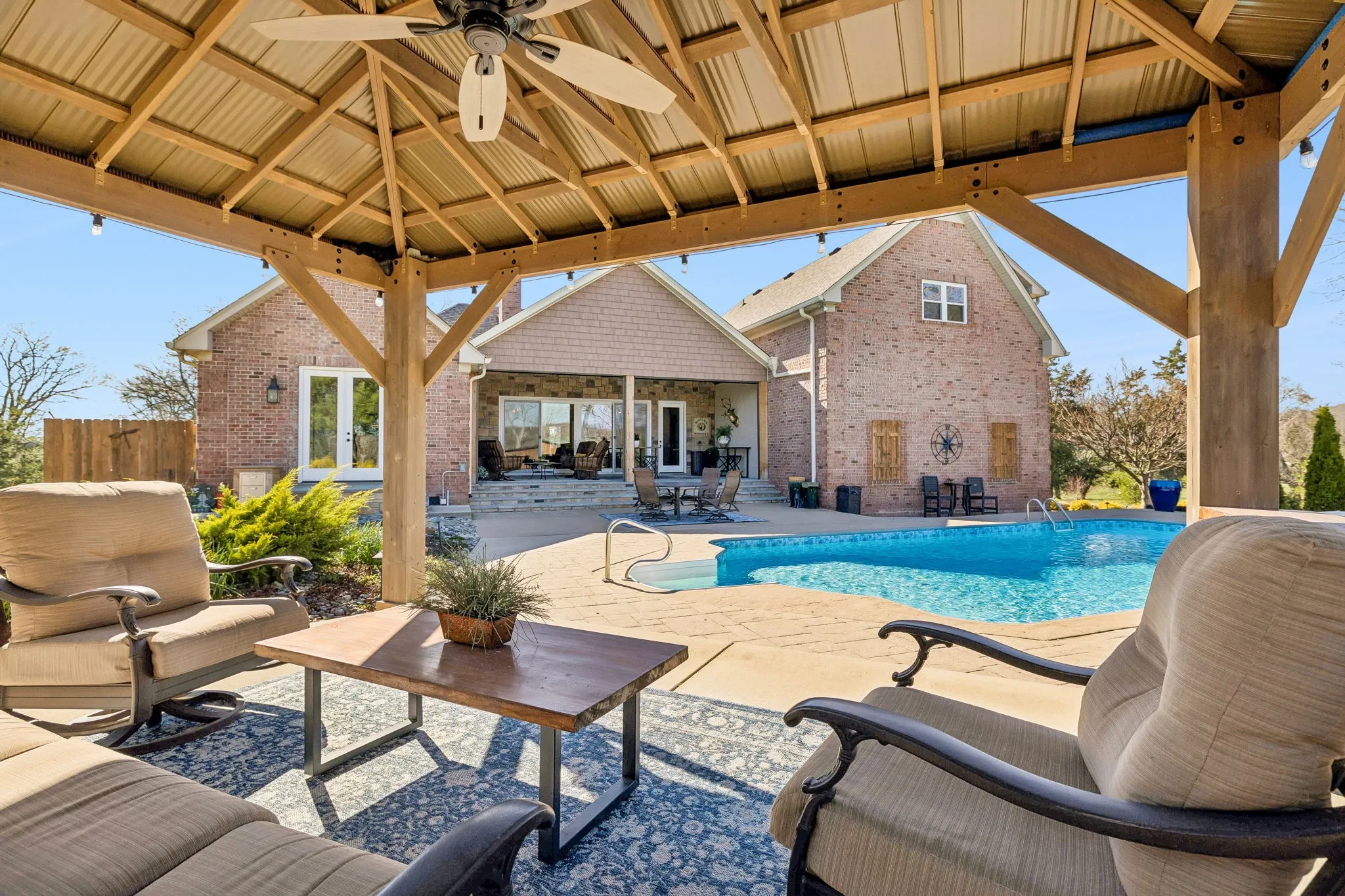 From the moment you arrive, the home feels welcoming and thoughtfully put together, with spaces designed for both easy living and gathering with others. Inside, natural light fills the expansive rooms, highlighting timeless finishes and a fresh, modern style. Outdoors, enjoy time by the pool, relax on the covered patio, or take in the quiet beauty of the creekside setting and open acreage. Whether you’re seeking more space, room to explore your interests, or simply a place that feels like home, this property offers it all—and is zoned for Liberty Creek Schools.