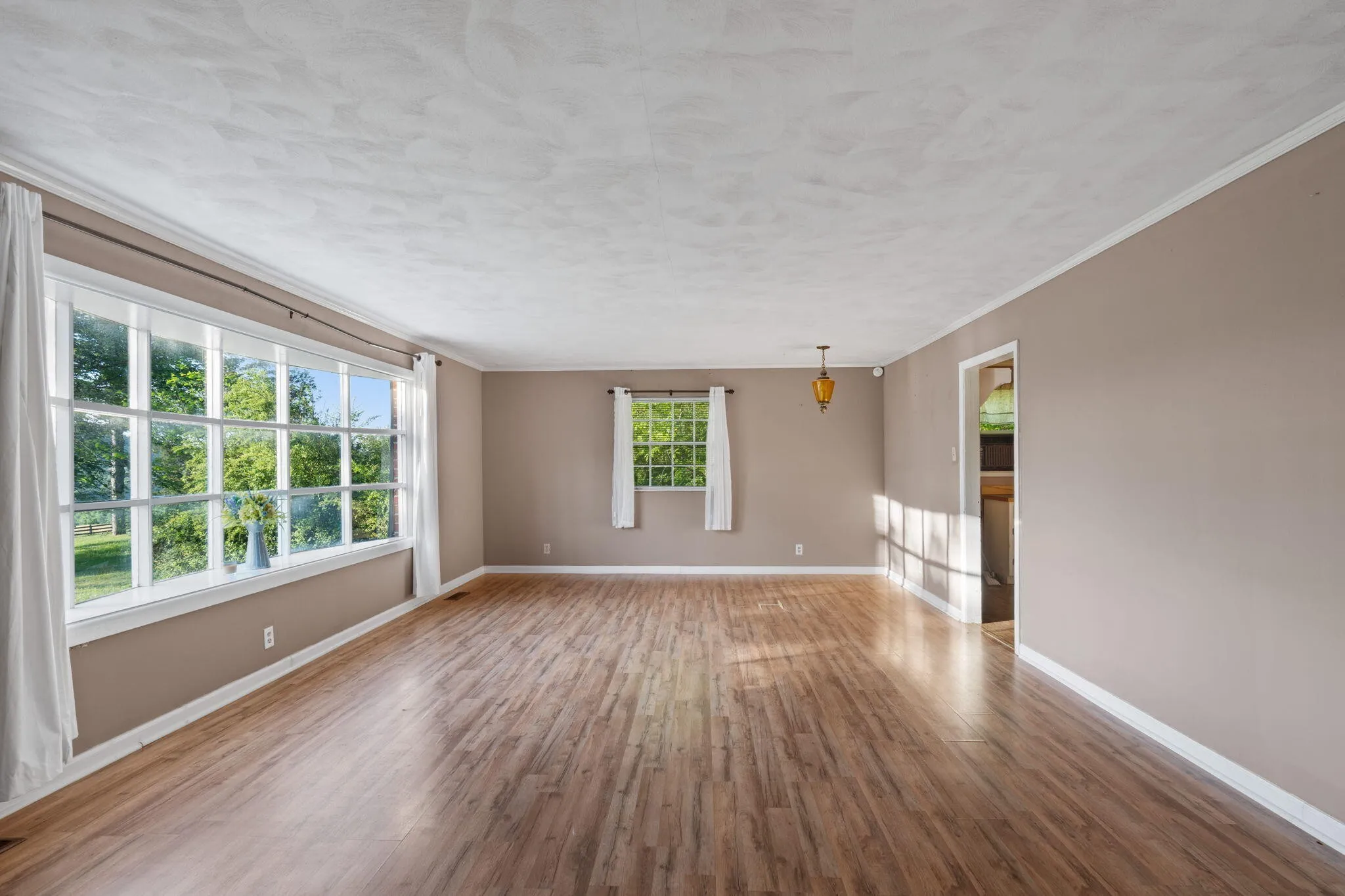 Start your mornings on the covered front porch, a classic feature that’s perfect for rocking chairs and enjoying the outdoors. At the back of the home, a rear sunroom provides valuable bonus space–ideal for a second living area, home office, playroom, home gym, hobby room, or simply a peaceful spot to read and unwind with views of the property.