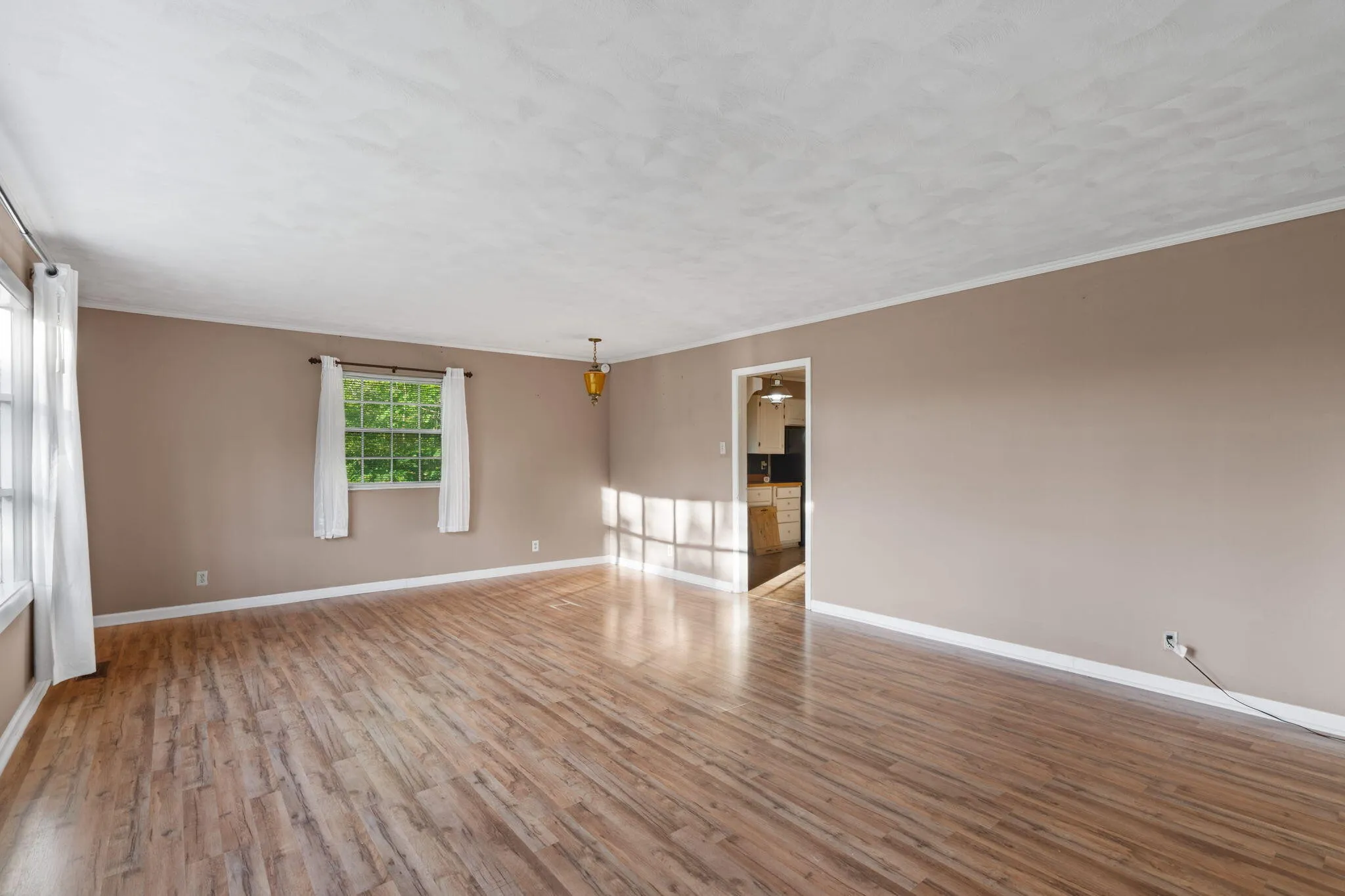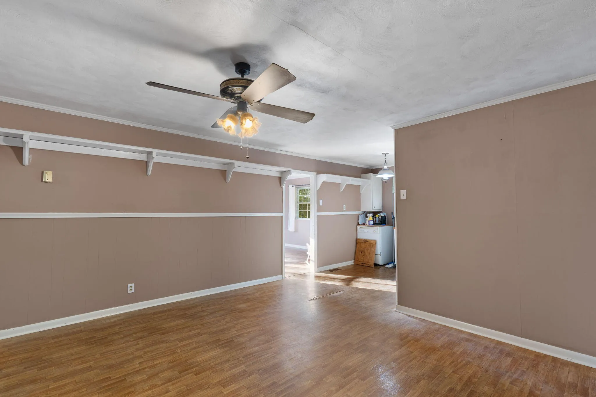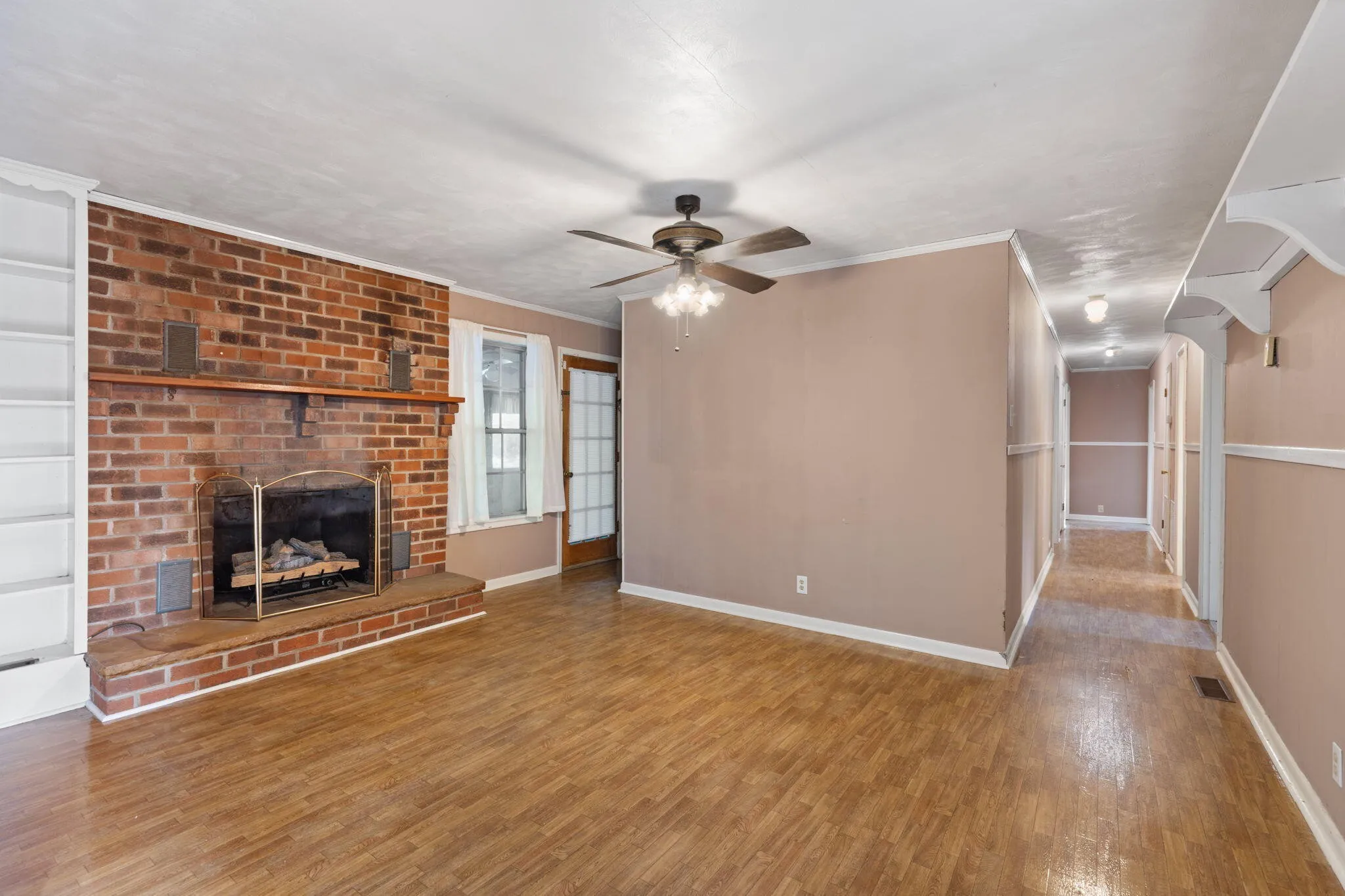 Step inside to a large living area next to the dedicated dining area anchored by a cozy fireplace, creating a warm focal point for gatherings, movie nights, and relaxing evenings. The layout offers flexibility for a variety of furniture arrangements and lifestyles, and the home’s natural light adds to the open, welcoming feel.