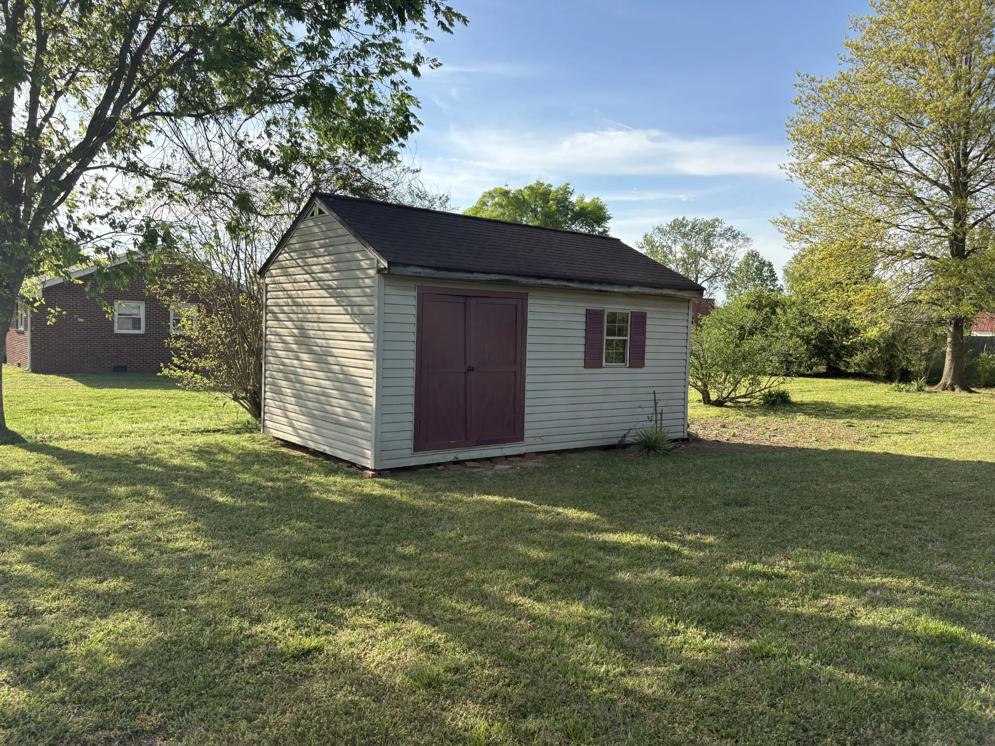 All brick one level home sitting on large corner lot in a great location. Covered attached carport. Covered back deck. Fresh paint inside. New LVP flooring in LR and hallway and new carpet in LR and bedrooms. Storage building. Ready to move into!