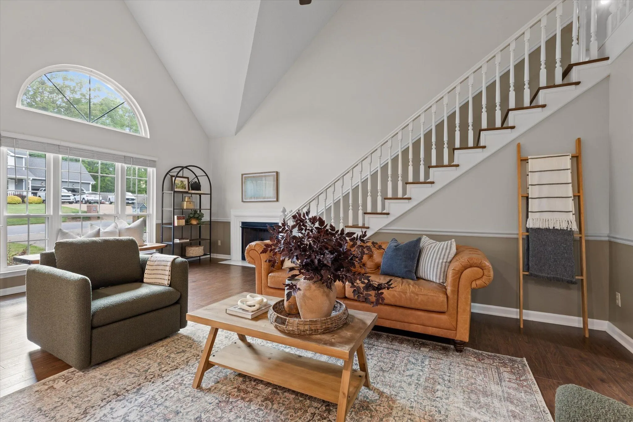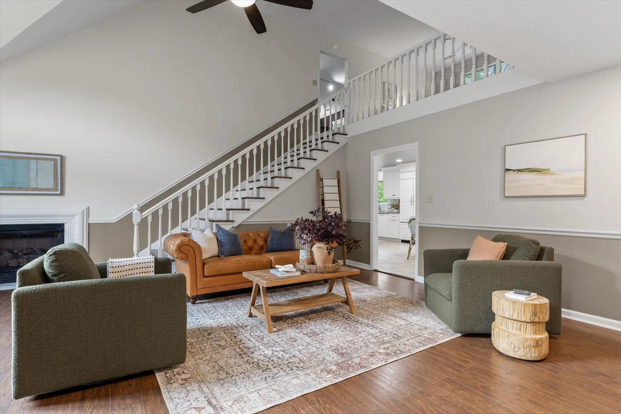 Step inside to a bright, open living room with cathedral ceilings and a gas fireplace that creates a warm and inviting space. The layout is open and comfortable, making it easy to live in and enjoy.