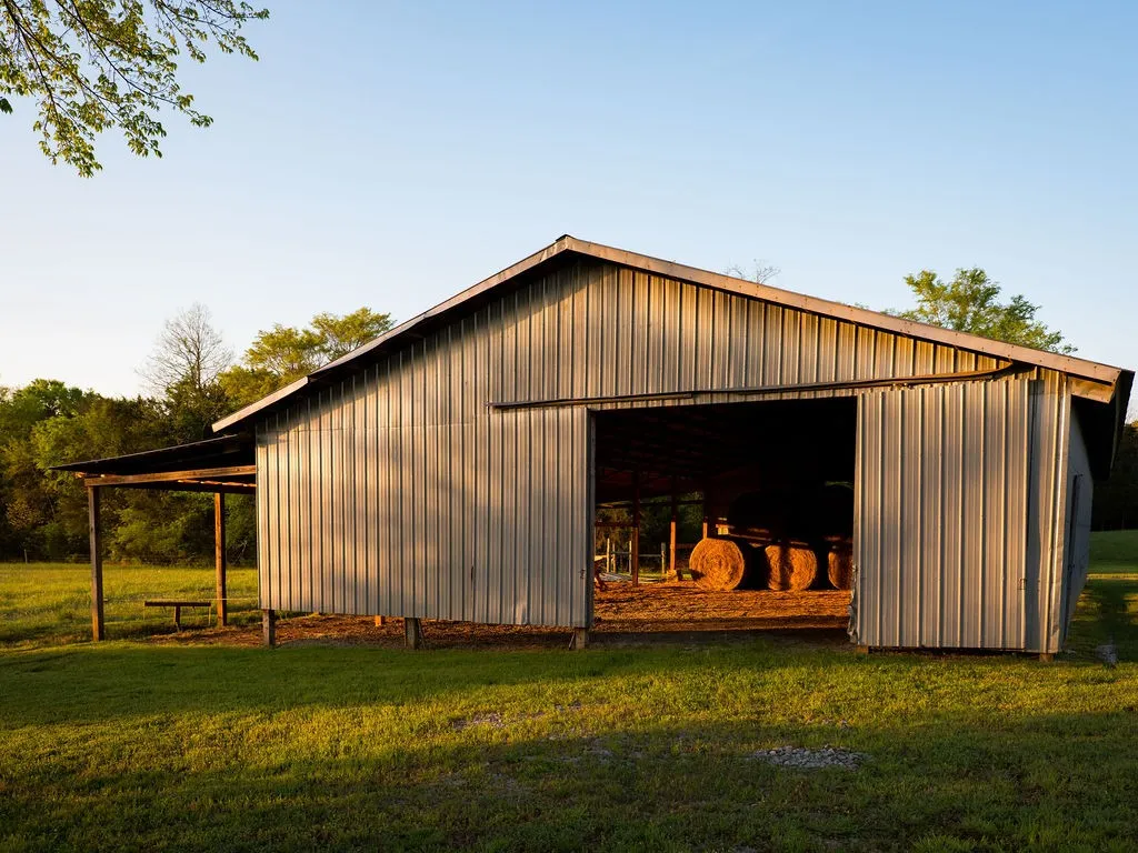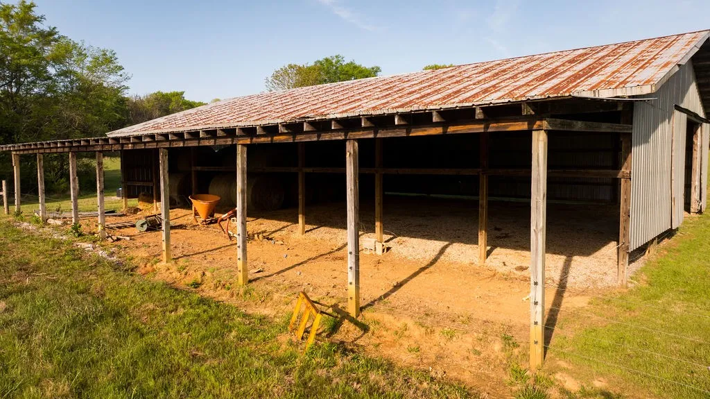 The property also features a pond, mature oak trees, and several ideal build sites for a dream home, estate, or barndominium. An old equipment shop and two barns are also in place for hay, storage, or farming operations.