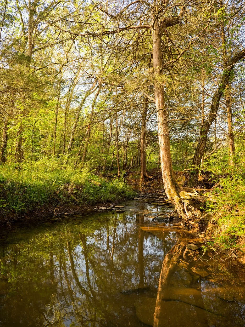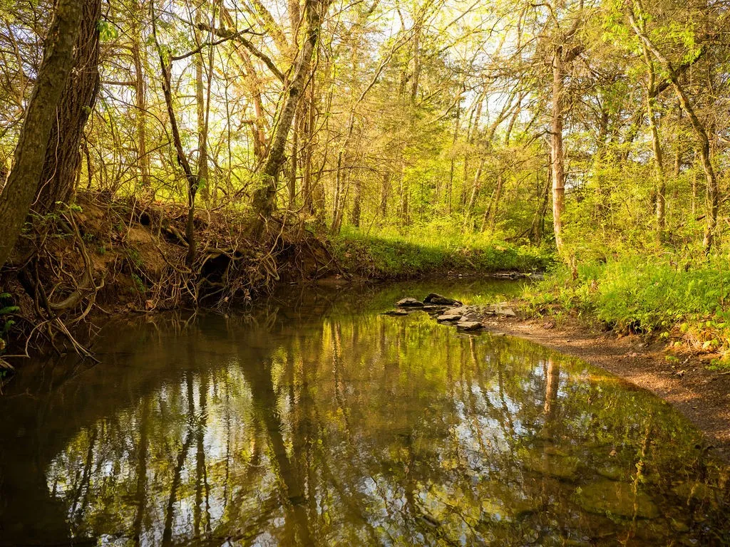 Little Sinking Creek runs through the property with over 2,000 feet of frontage, providing a reliable year-round water source and enhancing the natural beauty of the farm. An established gravel road system and multiple gated entrances provide easy access throughout.