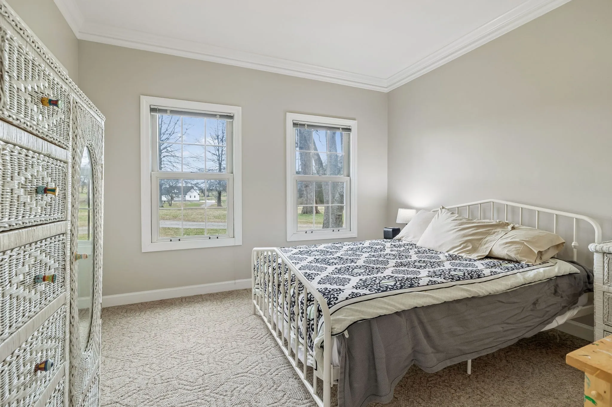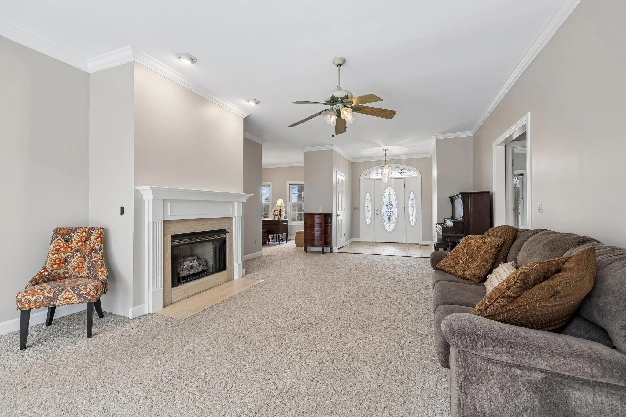 Up to $5,000 in incentives with preferred lender!* Spacious all-brick family home offering over 3,700 sq ft of living space, privately situated on a park-like lot set off the road with a long driveway for added privacy and curb appeal. This property features 3 bedrooms, 3.5 baths, a large bonus room, plus an upstairs flex room with two walk-in closets, ideal for a 4th bedroom, home office, or additional living space. A brand-new HVAC system has just been installed, and the interior has been professionally painted throughout most of the home. The kitchen is designed for both everyday living and entertaining with an abundance of cabinetry, bar seating, and built-in booth/bench seating. The living room showcases floor-to-ceiling windows that fill the space with natural light, along with a fireplace, crown molding, and quality finishes throughout. A desirable split-floor plan offers privacy along with generous storage space throughout the home. The oversized utility room is exceptionally functional, featuring space large enough for multiple hampers, a utility sink, a built-in ironing board for added convenience, and an additional storage closet with deep freezer. Situated on 5.01 acres with room to roam, this property offers privacy, space, and flexibility in a peaceful setting—plus the added charm of enjoying scenic views of neighboring horses grazing nearby—perfect for buyers seeking tranquility.