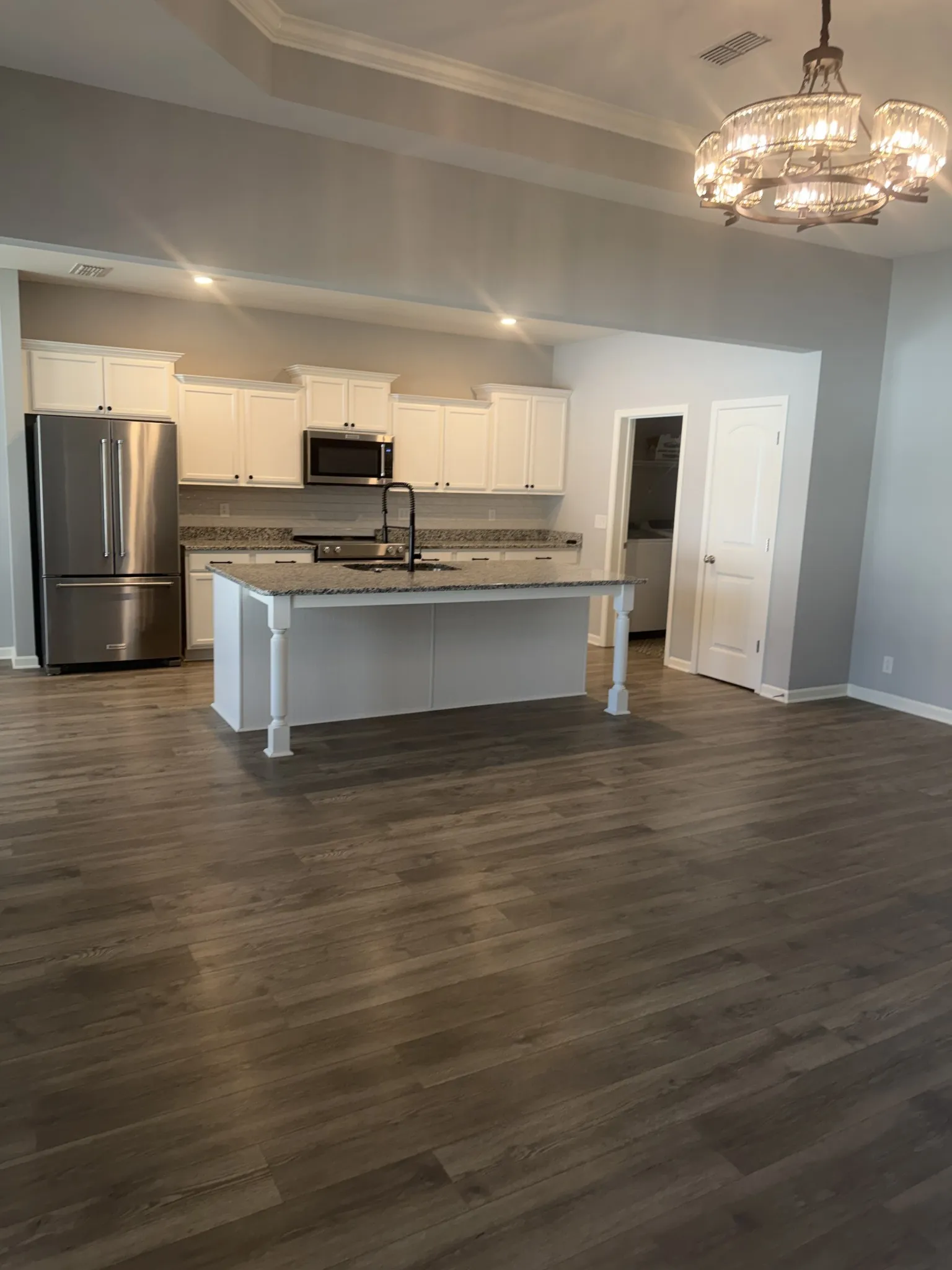 This stunning home features a spacious open floor plan with beautiful LVP flooring throughout the entire first floor. The eat-in kitchen is a standout, boasting granite countertops, a stylish tile backsplash, a large island, large pantry with Premium stainless steel appliances.