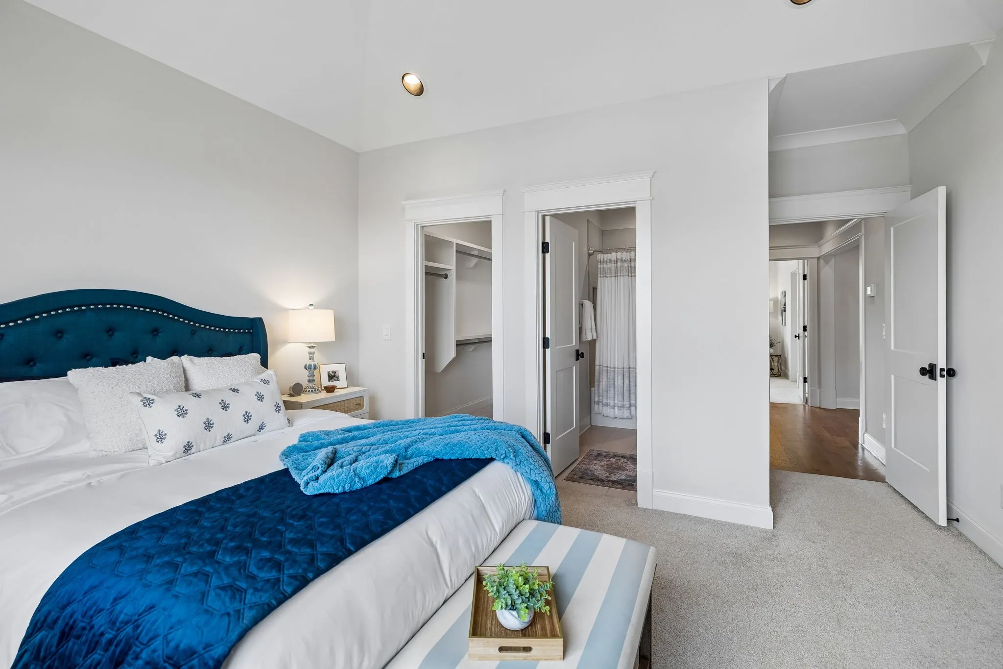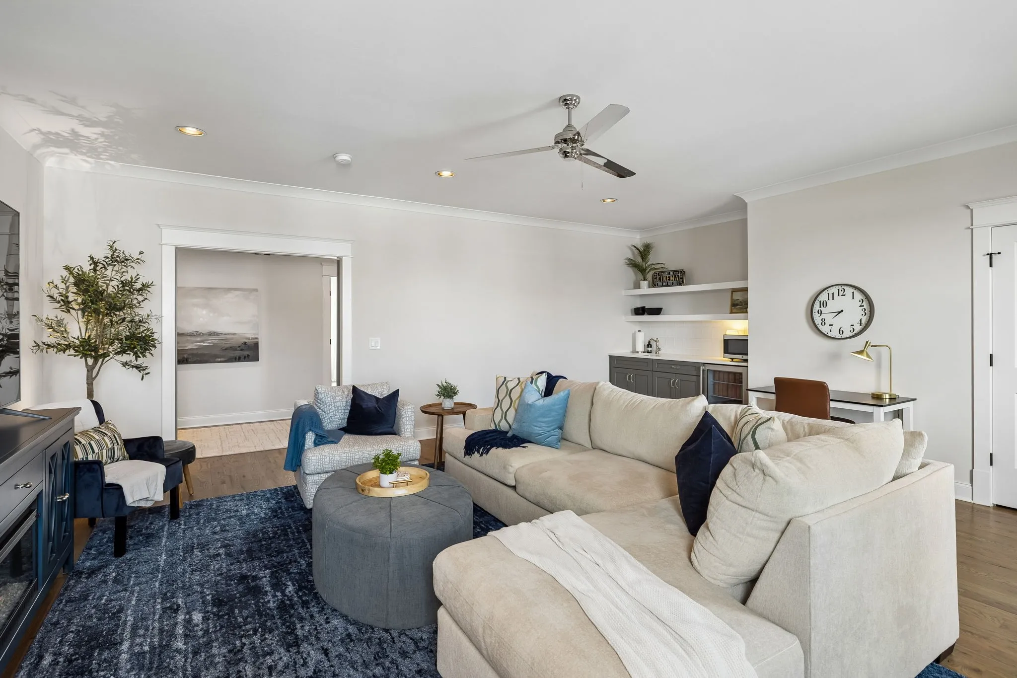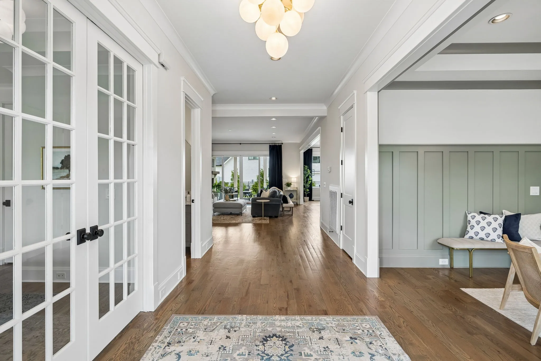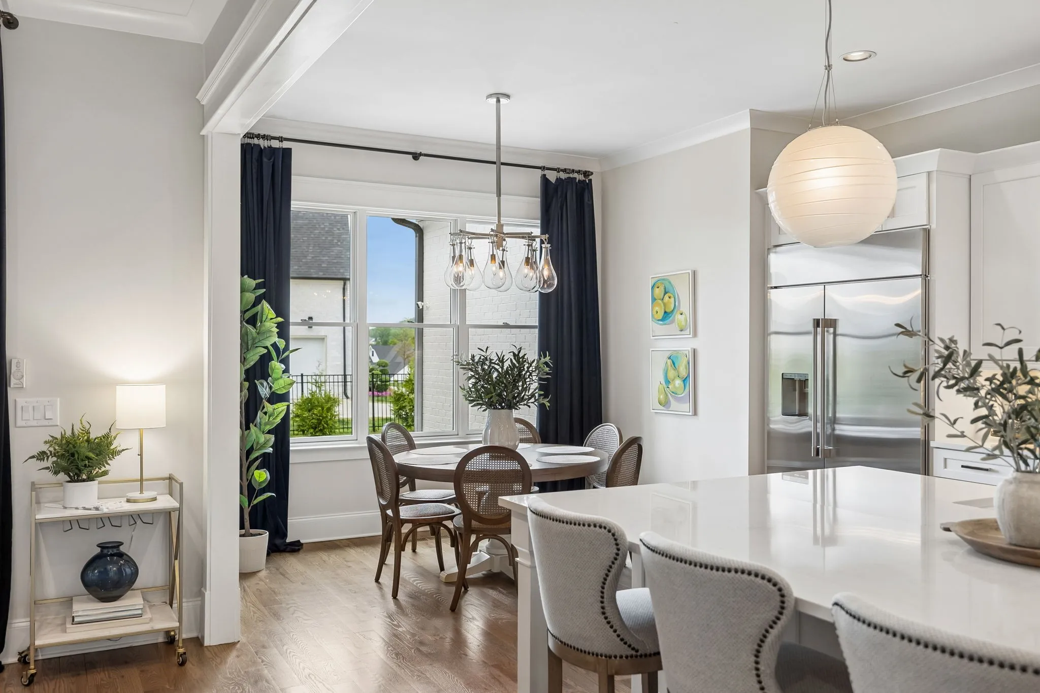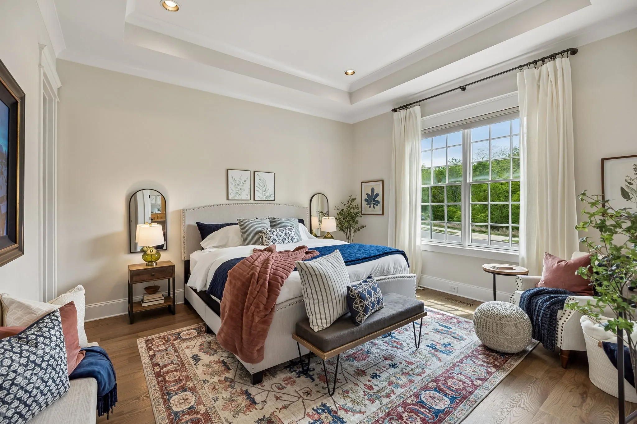 Beautiful 5 bed, 5.5 bath home on a corner lot in the desirable Traditions neighborhood. Built in 2020, this home offers an open, functional layout with great natural light, high ceilings, and hardwoods throughout. Main level includes a dedicated office with glass doors, formal dining, and two bedrooms including the primary suite. Kitchen features white cabinetry, quartz countertops, stainless appliances, a large island, and a walk-in pantry, opening directly to the living area with built-ins and fireplace. Upstairs offers a large bonus room and three additional bedrooms, each with its own en-suite bath. Covered back patio with wood ceiling and fireplace overlooks a fully fenced yard, providing a great space for entertaining or everyday use. Additional features include a 3 car garage, conditioned crawl space, irrigation system, and numerous upgrades throughout. Convenient Brentwood location with easy access to schools, shopping, and dining.
