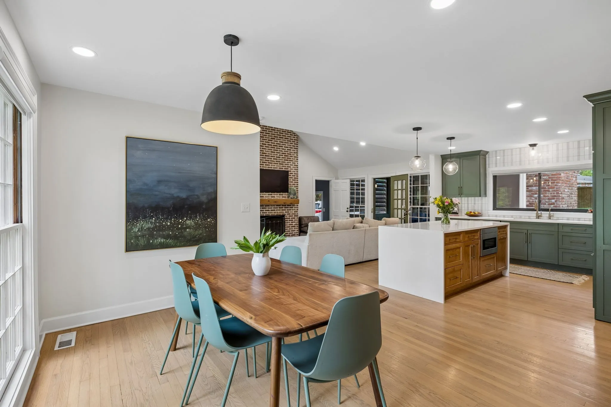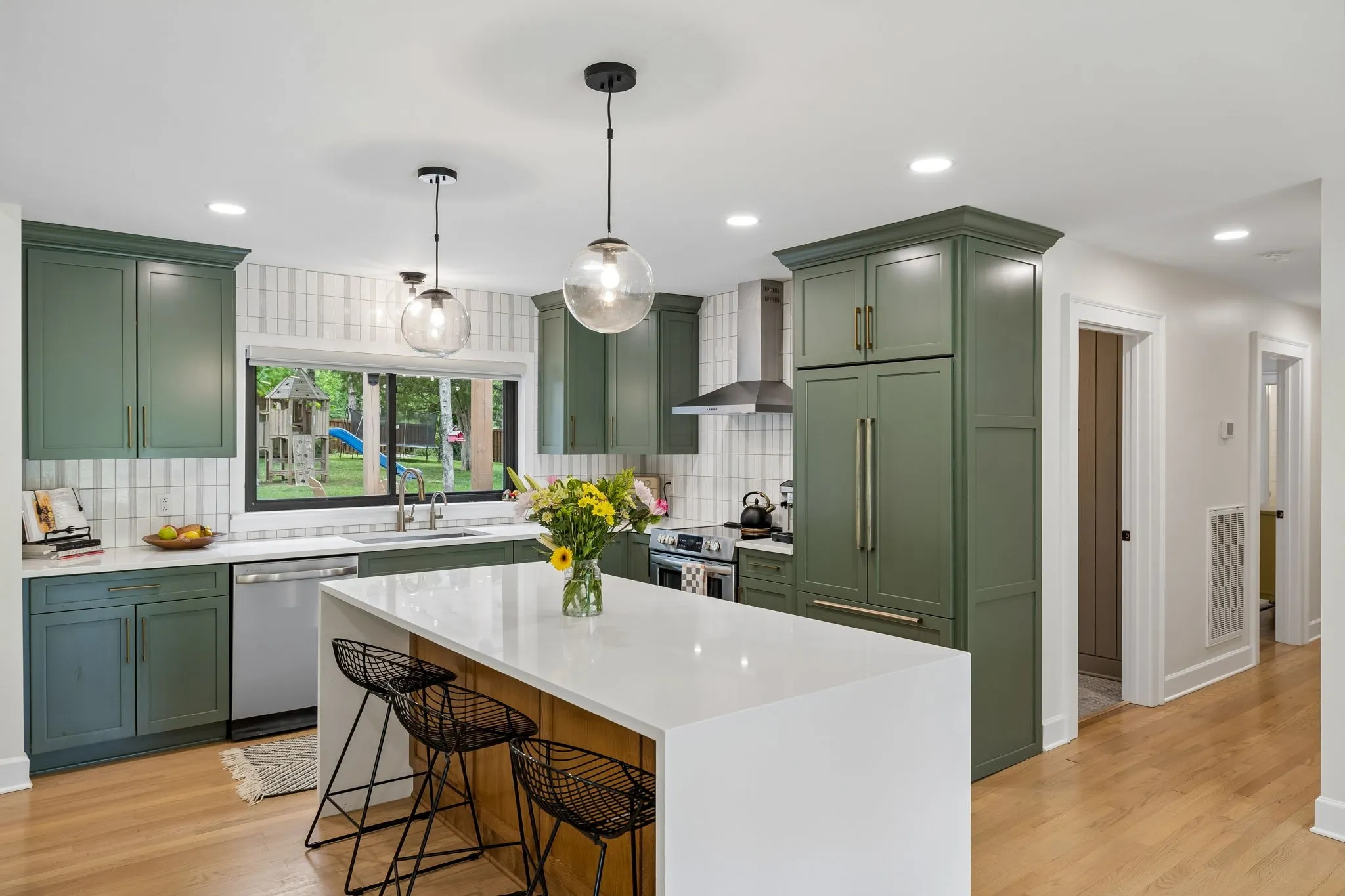 *Open House Cancelled* Stunningly renovated ranch home in a quiet Inglewood neighborhood! Offers an exceptional blend of quality craftsmanship, space, and convenience – just minutes from downtown Nashville. Zoned for Dan Mills Elementary! Fully renovated in 2023 by the seller (a licensed General Contractor), this 4 bed/3.5 bath (2,928 sq ft) home showcases thoughtful and stylish upgrades throughout. Situated on Lovewood Drive, one of the quietest streets in Inglewood, this location offers exceptional walkability and is very bike-friendly. The expanded floor plan offers flexibility with multiple living/entertaining spaces. The interior features premium custom built-ins, beautiful hardwoods, spacious rooms, and a warm, inviting open living area anchored by a cozy wood-burning brick fireplace. Additional front living/bonus room with ample light from the large, lovely window (with automatic shades), custom built-in bookcases, and an ornamental grey shiplap fireplace. Beautiful and statement-making primary suite features vaulted ceilings with wood beams, a walk-in shower, double vanities, and ample closet space, plus three additional bedrooms (two share a Jack-&-Jill bath). The kitchen features lovely tile backsplash, stainless steel appliances, large island, and open dining area. Enjoy seamless indoor-outdoor living with French doors opening from the main living room to the premium covered, screened-in patio with bar/drink fridge, brick fireplace, ceiling fan, TV, and gorgeous shiplap ceilings overlooking the large, level, fenced backyard, featuring a huge open patio with brick fire pit – perfect space for relaxing, playing, gardening, entertaining, or pets. Ideally located near local faves like E+ROSE, Eastside Bowl, Shotgun Willie’s BBQ, and Mitchell’s Deli, plus staples like Mr. Aaron’s Goods & Kroger. Enjoy proximity to Shelby Bottoms Greenway, Two Rivers Skatepark, Gaylord Springs Golf Links, Percy Priest Lake, and more.