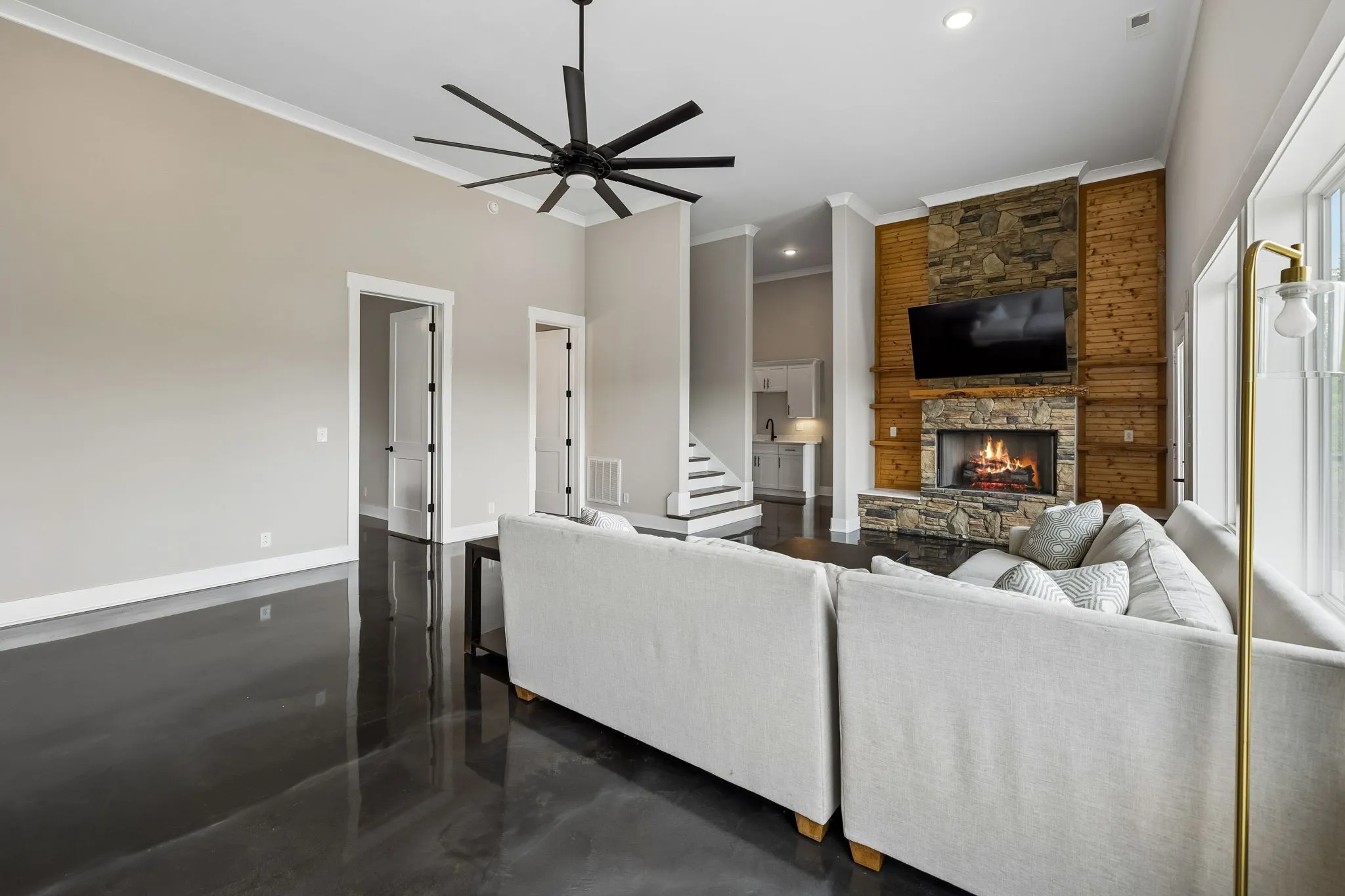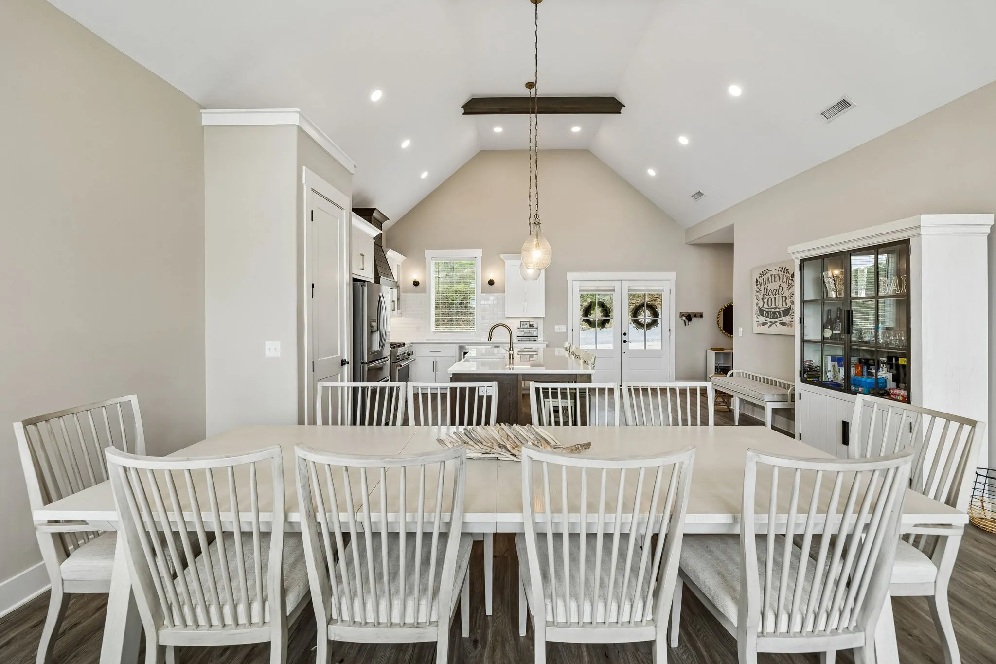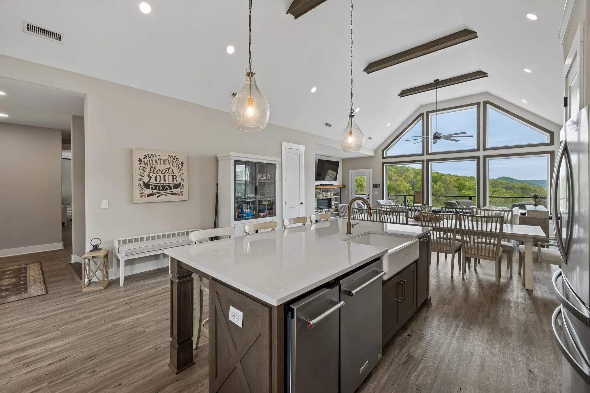 This 5 bedroom, 4.5 bath home offers two spacious living areas, two fireplaces, and a layout that balances comfort with functionality. The beautiful kitchen is equipped with stainless steel appliances, a gas stove, and an ice machine, making it easy to prep, entertain, and keep the cooler stocked for a day on the lake. The lower level is a full, finished basement designed for lake living, featuring sleek epoxy floors, a kitchenette, and generous space for gathering, hosting, or unwinding after a day on the water.
