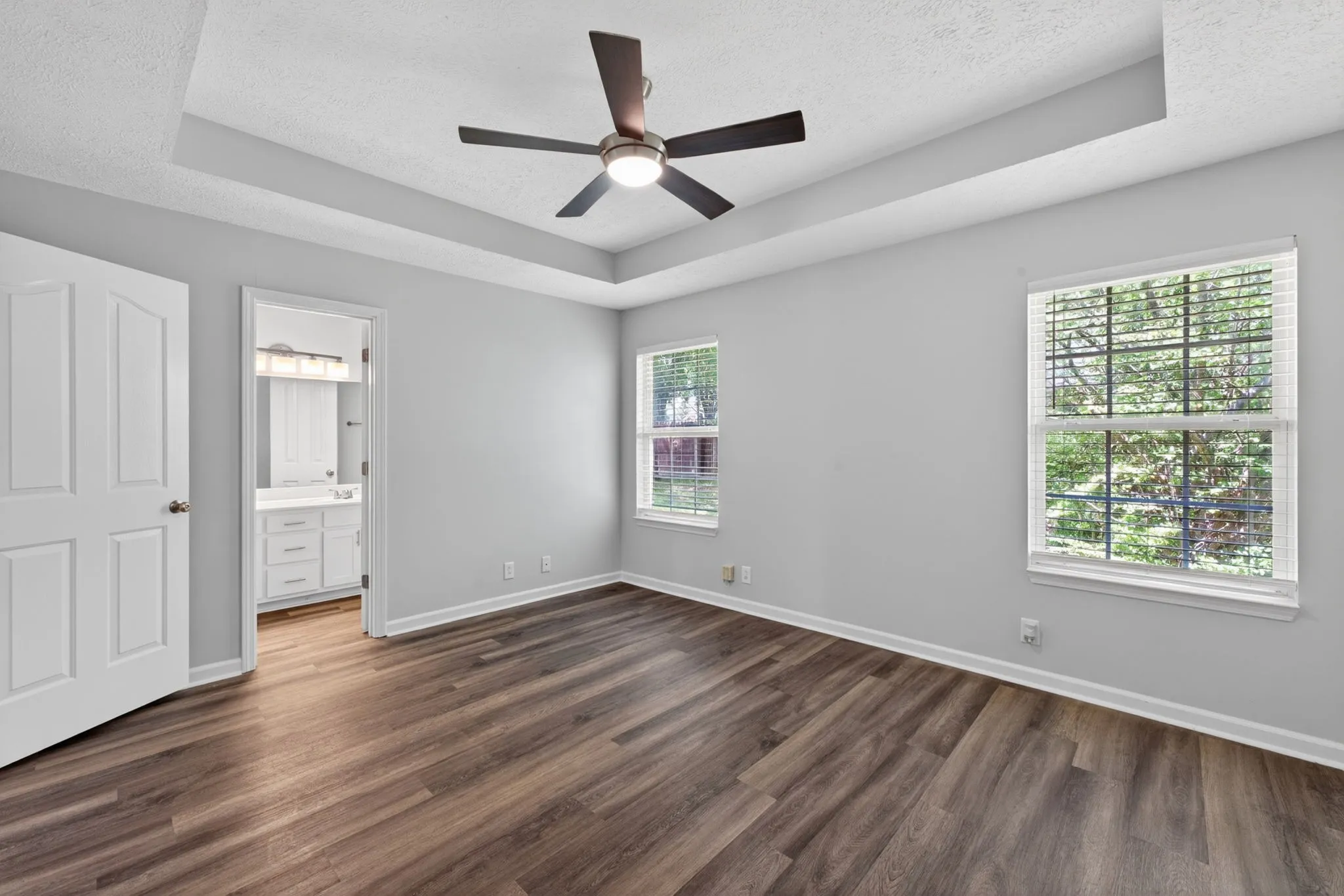 Welcome to immaculate 2914 Roscommon Drive. Ready to move-in. No carpet all wood laminate flooring, boasting a neutral color paint scheme. The primary bedroom features a spacious walk-in closet. The primary bathroom is designed with double sinks, ensuring convenience and functionality. Step outside to the inviting back patio, perfect for enjoying a peaceful day or a relaxing evening. The interior of the home has been recently refreshed with new paint, new cabinet doors enhancing its appeal. This home is a perfect blend of style and comfort, waiting for you to make it your own. Located near I-24, schools, shopping and complete w/2 car garage.