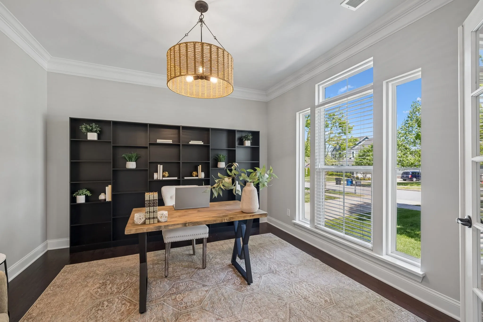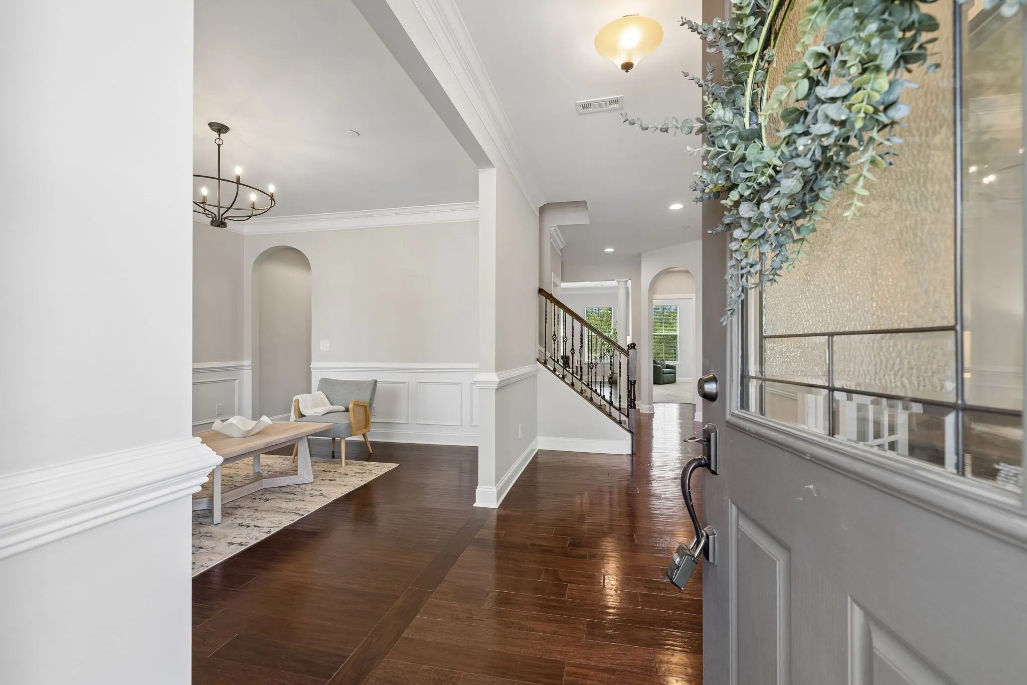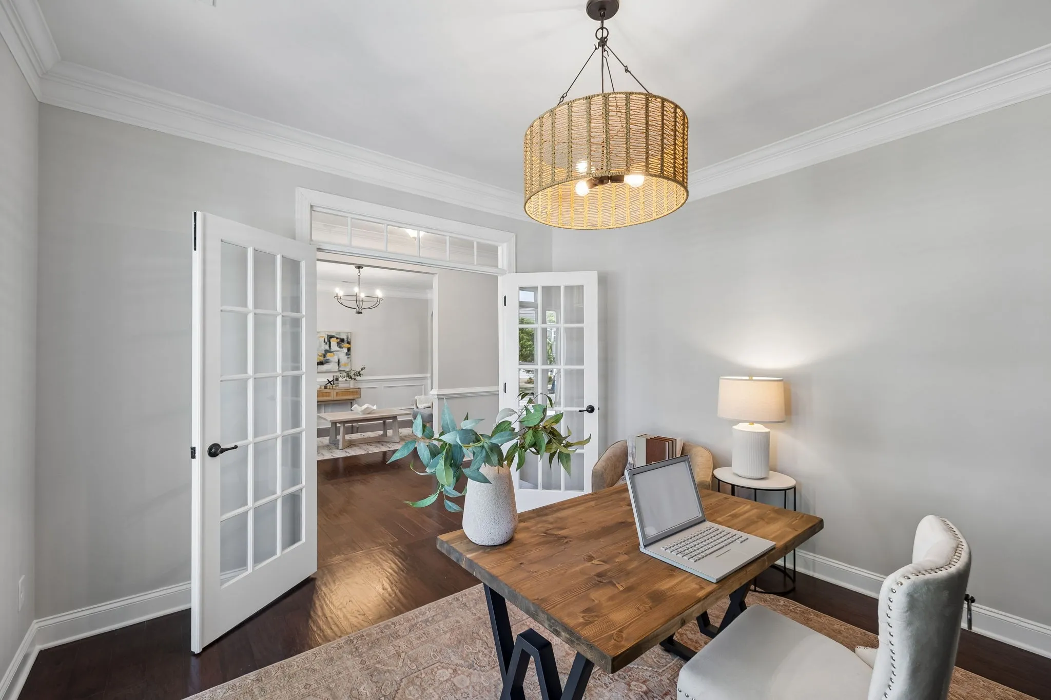 From the charming covered front porch, step inside to a welcoming foyer with hardwood floors and detailed trim. The main level is designed for everyday living and special gatherings, featuring a formal dining room (perfect for holidays or homework overflow), a private office with French doors for work-from-home days, and an open-concept family room that keeps everyone connected.
