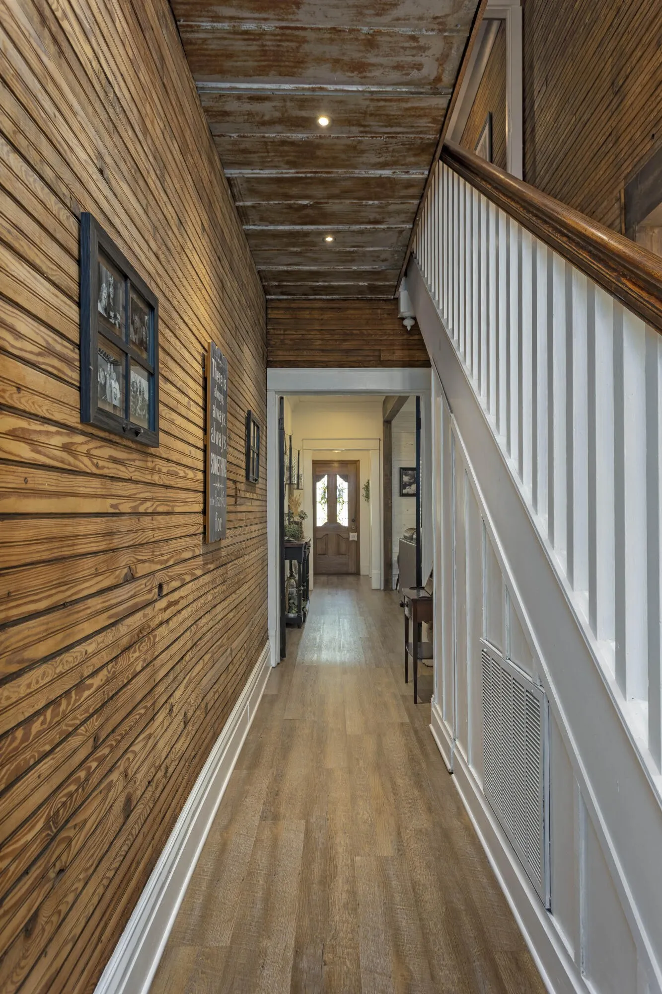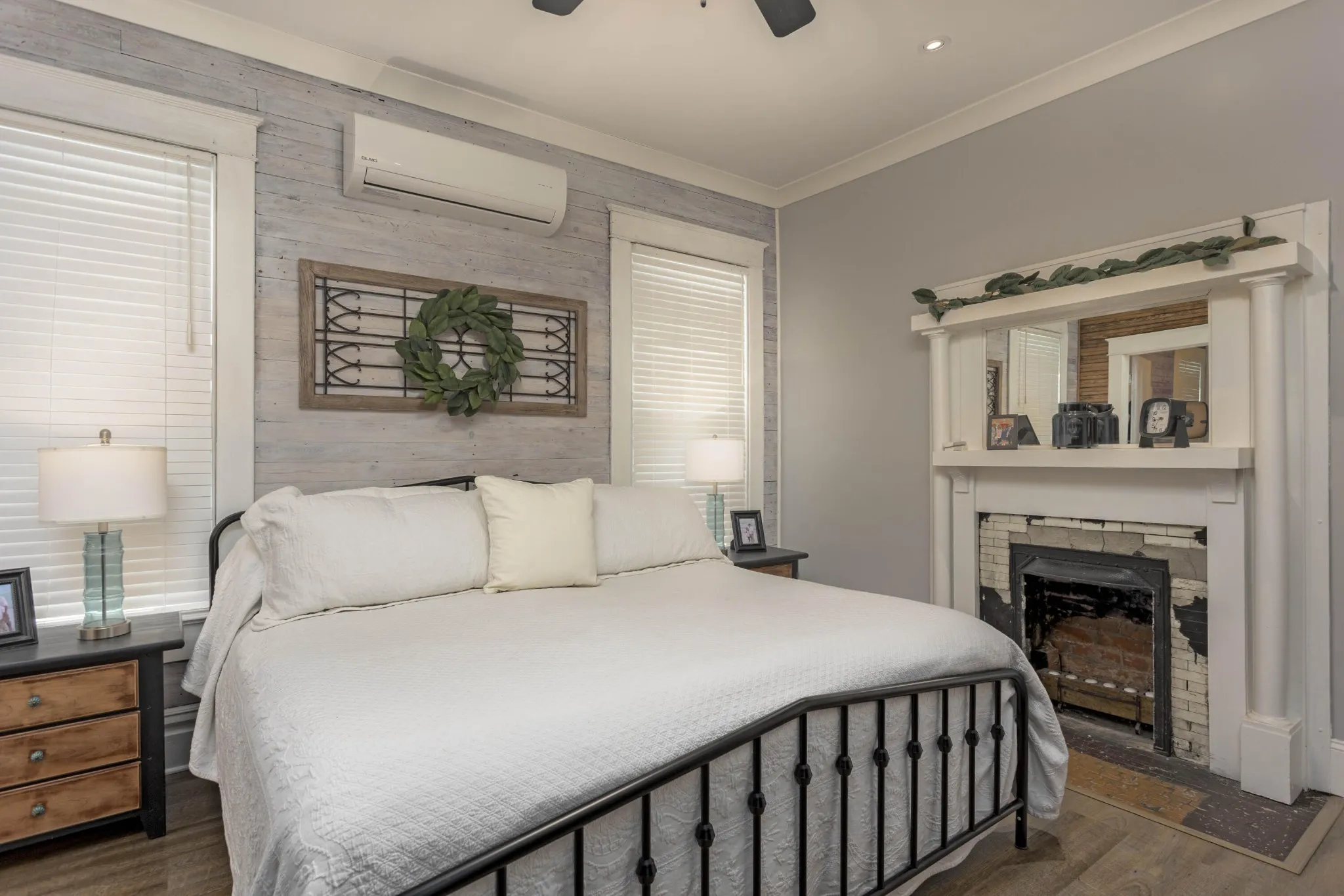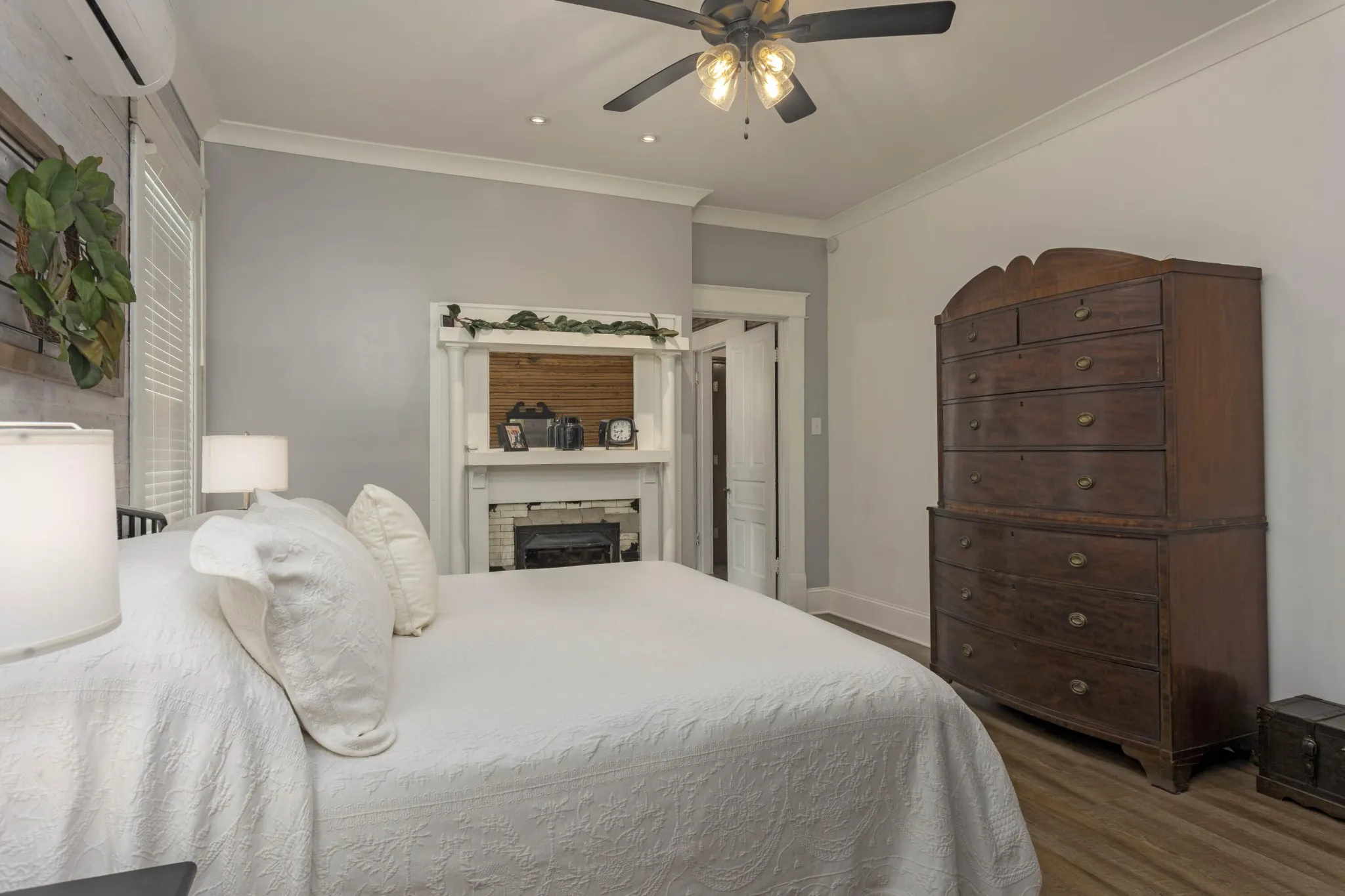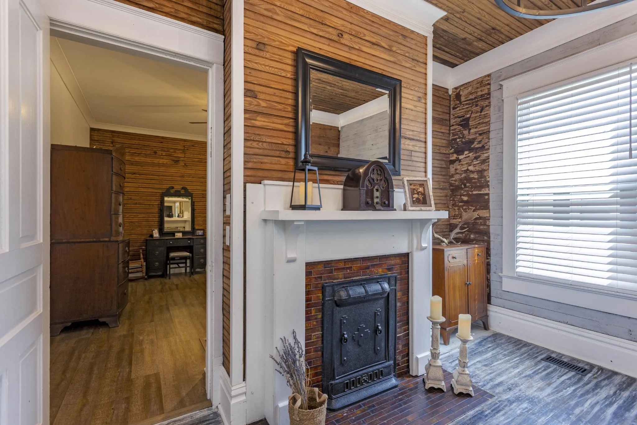 Retreat to the luxurious primary suite, complete with its own cozy fireplace and an ensuite bath boasting a double vanity and an oversized tiled shower. A charming office with an additional fireplace sits nearby, perfect for remote work or curling up with a good book. Guests will appreciate the main floor bathroom showcasing a stunning clawfoot tub and a large laundry room for added convenience. Upstairs, you’ll find three generous bedrooms, two with original hardwood floors, and an updated full bath featuring a modern walk-in shower. Ample storage is available throughout the upper level. Recent updates include modern plumbing and electrical systems, along with 4 energy-efficient mini splits and a cozy gas fireplace in the living room. This home preserves its historic allure with original tongue-and-groove walls and ceilings, century-old mantel fireplaces, beautiful beams, and refinished hardwood floors from 1913, all while offering contemporary comforts. Enjoy your morning coffee on the spacious front porch overlooking a gorgeous dogwood tree and relax in the backyard under two majestic 100-year-old pecan trees that yield a harvest every other year. Situated in the heart of downtown Dayton, this home is conveniently located near walking trails, pickleball courts, shopping, and dining. Don’t miss the chance to own a piece of history with modern updates!