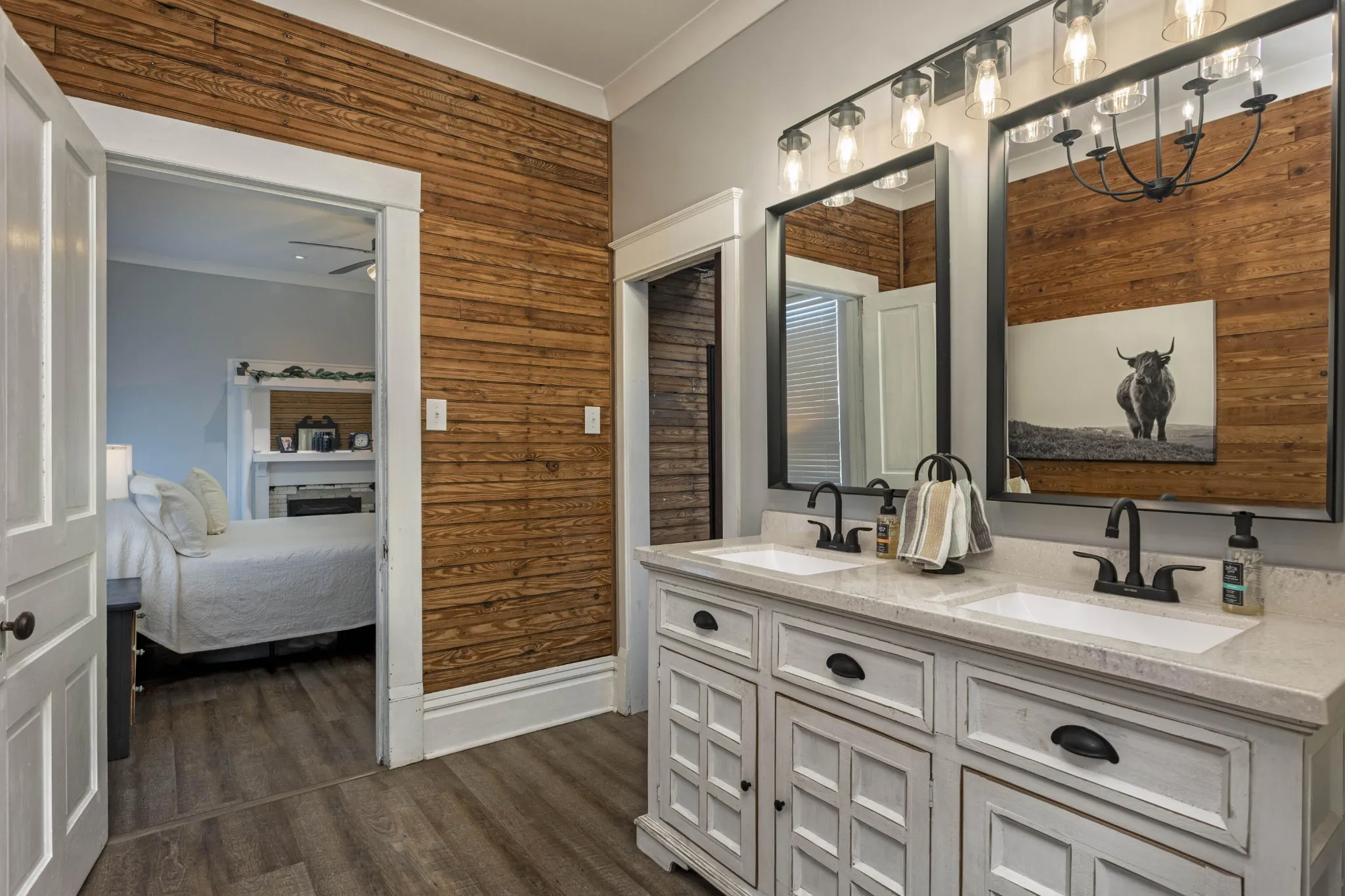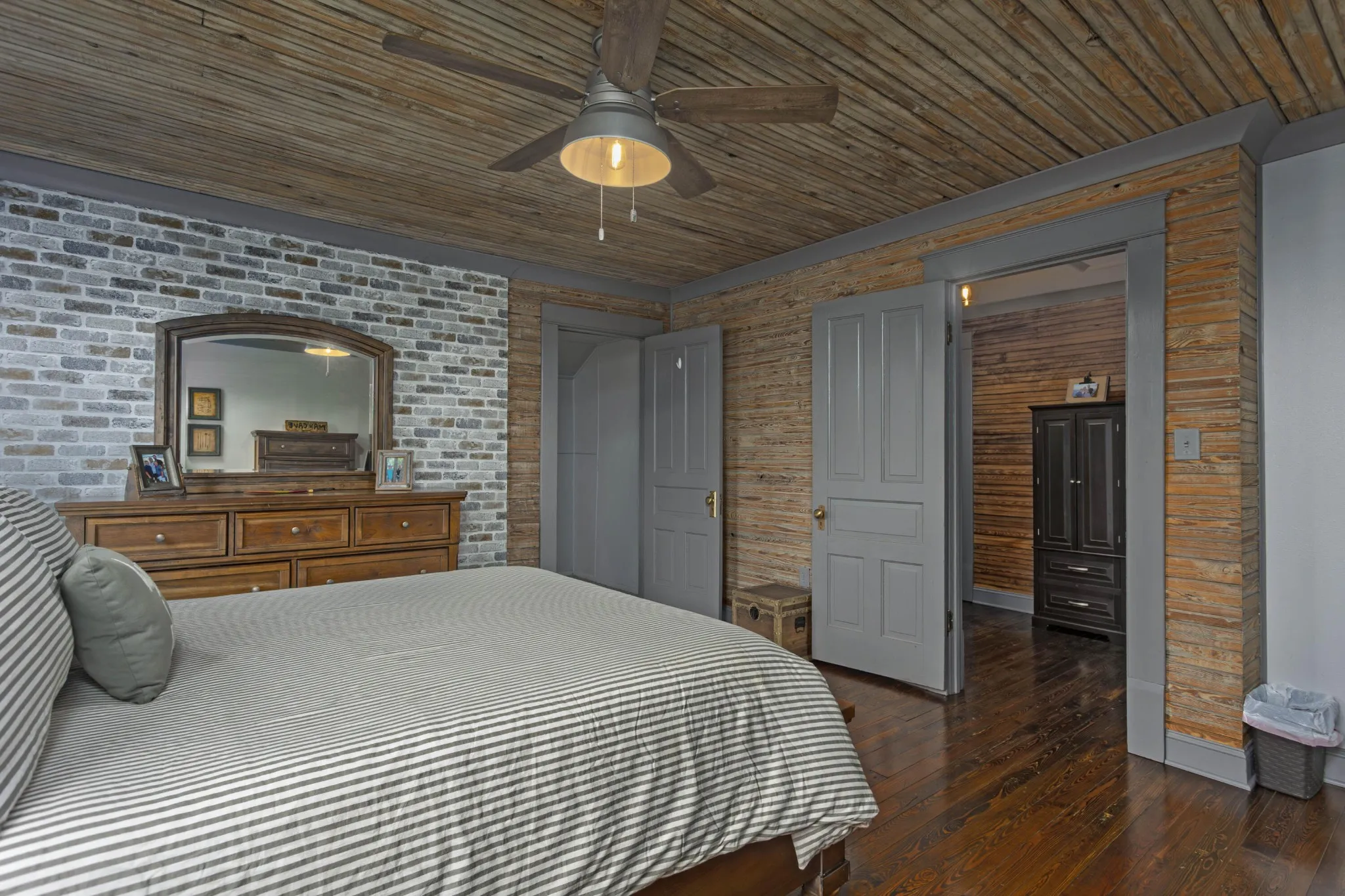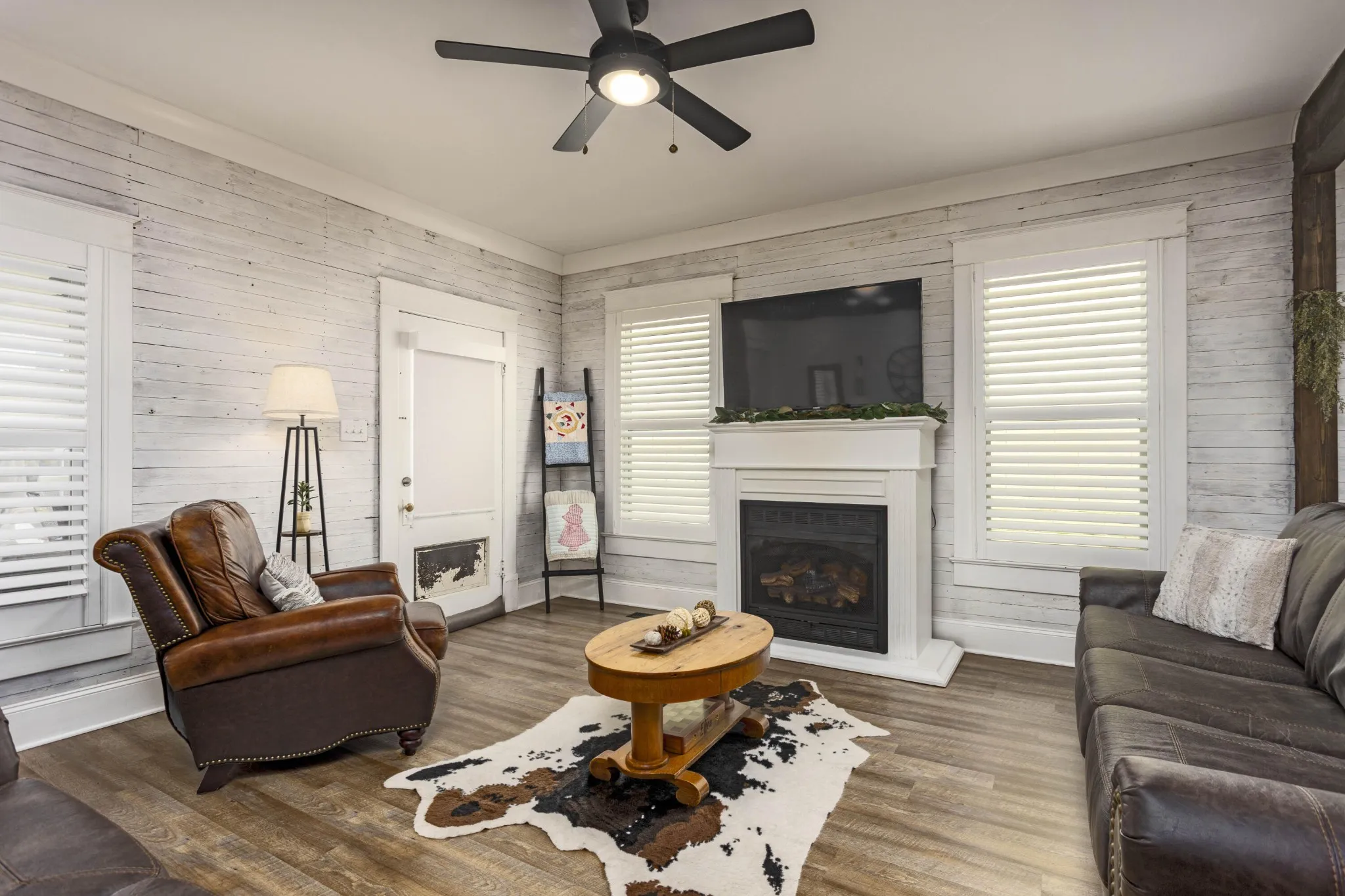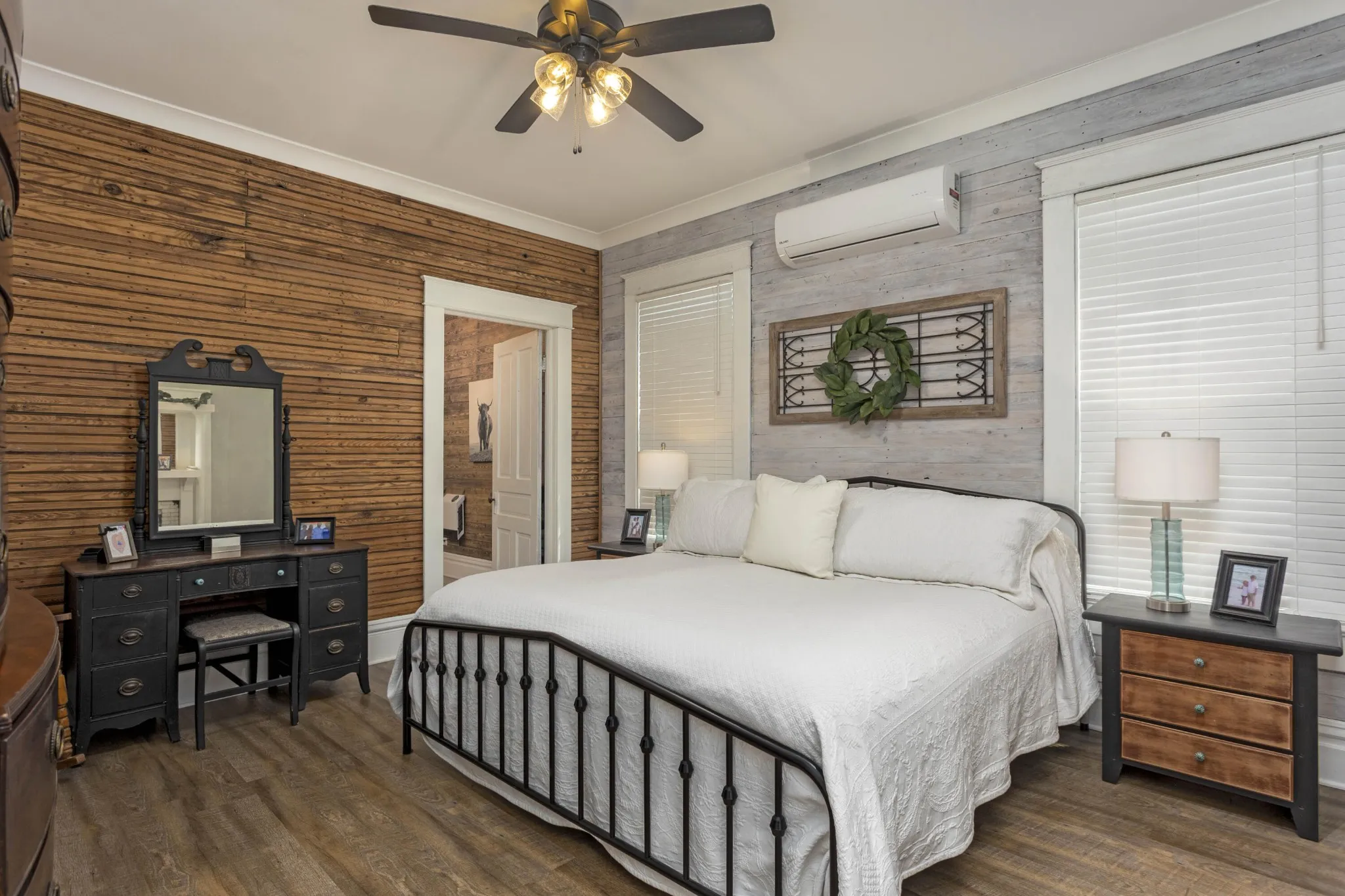 Retreat to the luxurious primary suite, complete with its own cozy fireplace and an ensuite bath boasting a double vanity and an oversized tiled shower. A charming office with an additional fireplace sits nearby, perfect for remote work or curling up with a good book. Guests will appreciate the main floor bathroom showcasing a stunning clawfoot tub and a large laundry room for added convenience. Upstairs, you’ll find three generous bedrooms, two with original hardwood floors, and an updated full bath featuring a modern walk-in shower. Ample storage is available throughout the upper level. Recent updates include modern plumbing and electrical systems, along with 4 energy-efficient mini splits and a cozy gas fireplace in the living room. This home preserves its historic allure with original tongue-and-groove walls and ceilings, century-old mantel fireplaces, beautiful beams, and refinished hardwood floors from 1913, all while offering contemporary comforts. Enjoy your morning coffee on the spacious front porch overlooking a gorgeous dogwood tree and relax in the backyard under two majestic 100-year-old pecan trees that yield a harvest every other year. Situated in the heart of downtown Dayton, this home is conveniently located near walking trails, pickleball courts, shopping, and dining. Don’t miss the chance to own a piece of history with modern updates!