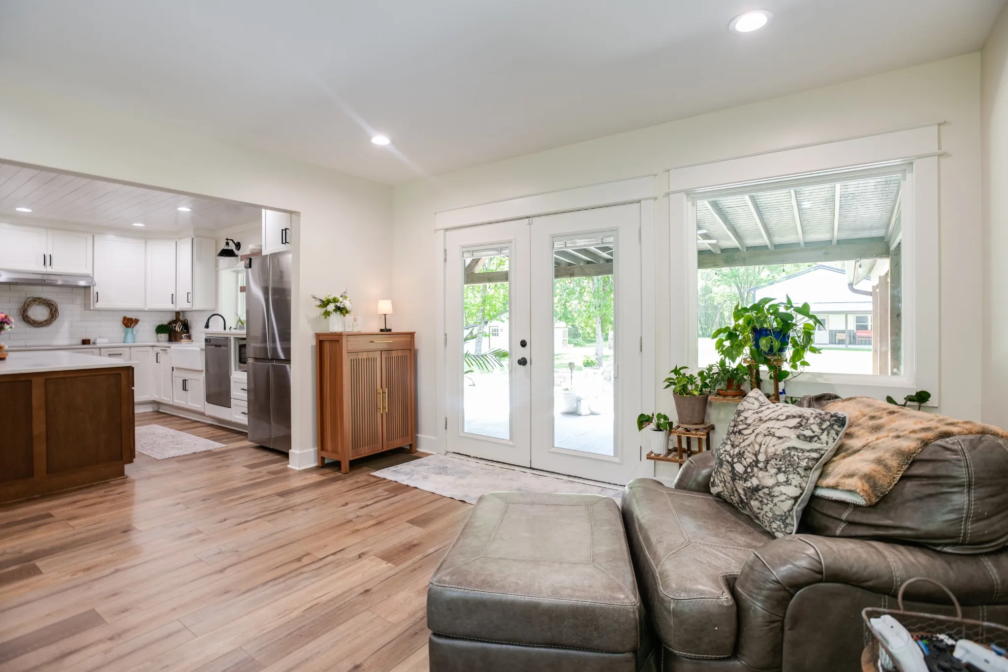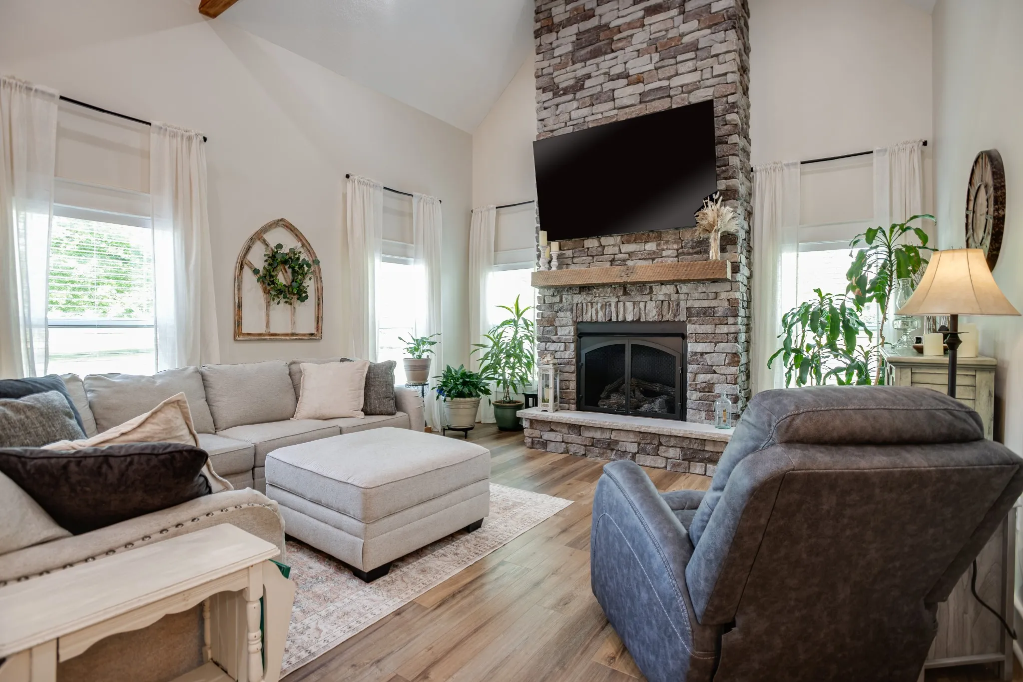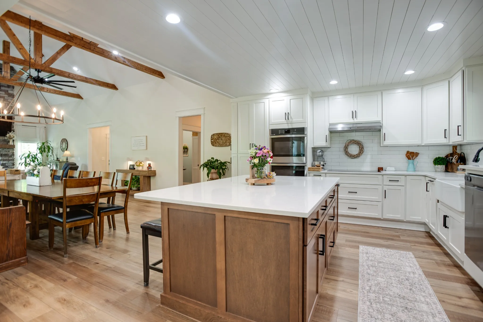 Reimagined from top to bottom in 2022, this property delivers the feel of new construction with the character and space today’s buyers are searching for. Inside, a dramatic 16-foot vaulted ceiling with exposed wood beams anchors the open-concept living area, creating a light-filled space ideal for both everyday living and entertaining.