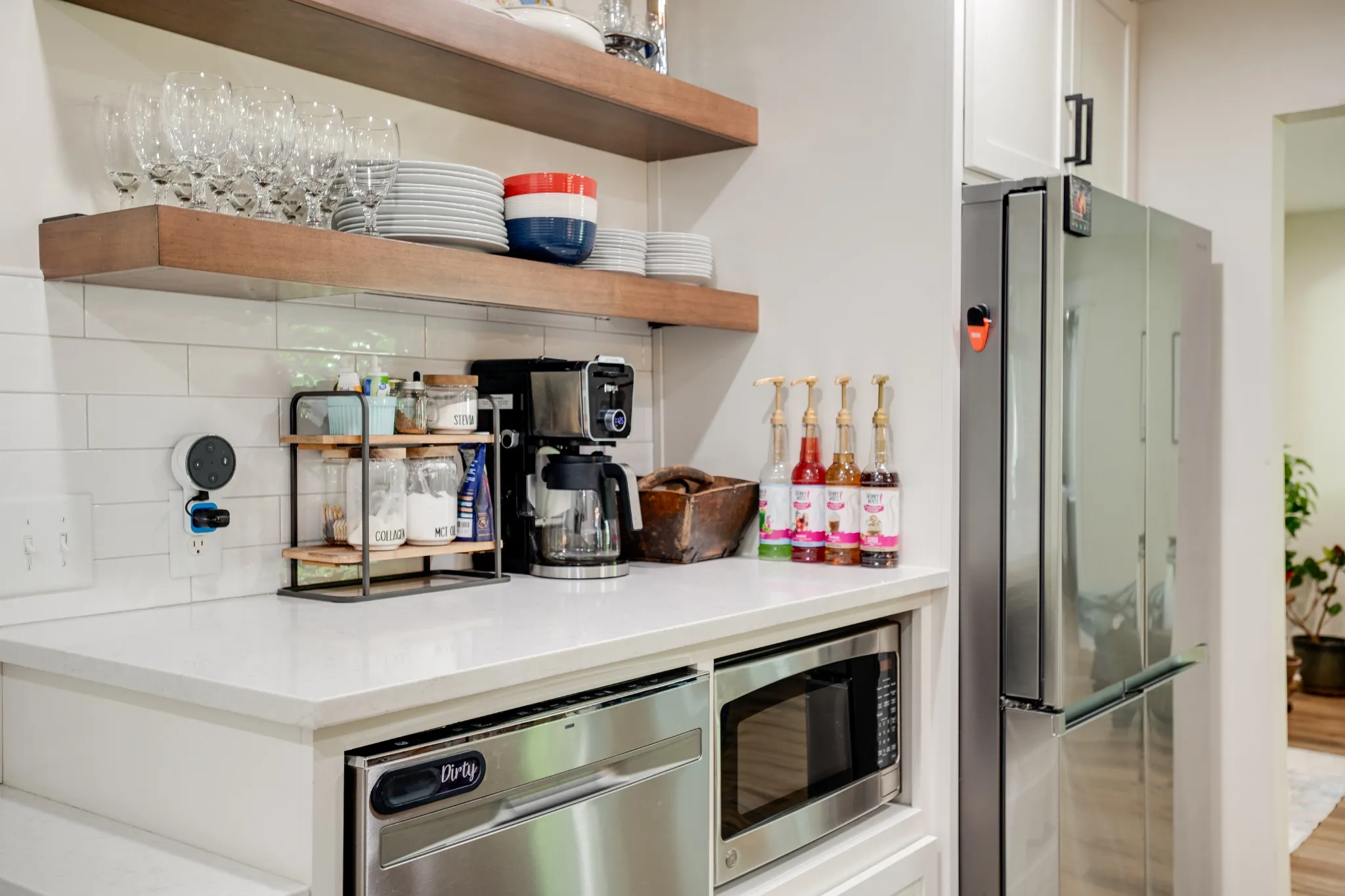 The kitchen is thoughtfully designed with custom cabinetry, quartz countertops, and stainless steel appliances, seamlessly connected to the great room and dining space. A private office with fiber internet provides a dedicated work-from-home setup without compromise.