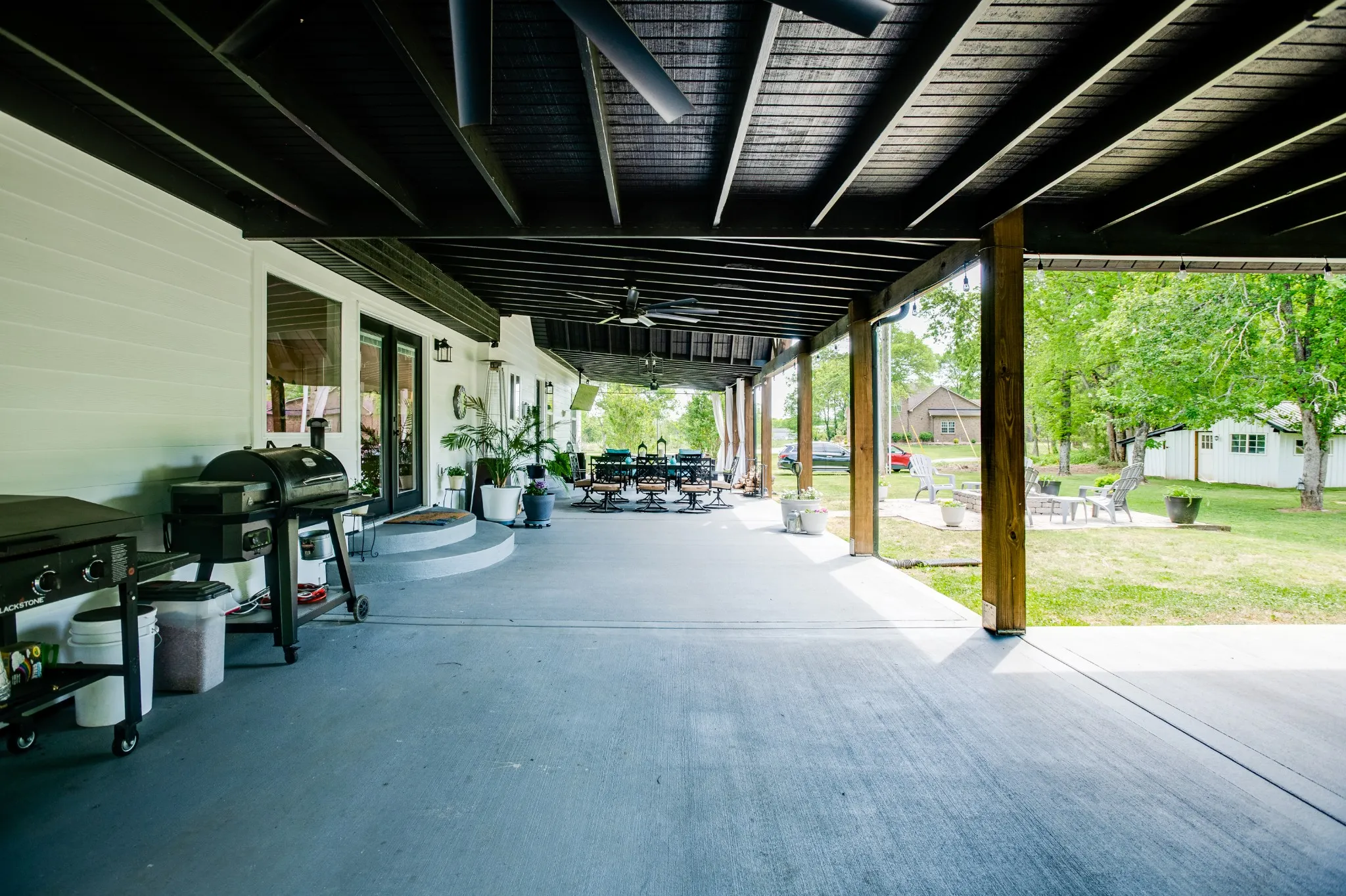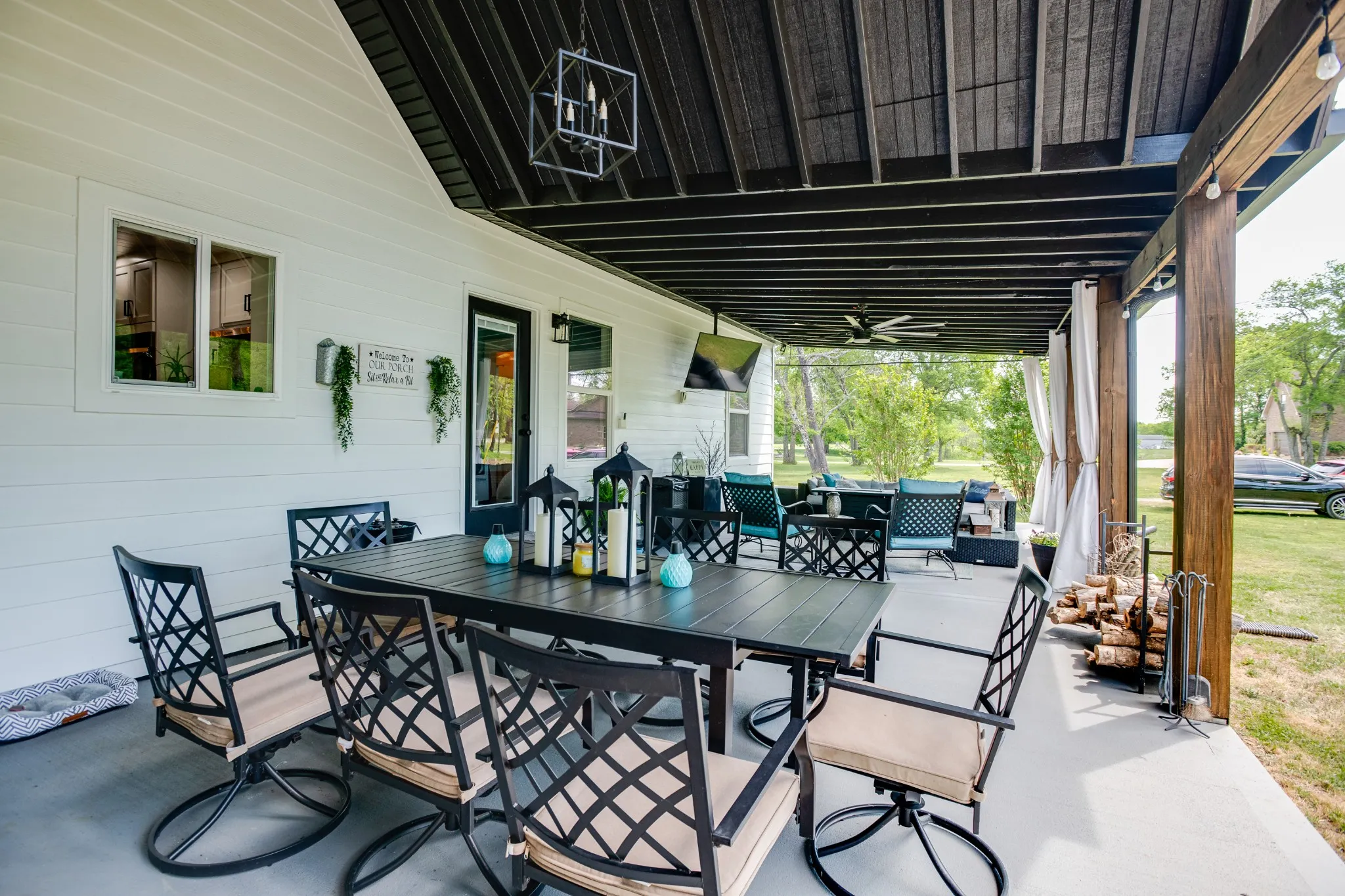 Outdoor living is just as impressive, with an expansive 56×16 covered back porch—perfect for hosting, relaxing, or enjoying evenings around the firepit.