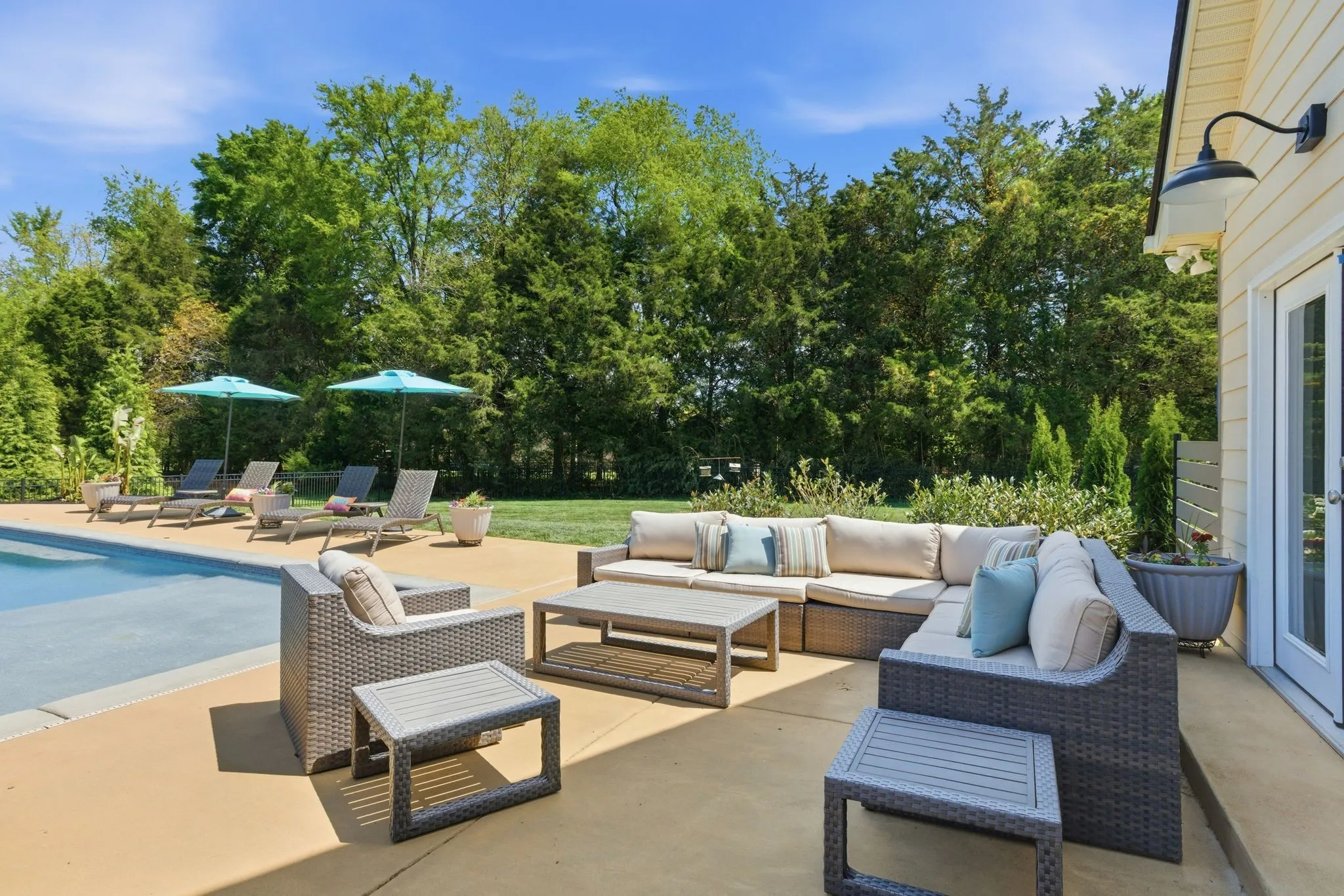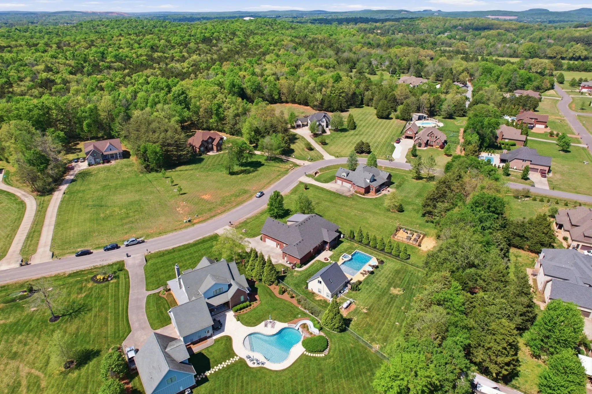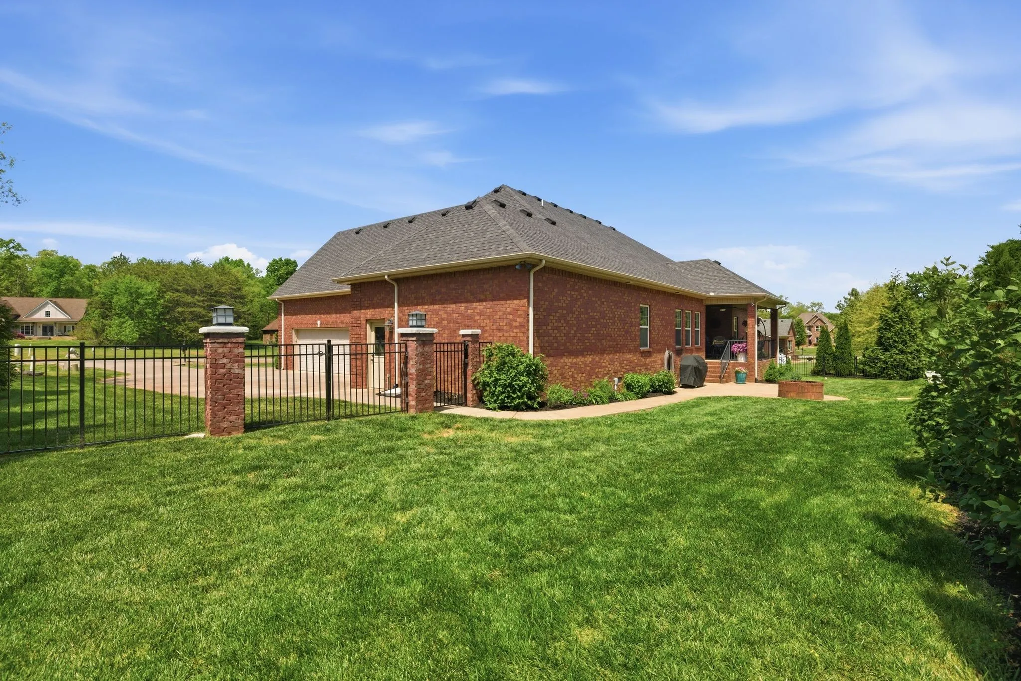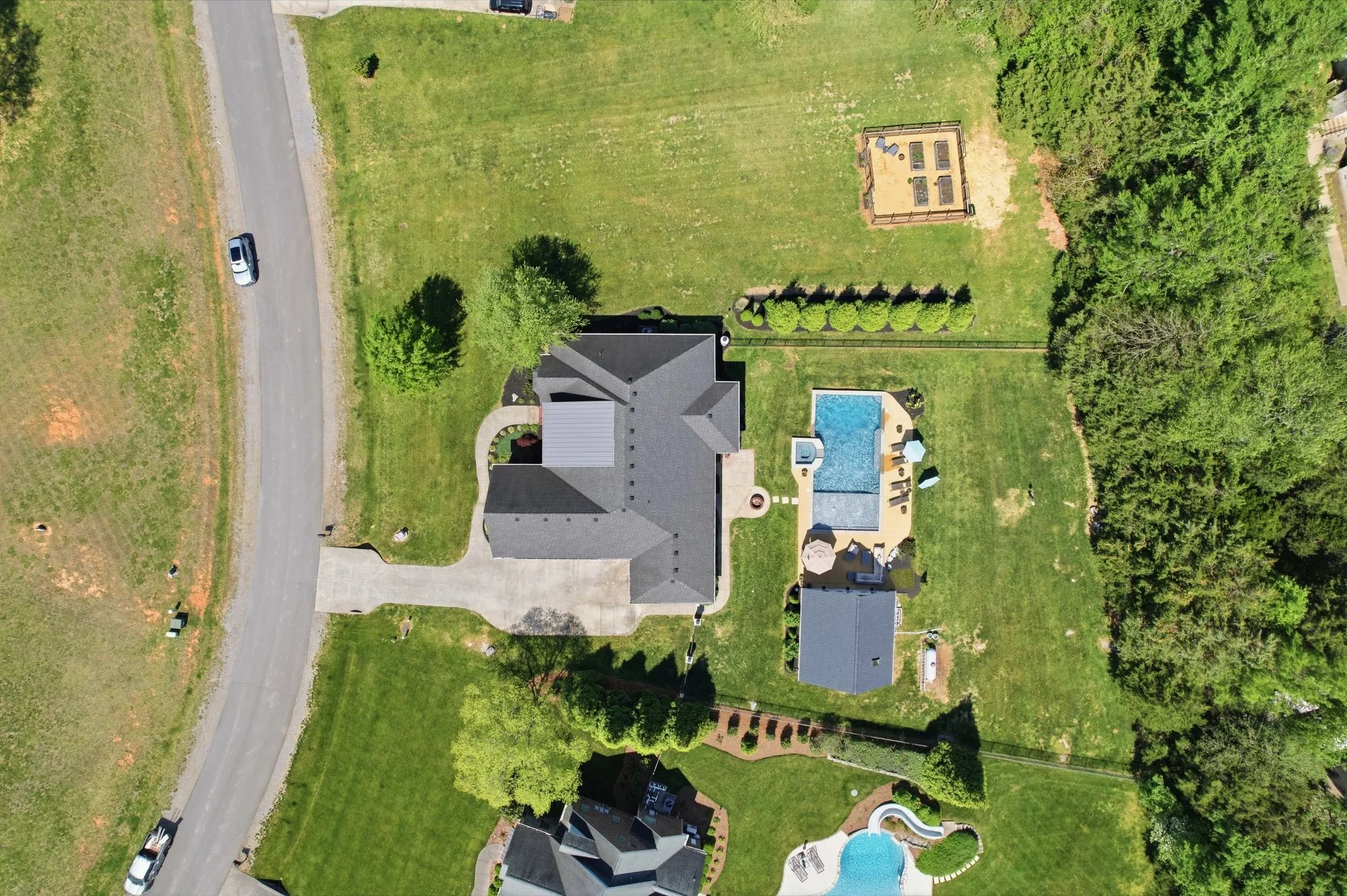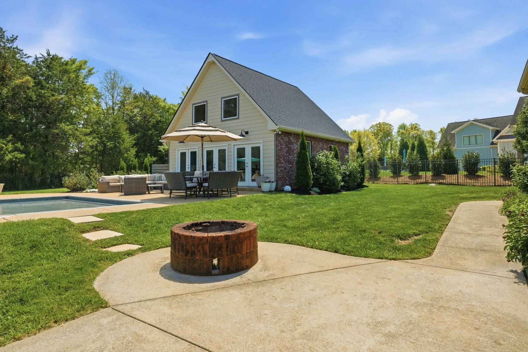 Seeing is believing! This is so true for 211 Fox Den Way. There may not be a more peaceful setting in Middle Tennessee for your new home setup for entertaining. What’s not to like…almost all one-level living, gleaming refinished hardwood flooring, brand new carpet in the secondary bedrooms and the bonus room, updated kitchen with stainless steel appliances, a fabulous and efficient open floor plan, a luxurious and spacious primary bedroom ensuite, both formal and informal dining areas, a separate office, nine-foot ceiling height on the main level and vaulted ceiling in the bonus room along with all the bells and whistles of new construction. The bonus room has a wet bar, office or exercise area and full bath. There is also a giant walk-in, unfinished attic storage space. And that is just inside! Resort-style living is at your fingertips outside…a hot tub that spills into the in-ground gunite saltwater pool with a massive baja ledge for kids and lounging. A separate pool house (estimated 750 square feet) keeps the wet kids outside and has a vaulted ceiling great room and kitchenette, bedroom, full bathroom and a loft area. Don’t forget to bring ingredients to make s’mores (and memories) around the wood-burning firepit. Be sure to schedule some “me time” to unwind while tending to the fenced garden which has raised beds. In front of the garden is a side yard large enough for any outdoor activity you could imagine. The rear covered porch allows you to start the day capturing picturesque views of the sunrise while the front covered porch allows you to finish the day soaking in views of the sunset. All the while a mature tree line and professionally designed landscaping offers privacy to enjoy your space! Two separate garages combine to provide parking for three vehicles. All of this is on a dead-end street. Of course, everything Murfreesboro has to offer is only ten minutes away. With an appropriate offer, appliances and some furnishings can be conveyed with the sale.