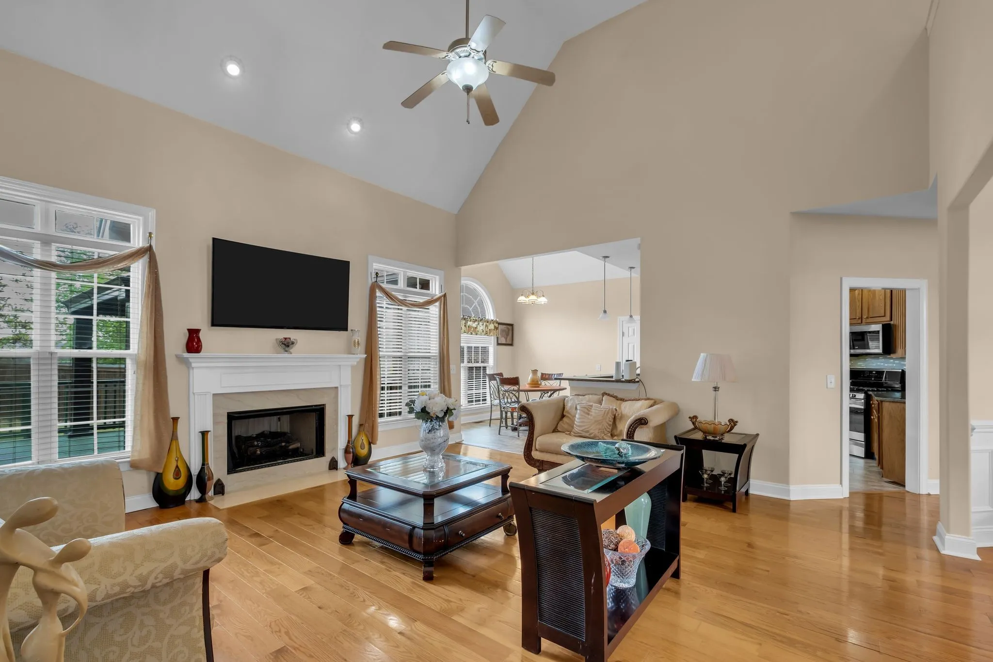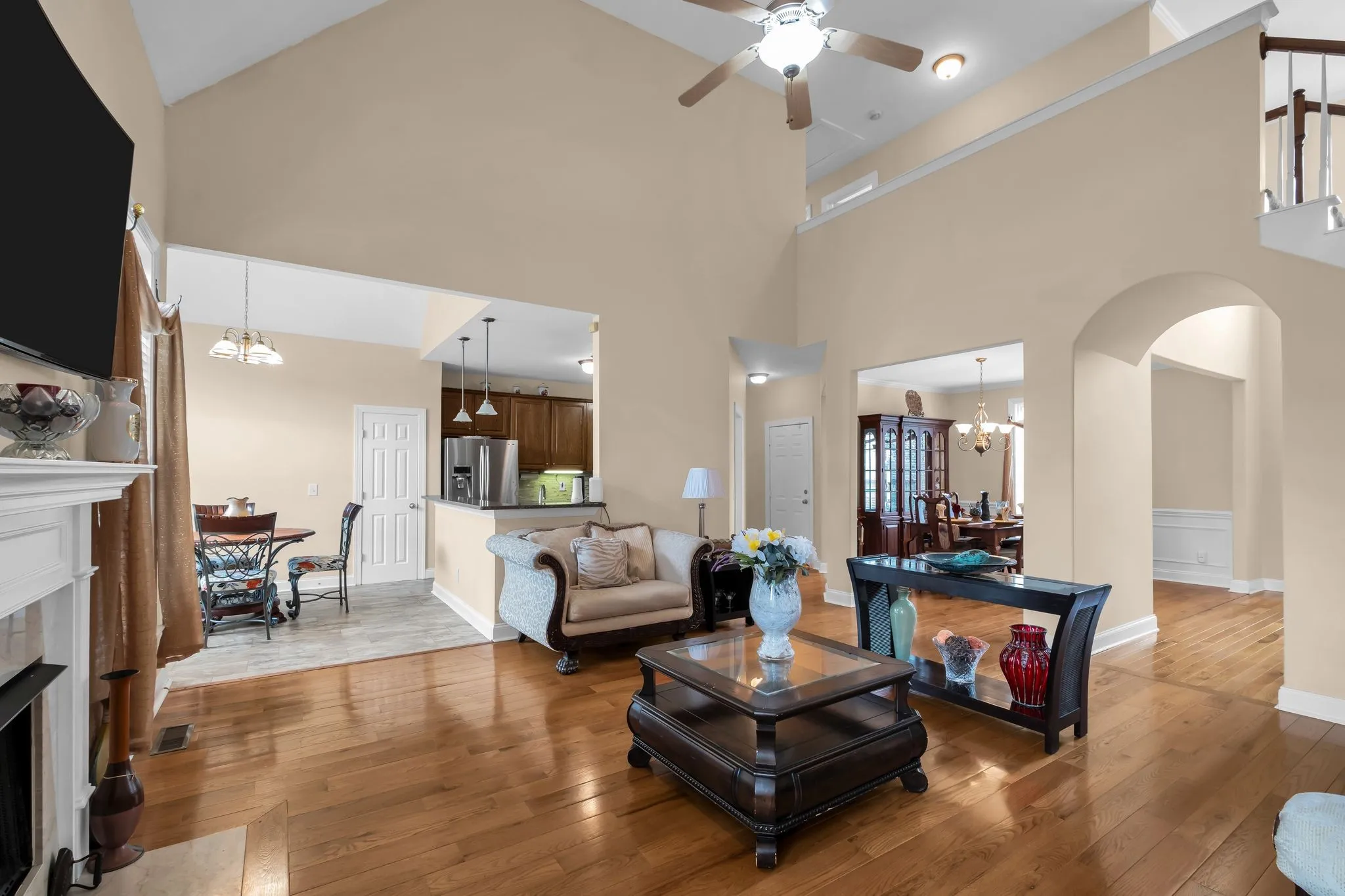 Move-in ready and thoughtfully updated, this home features fresh paint, gleaming hardwood floors, and soaring ceilings that create a bright, inviting atmosphere. The main level offers the ease of a spacious primary suite, along with a second bedroom and full bath—ideal for guests or flexible living. Even better, the refrigerator, washer, and dryer all remain, making your move seamless.