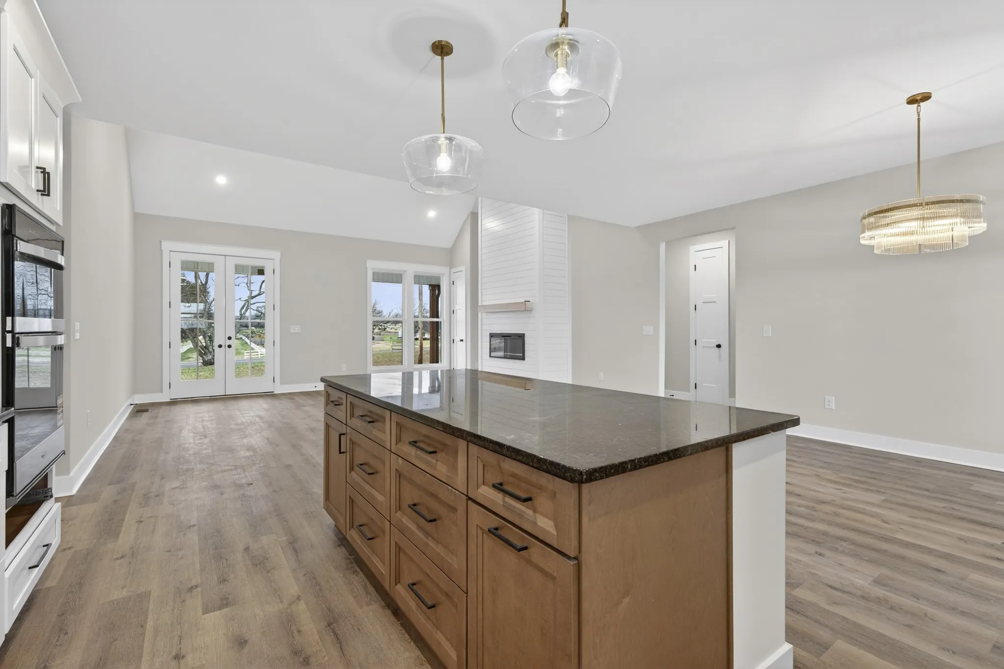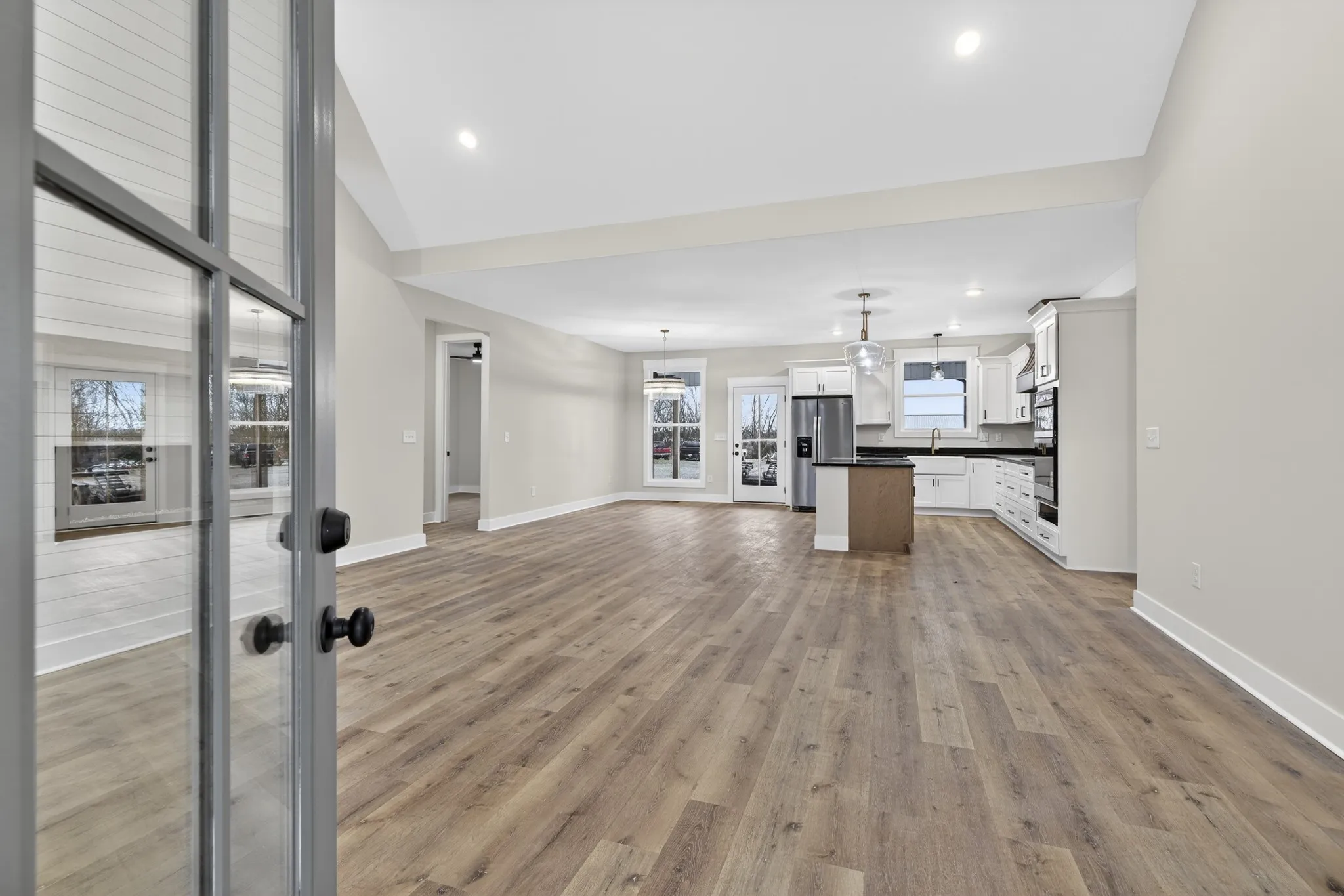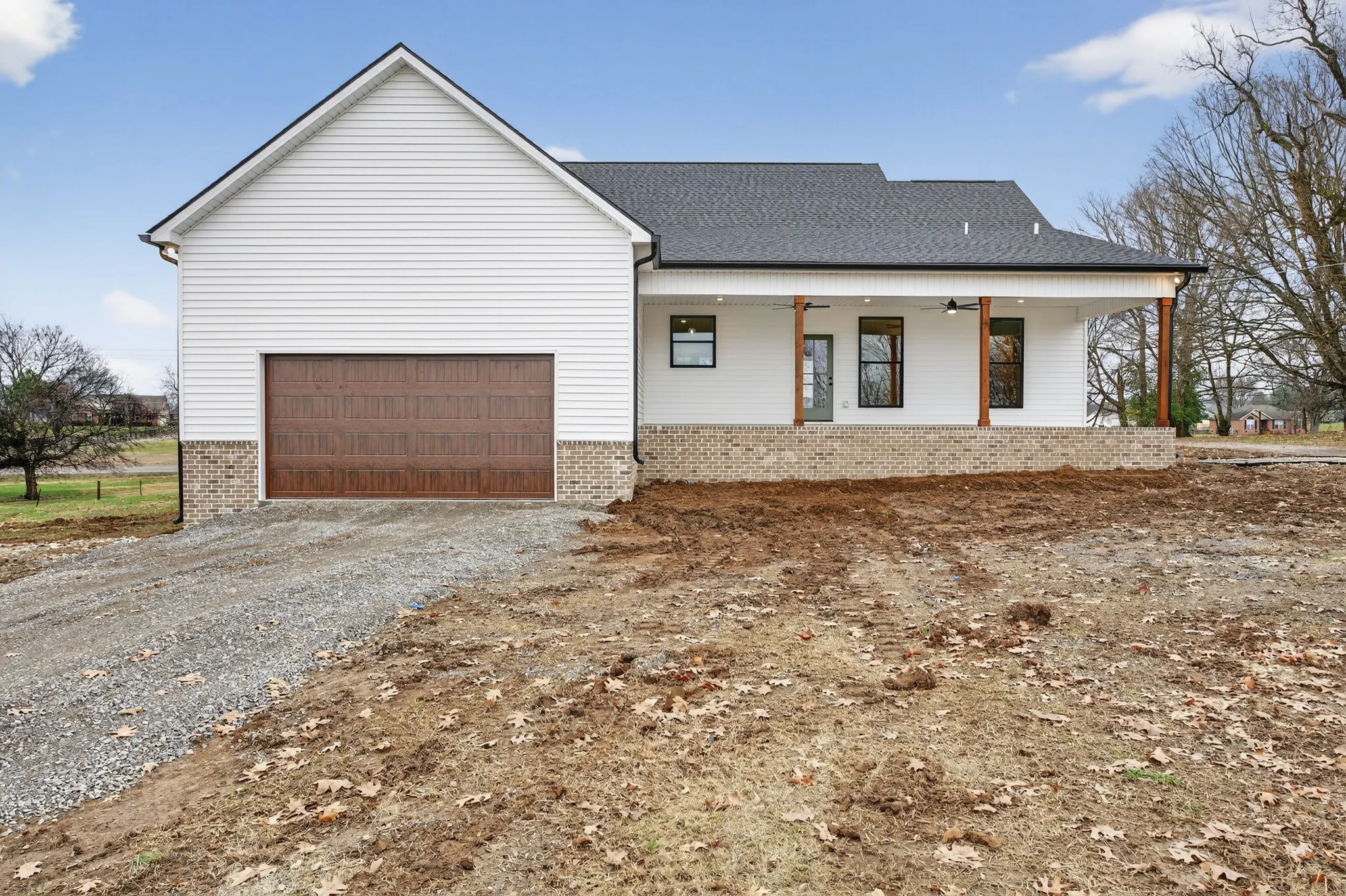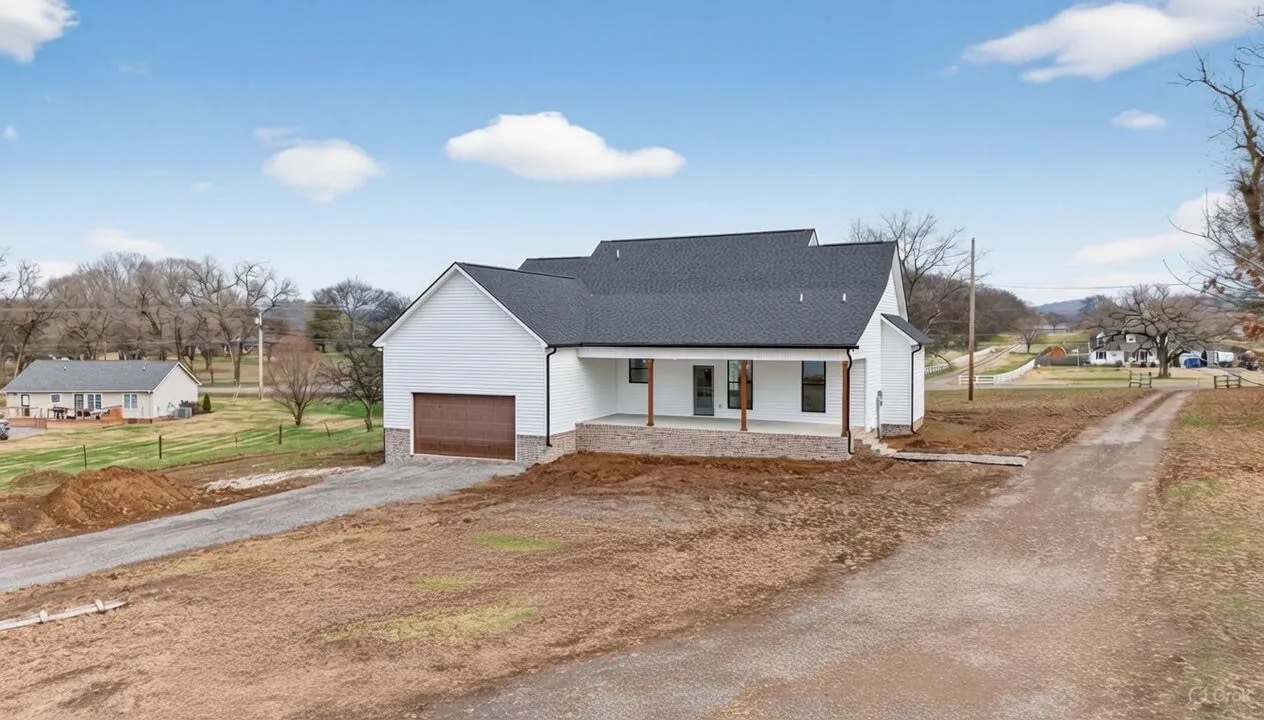 Beautiful new home on 2.39 acres with 40×70 shop! This 2,554 sq ft home offers 3 bedrooms and 2.5 baths on the MAIN FLOOR plus an UPSTAIRS BEDROOM, FULL BATH AND BONUS ROOM. Enjoy hardwood floors throughout, open-concept living with vaulted ceiling and electric fireplace. Gourmet kitchen with induction cooktop, wall oven/microwave, large island, and beautiful cabinetry. Luxurious primary suite features tile shower, soaking tub, and double vanities. Secondary bedrooms share a Jack & Jill bath. 9’ ceilings, 8’ doors, and spacious laundry off garage. Rocking chair front porch and covered back porch perfect for entertaining. Exceptional quality and value at $749,900—the best new home in Castalian Springs! Grass is AI generated