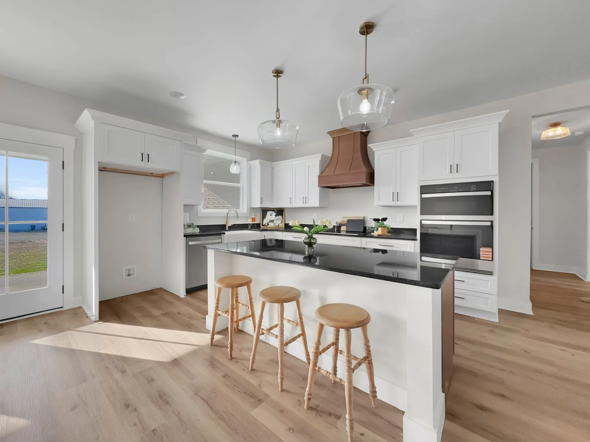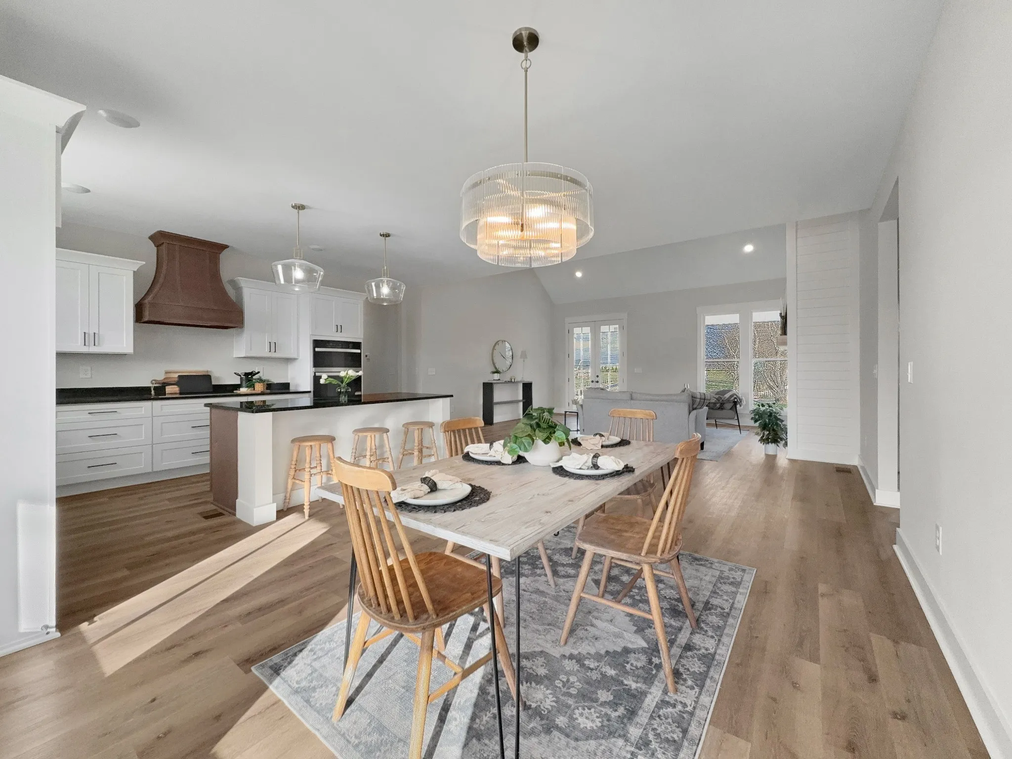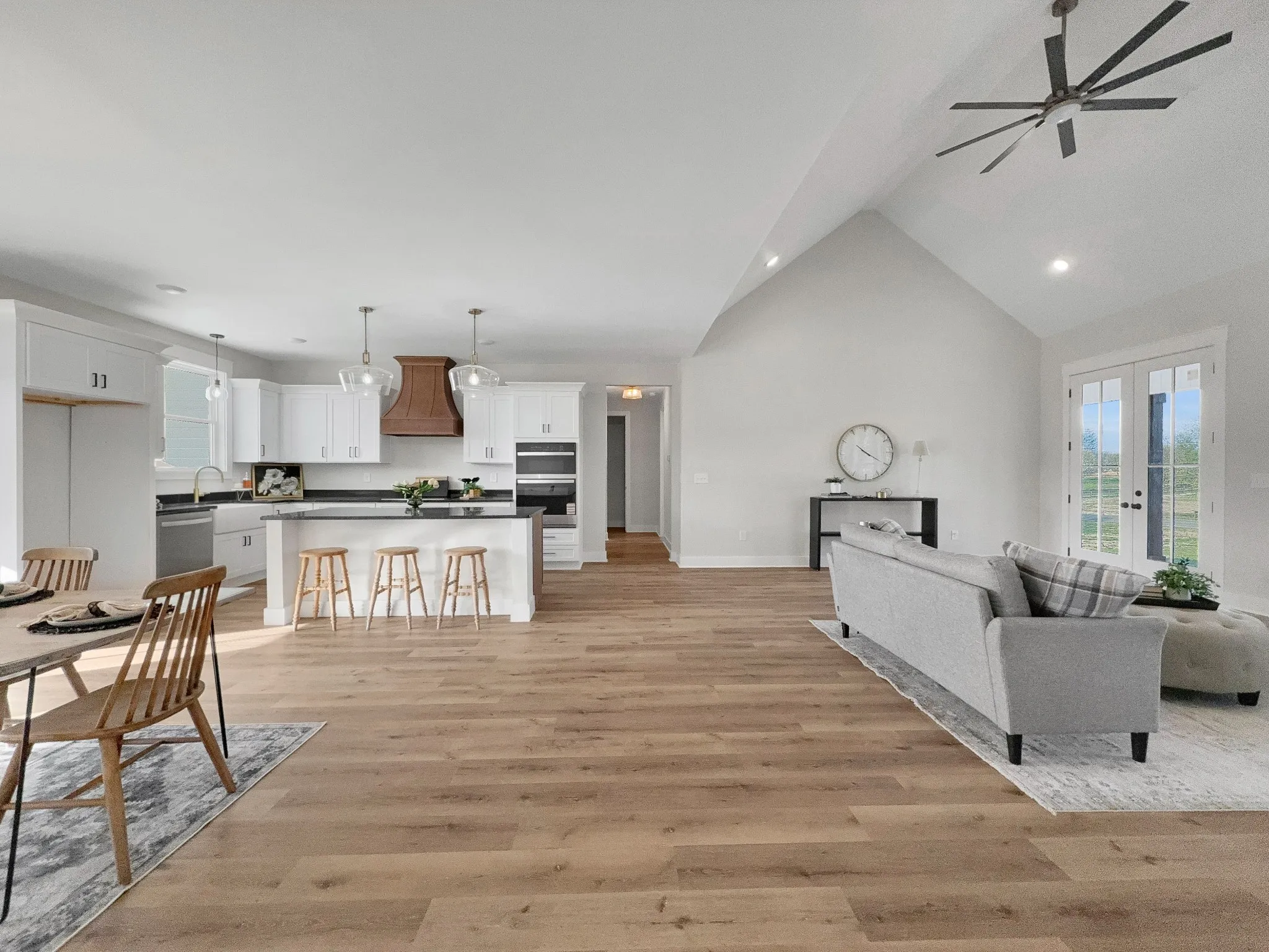 Beautiful new home on 2.39 acres with 40×70 shop! This 2,554 sq ft home offers 3 bedrooms and 2.5 baths on the MAIN FLOOR plus an UPSTAIRS BEDROOM, FULL BATH AND BONUS ROOM. Enjoy hardwood floors throughout, open-concept living with vaulted ceiling and electric fireplace. Gourmet kitchen with induction cooktop, wall oven/microwave, large island, and beautiful cabinetry. Luxurious primary suite features tile shower, soaking tub, and double vanities. Secondary bedrooms share a Jack & Jill bath. 9’ ceilings, 8’ doors, and spacious laundry off garage. Rocking chair front porch and covered back porch perfect for entertaining. Exceptional quality and value at $749,900—the best new home in Castalian Springs! Grass is AI generated